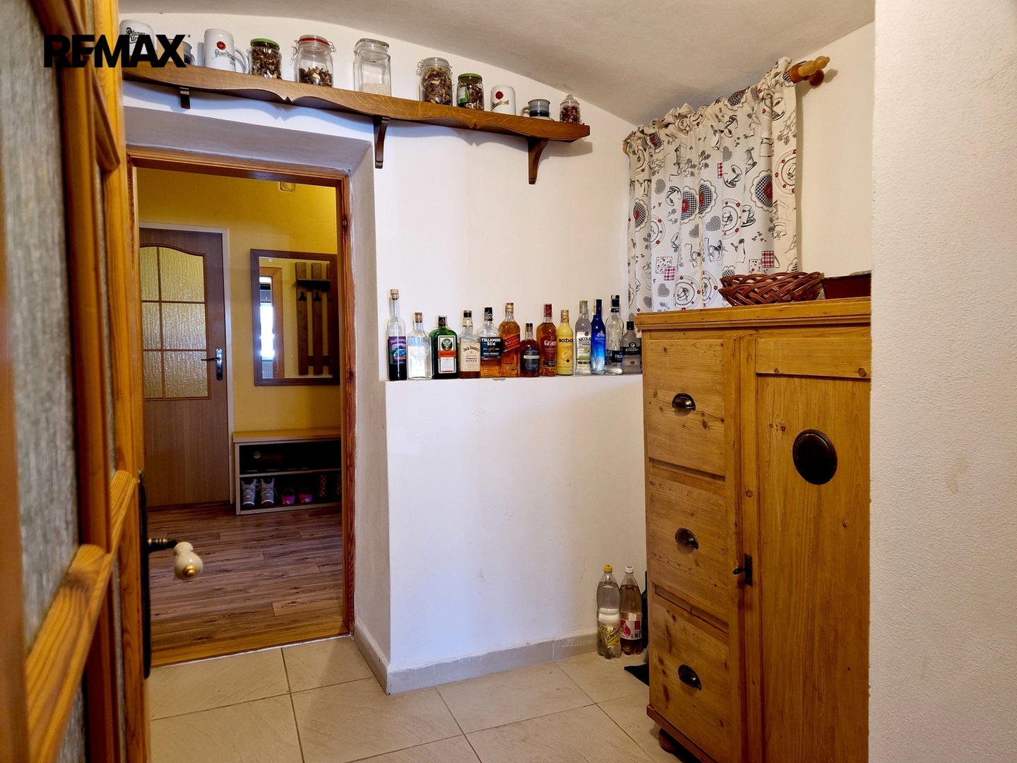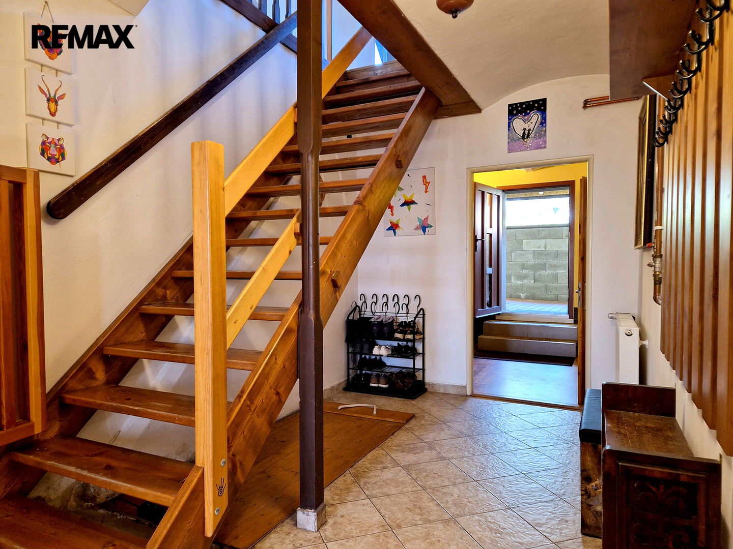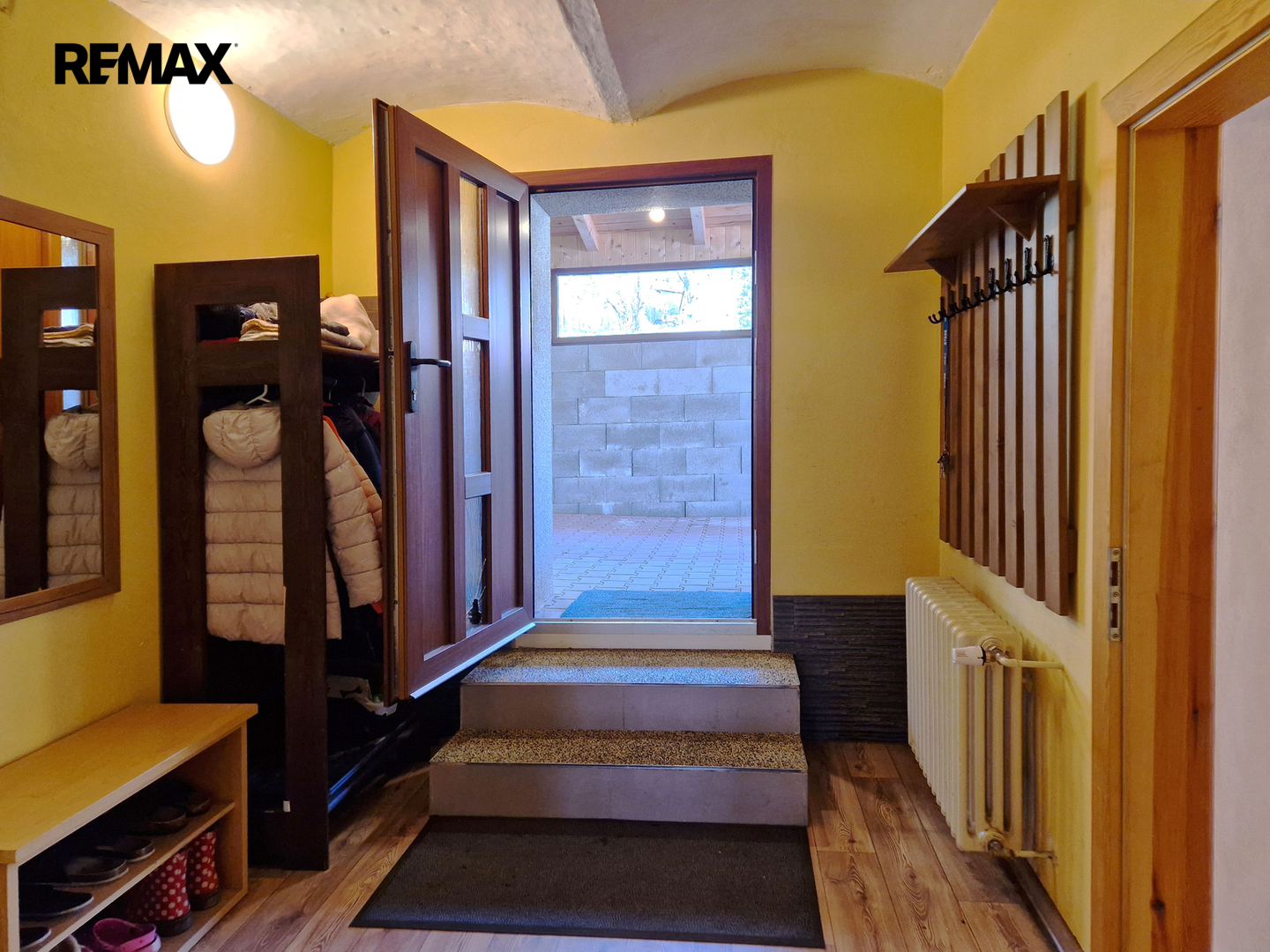 Vstupní část tvoří centrální chodba s dřevěným schodištěm, ze které je přístup do hlavní obytné části, samostatné bytové jednotky a do technického zázemí – nadstandardně prostorné technické a skladovací prostory, prádelna a kotelna s automatickým kotlem na pelety a uhlí s podavačem.