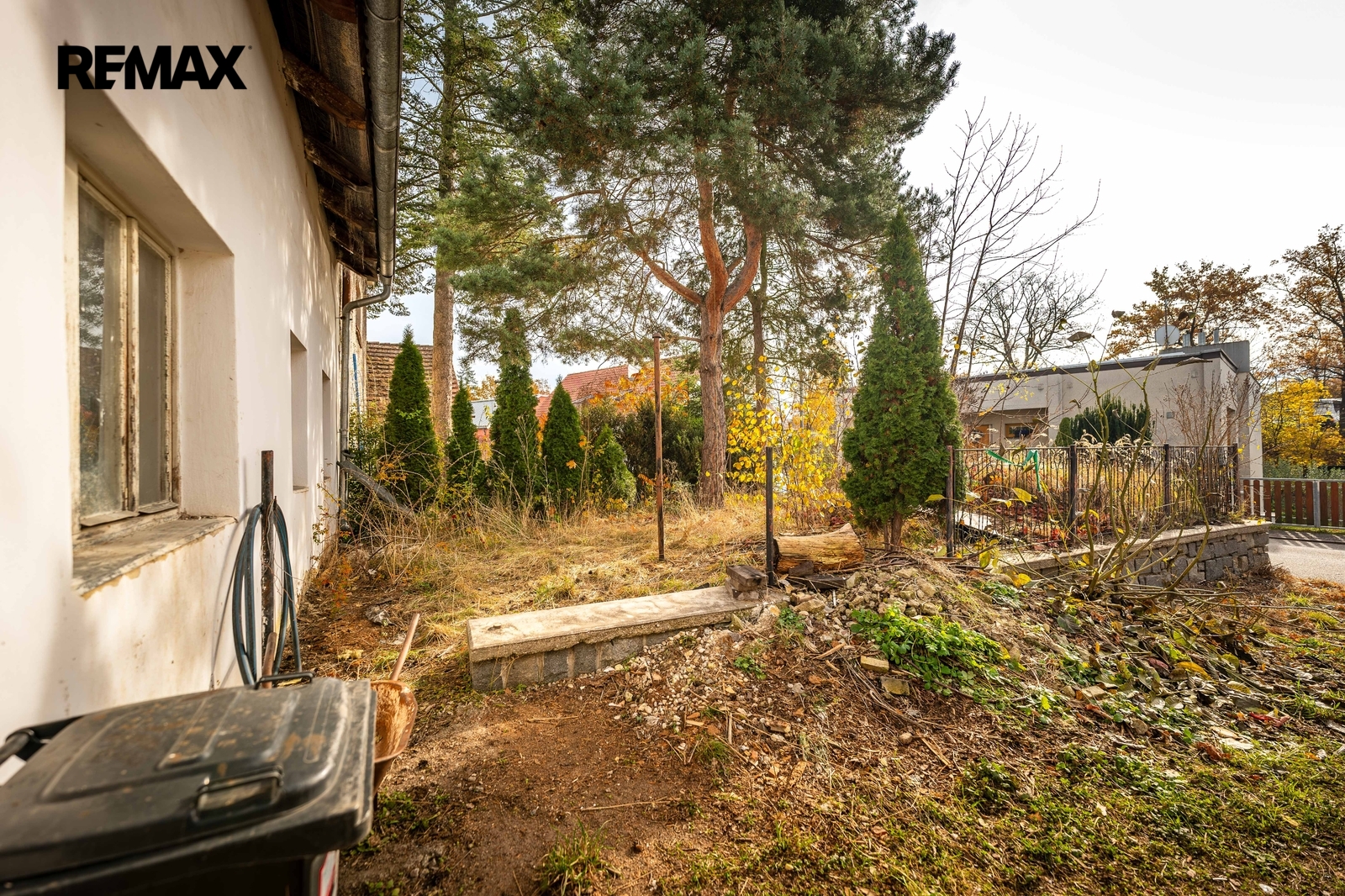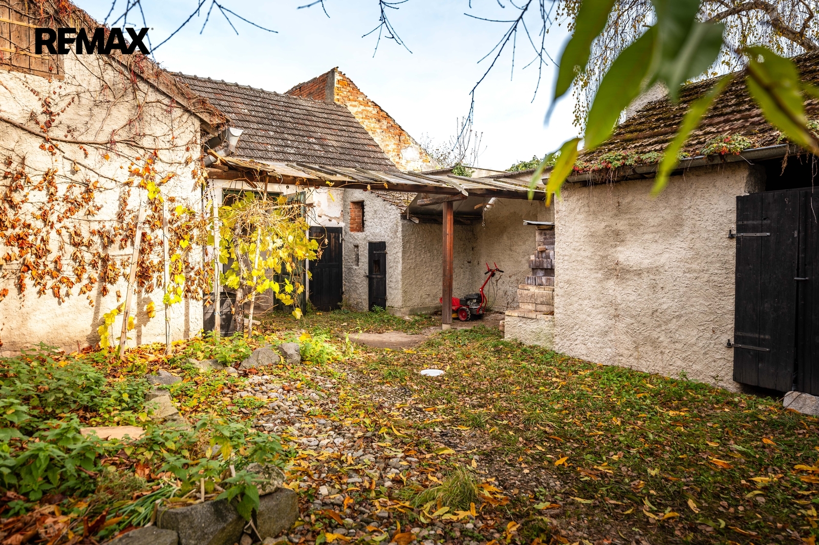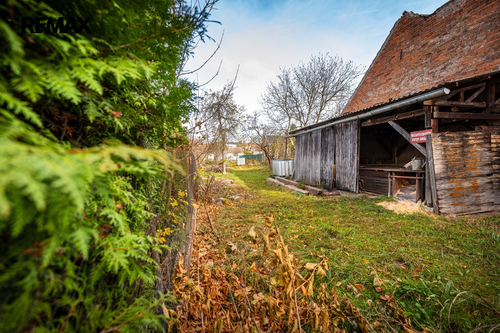 Za domem se nachází uzavřený dvorek, který zajišťuje dostatek soukromí, dále přístavba jako „letní“ byt (příprava na garsonku) + další stavení s dostatkem úložných prostor.