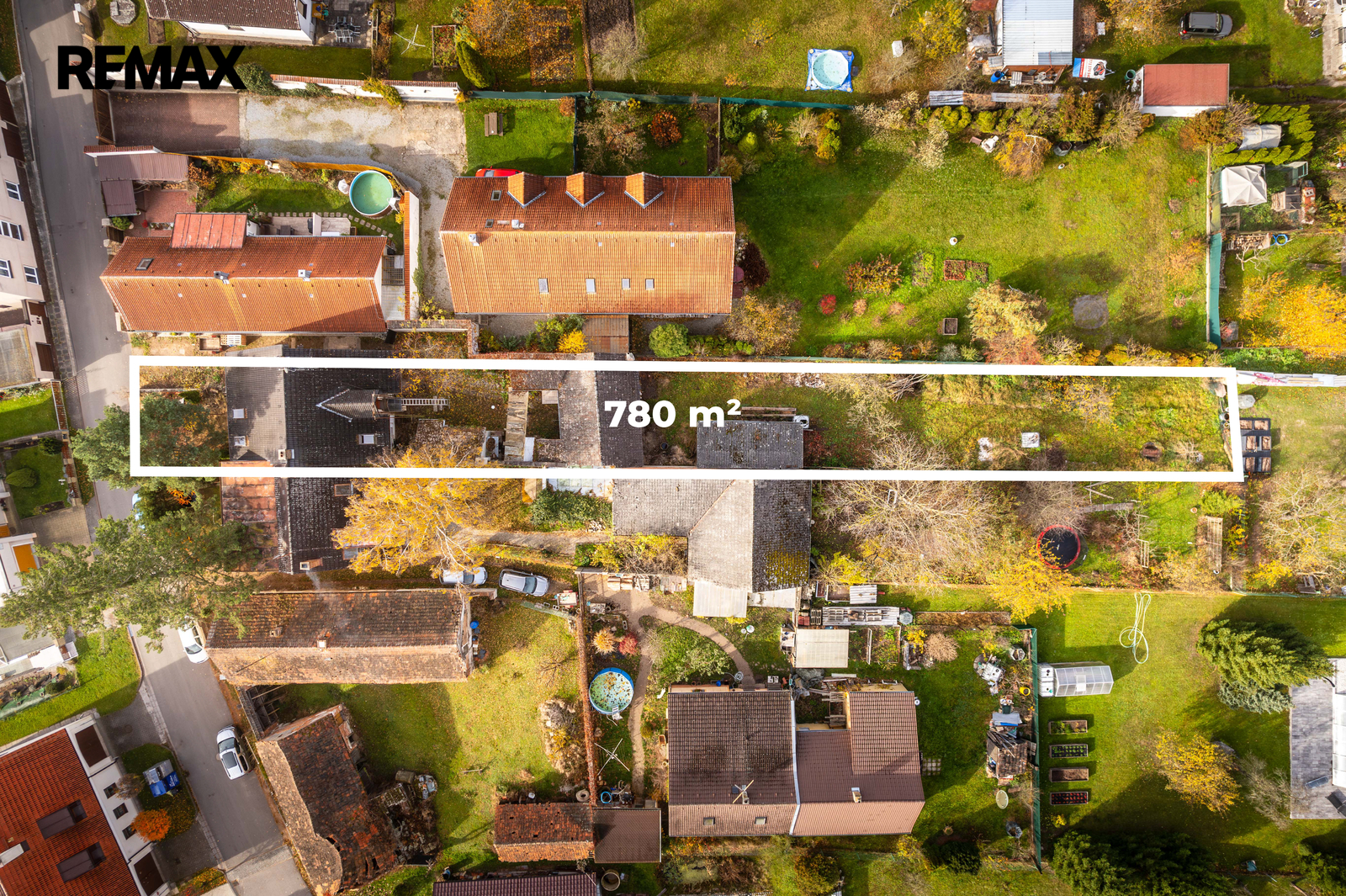 Celková plocha pozemku činí 780 m2, z čehož zastavěná plocha a nádvoří činí 370 m2 a zahrada má 410 m2.