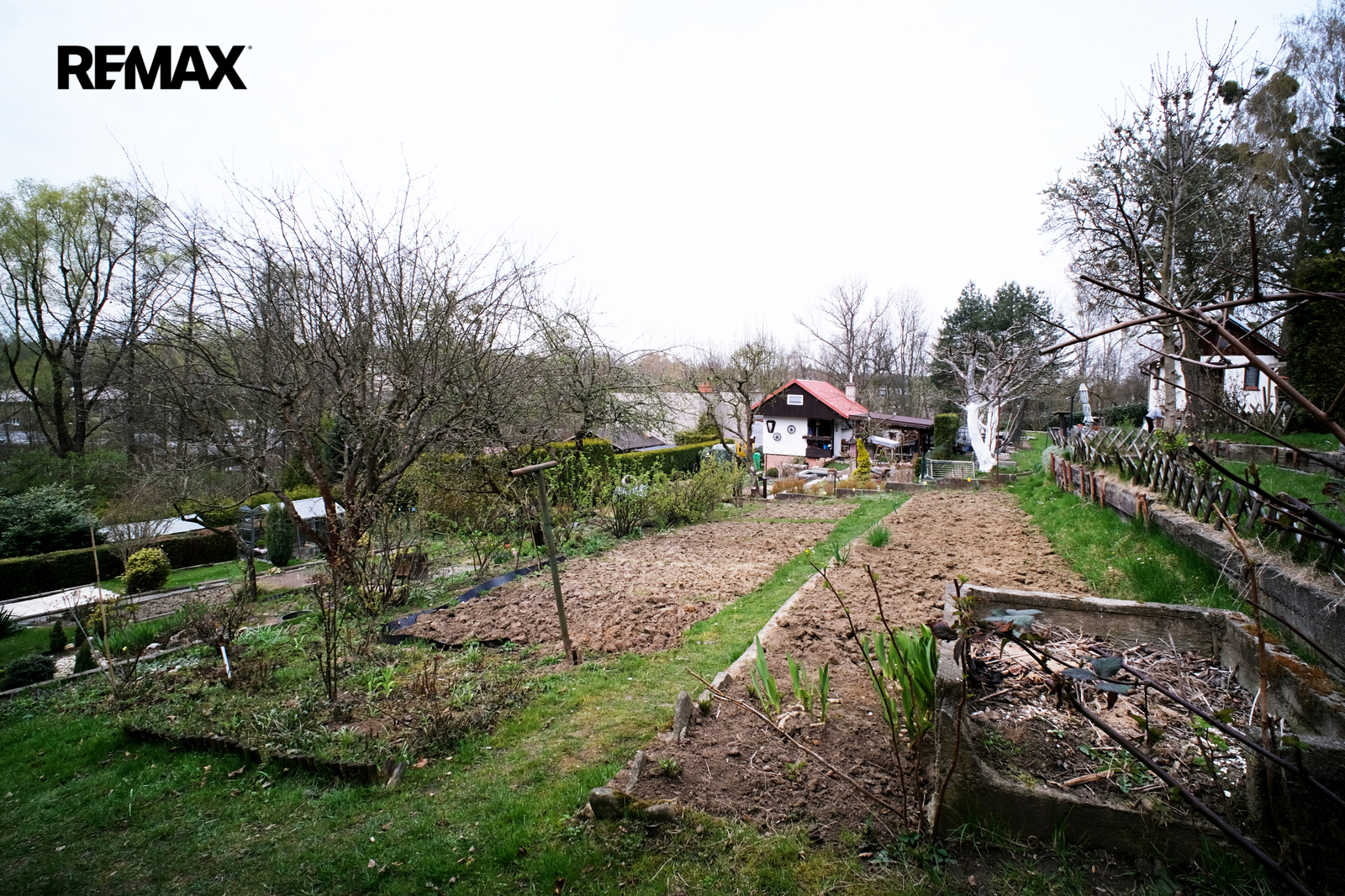 Pozemek je pečlivě udržovaný, plný zeleně a různých rostlin, a nabízí ideální podmínky pro pěstování ovoce, zeleniny i příjemný odpočinek.