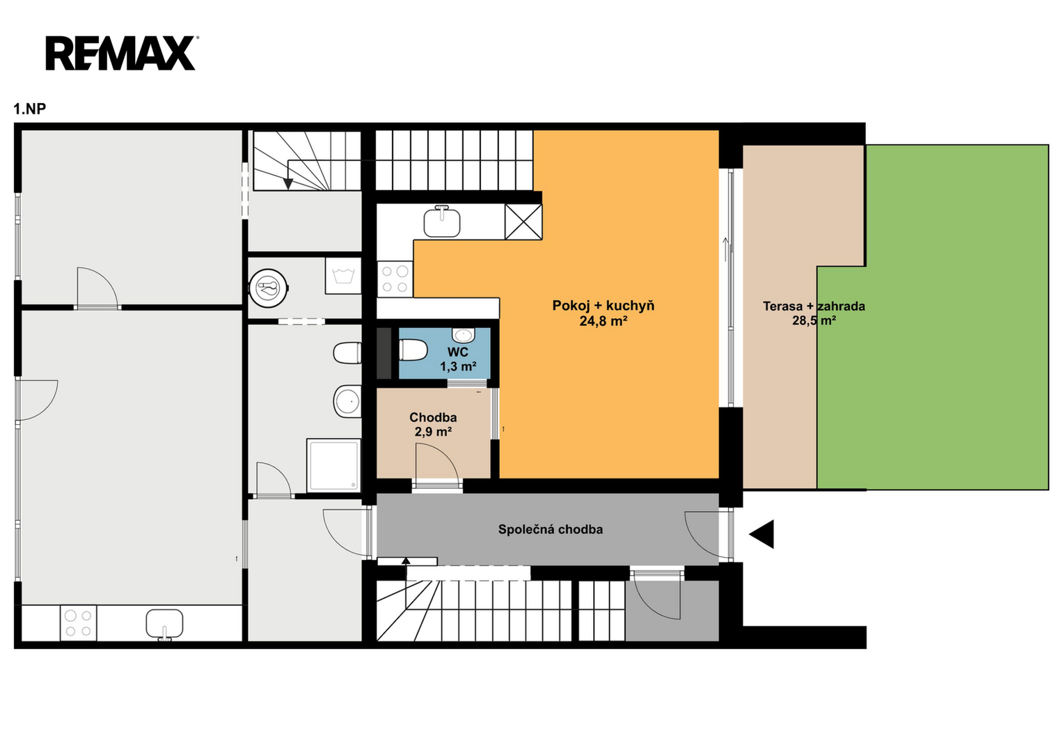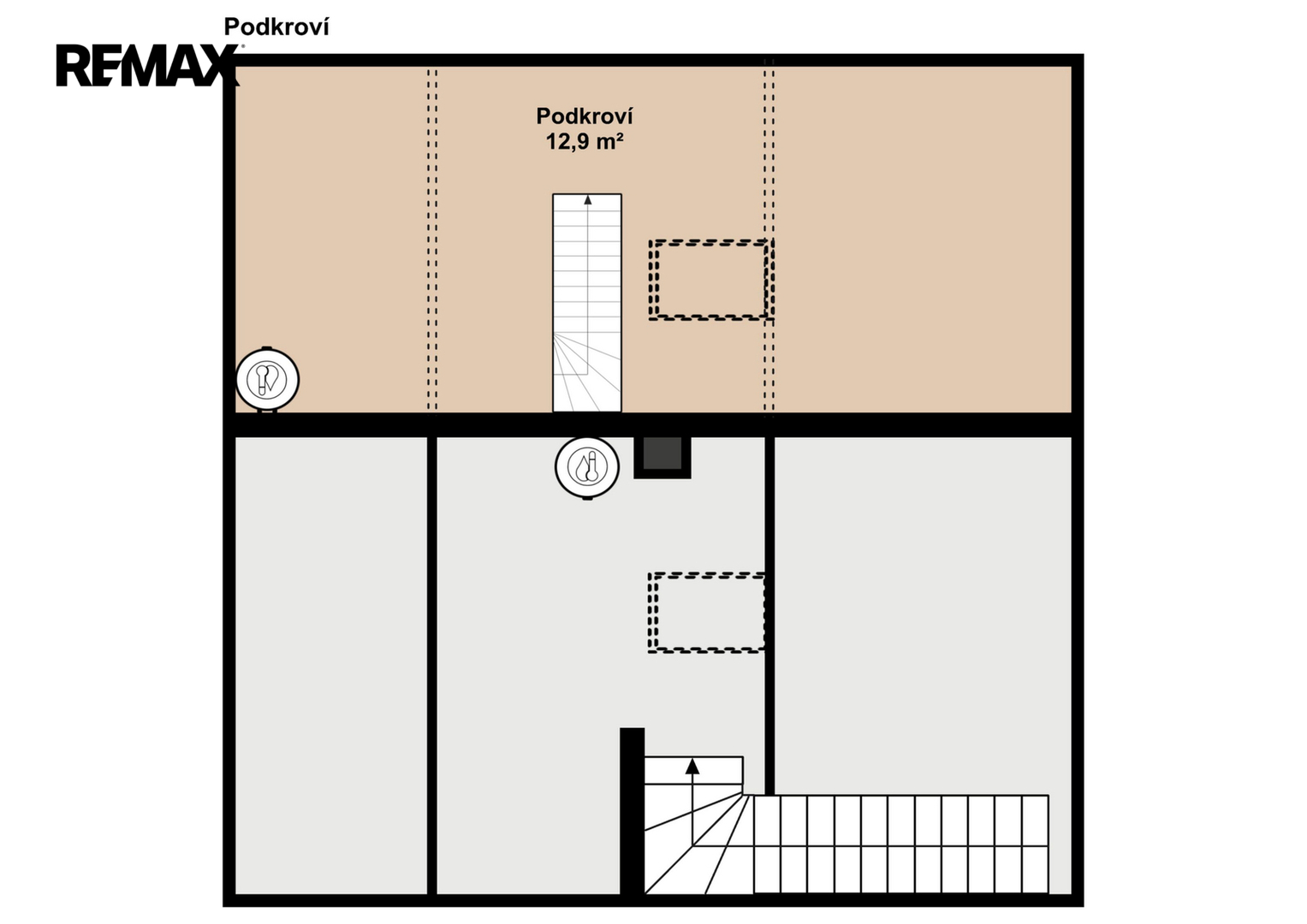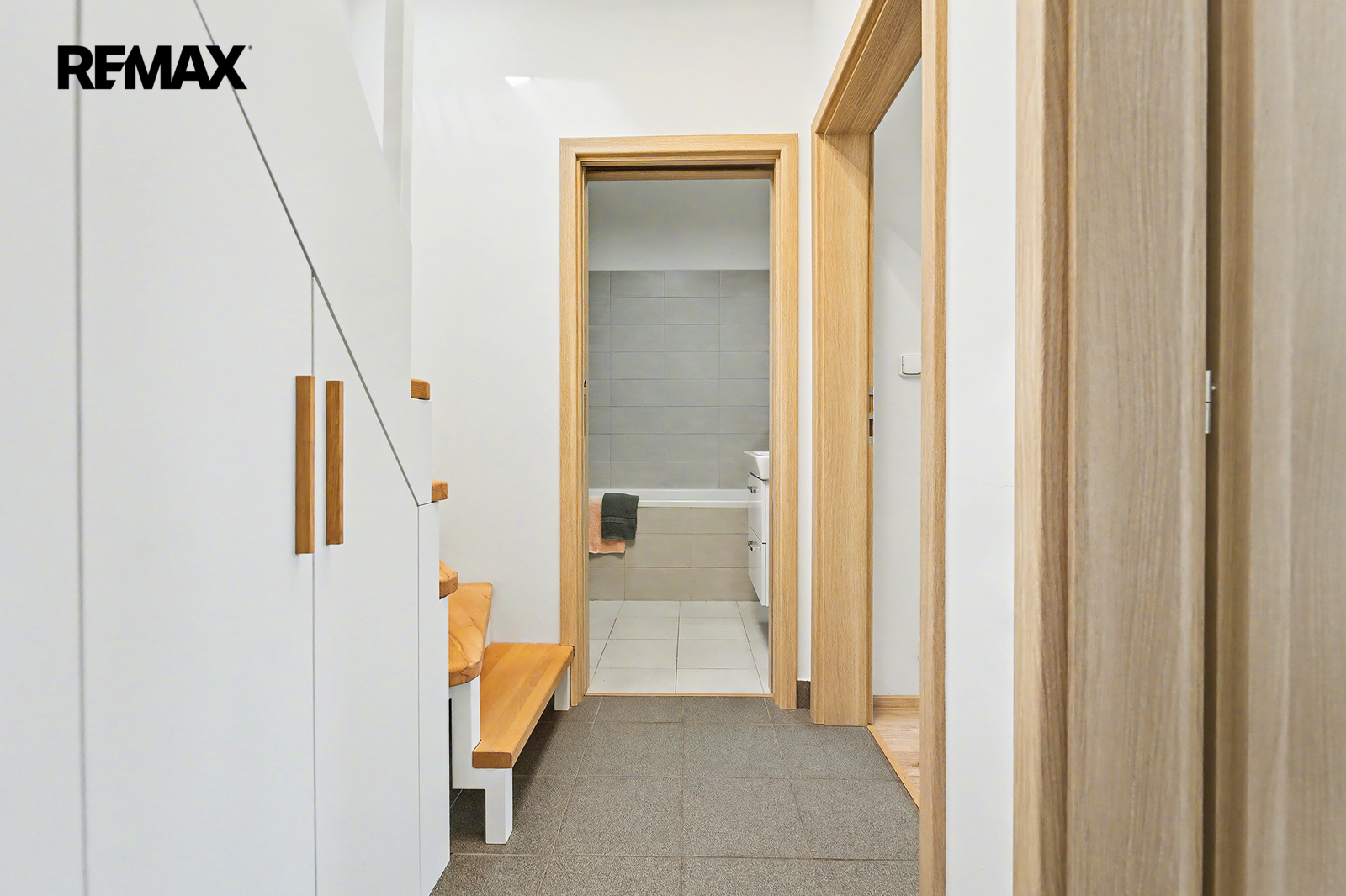 • přívod pro pračku a sušičku zabudován ve vestavné skříni pod schodištěm