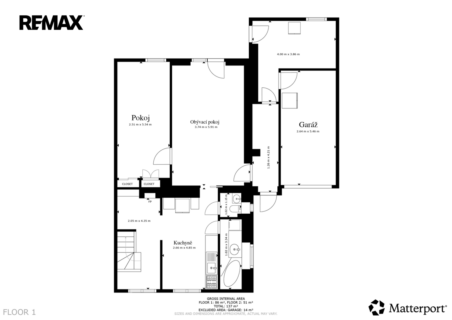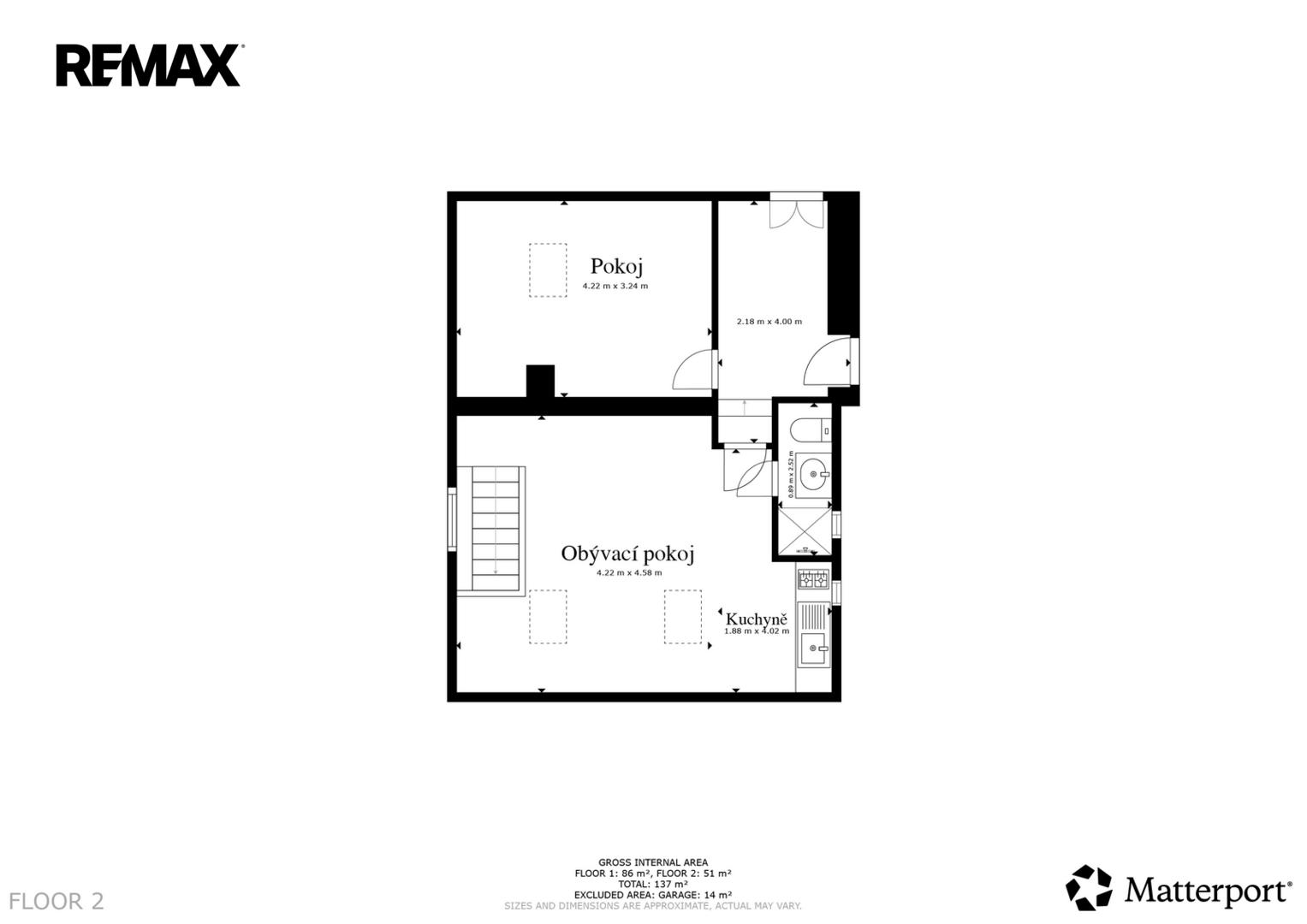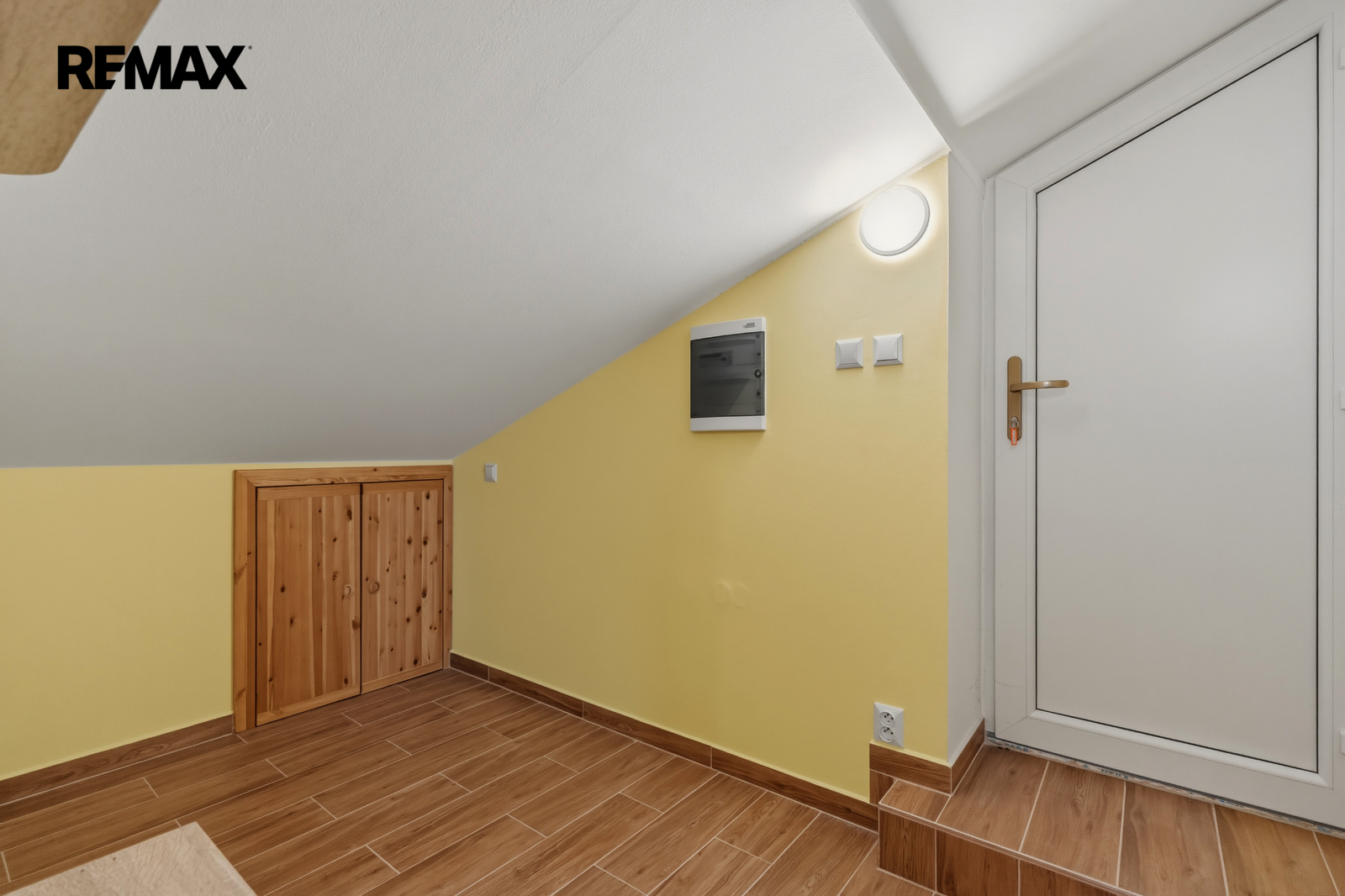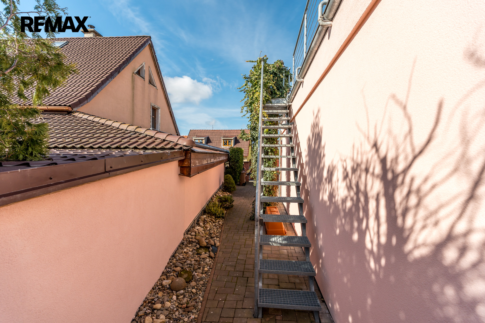 Každé podlaží má svůj vstup – do 1. NP hlavním vchodem, do 2. NP je přístup vnitřním schodištěm nebo samostatně po venkovních kovových schodech ze strany domu.