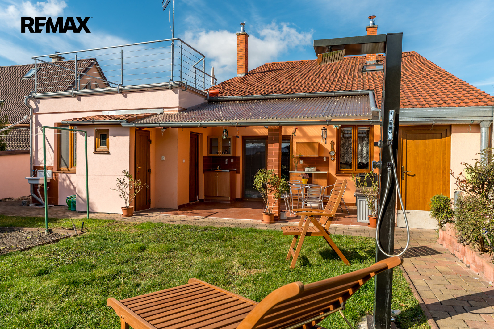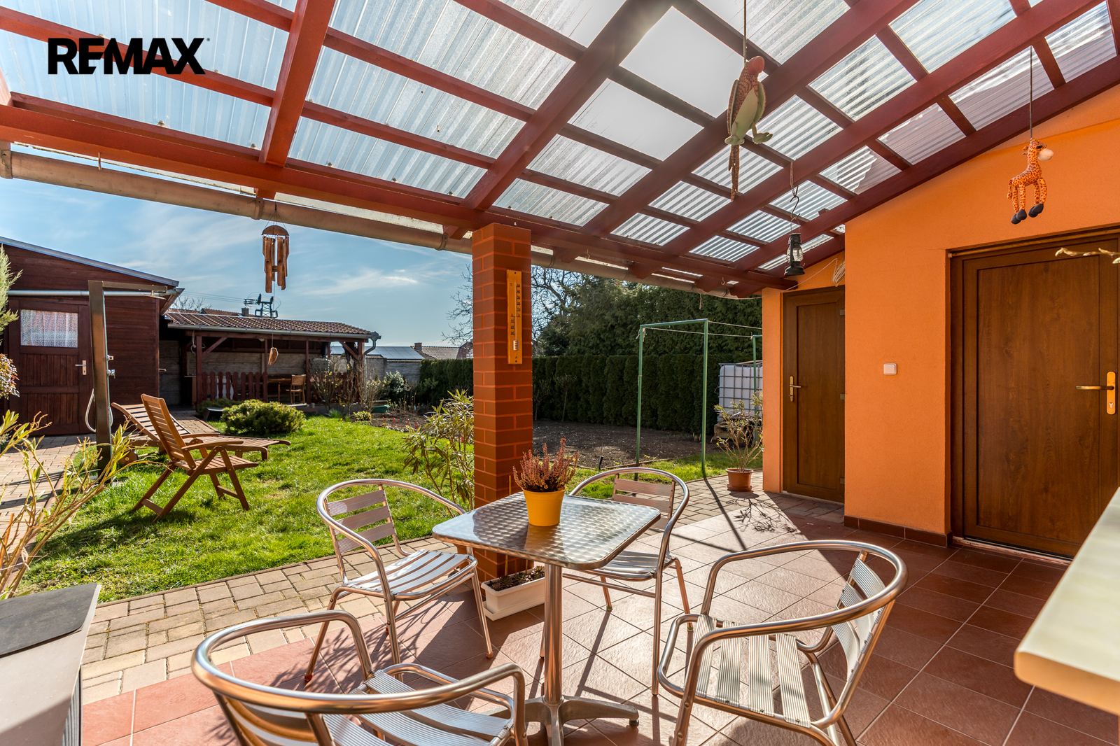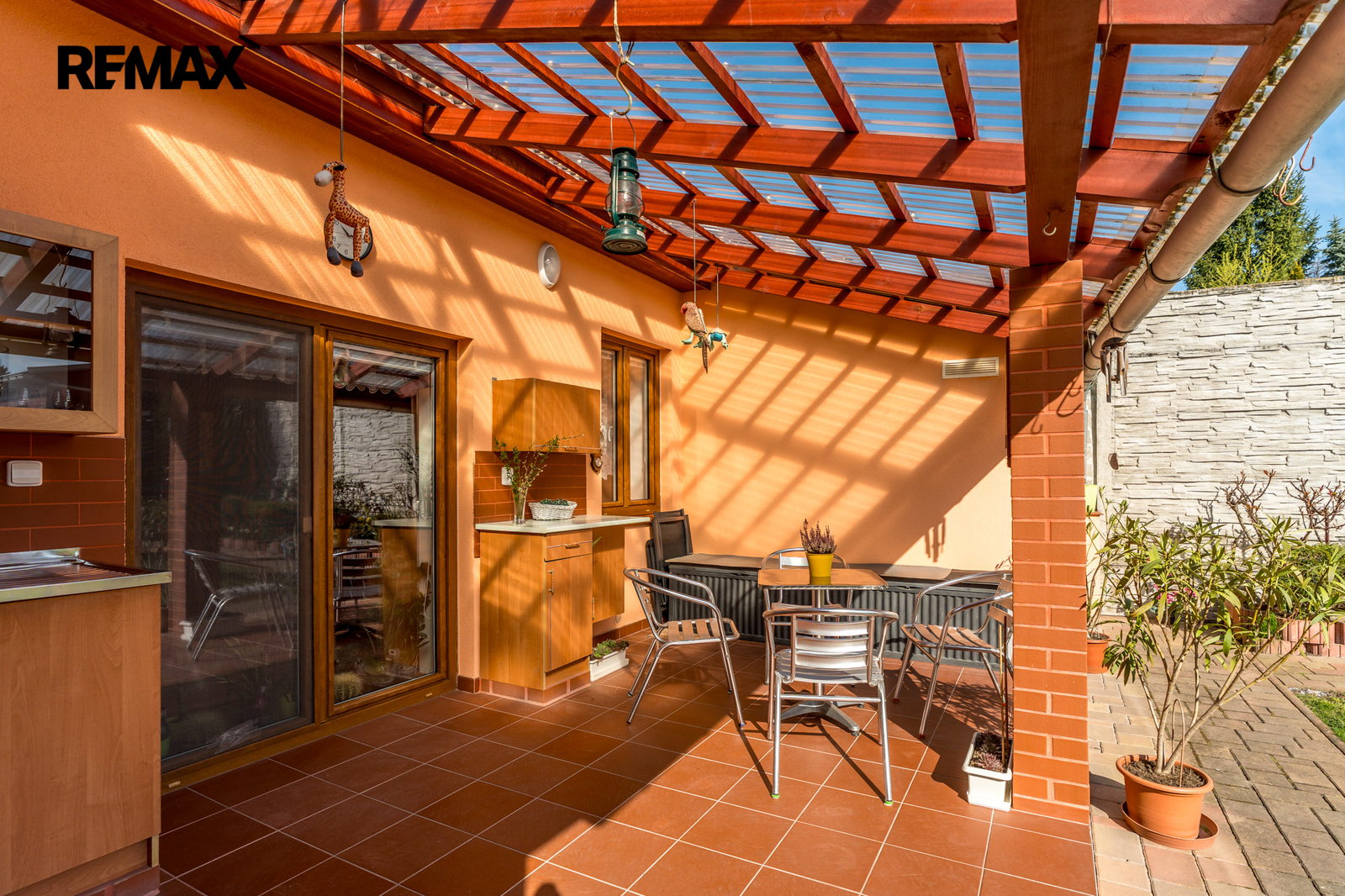 -francouzským oknem přímo z obývacího pokoje na terasu, která nabízí příjemné místo pro ranní kávu i klidné večerní posezení.