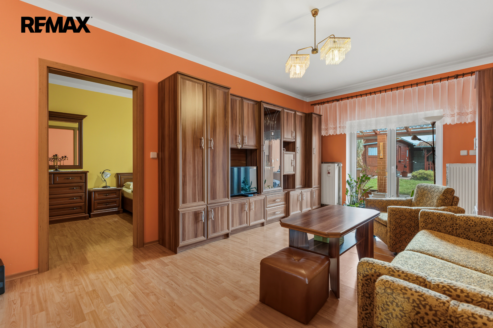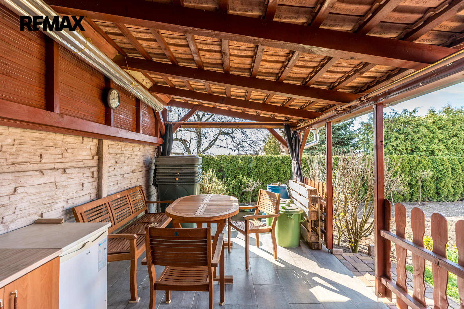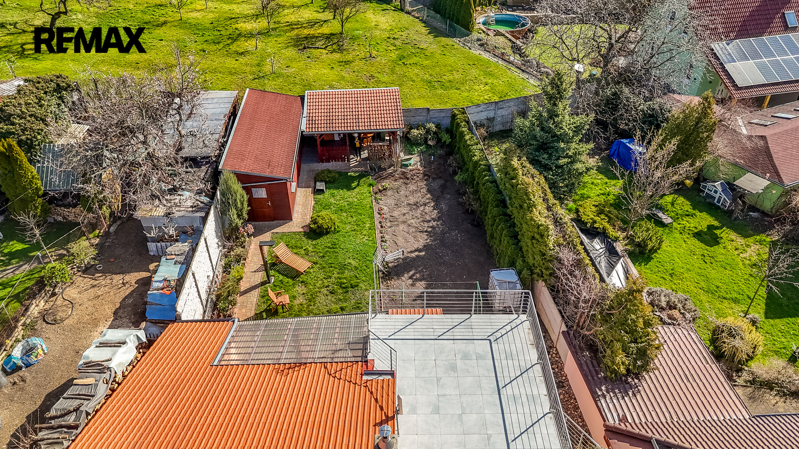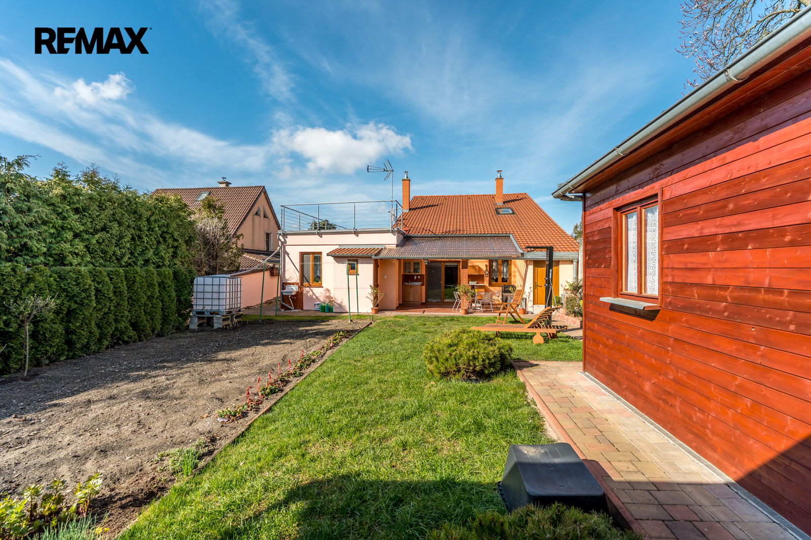 -francouzským oknem přímo z obývacího pokoje na terasu, která nabízí příjemné místo pro ranní kávu i klidné večerní posezení.