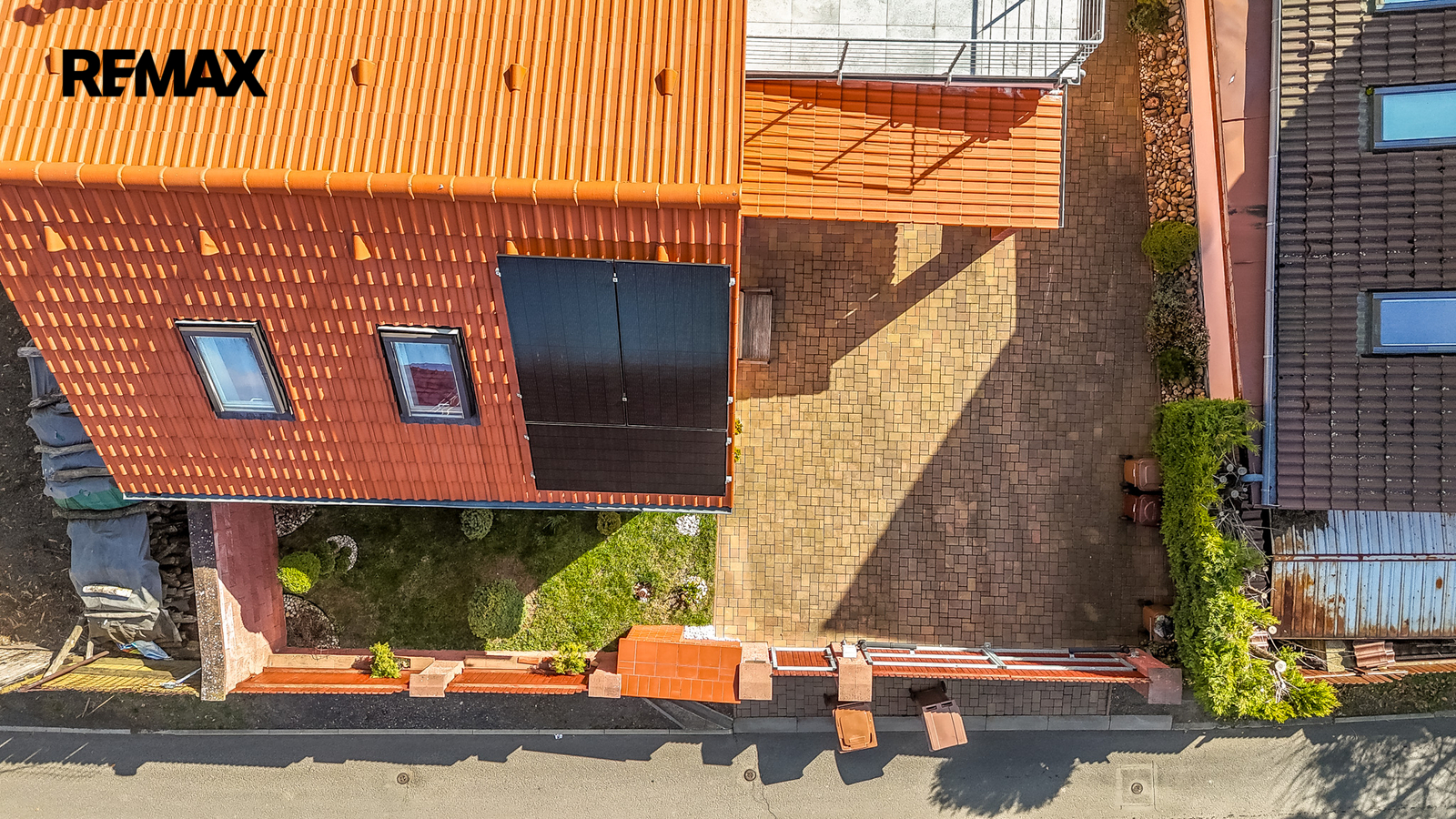 Hlavní vstup do domu je orientován na západní stranu. Na jižní straně se nachází garáž s pochozím stropem, který slouží jako terasa.