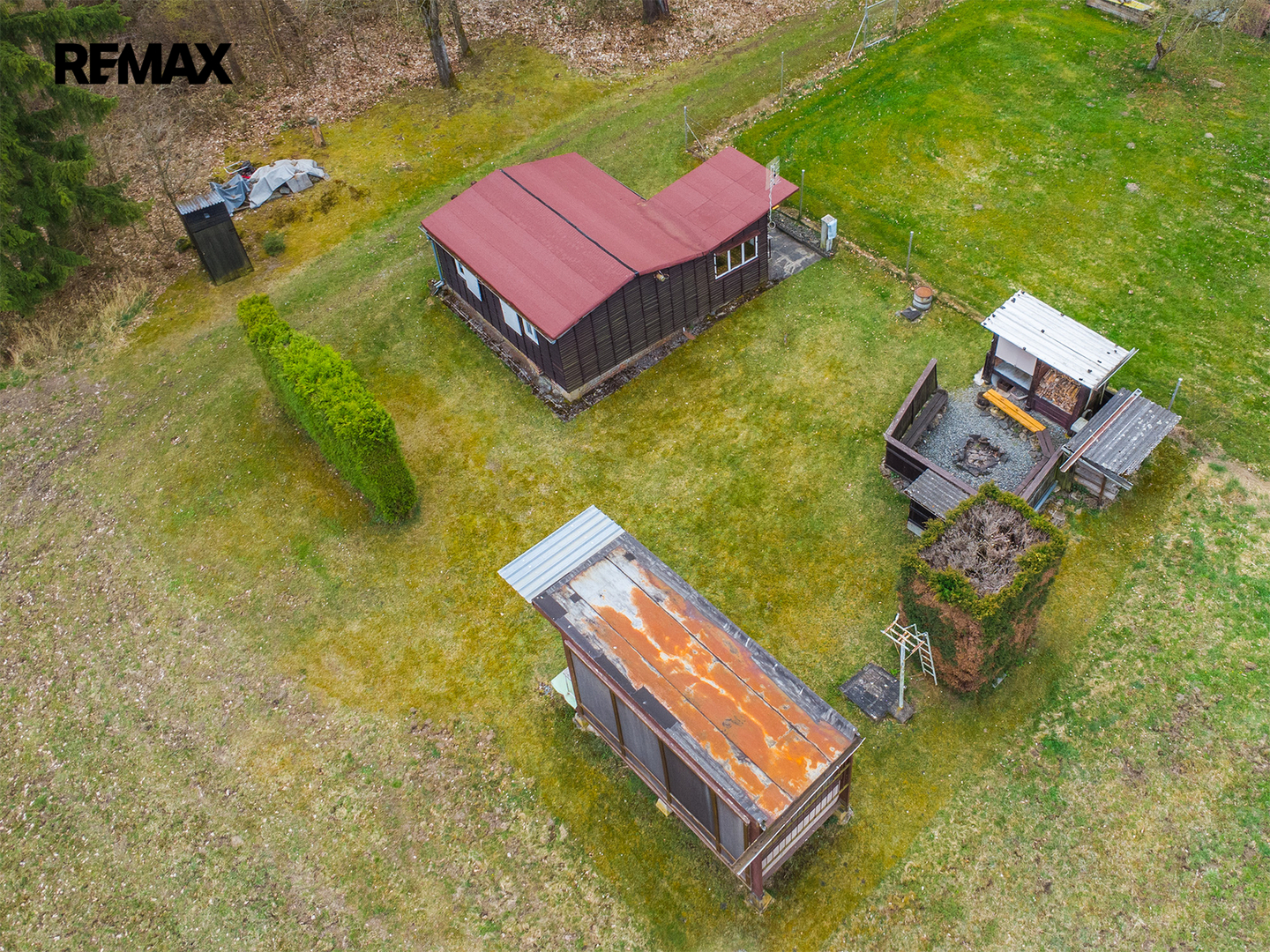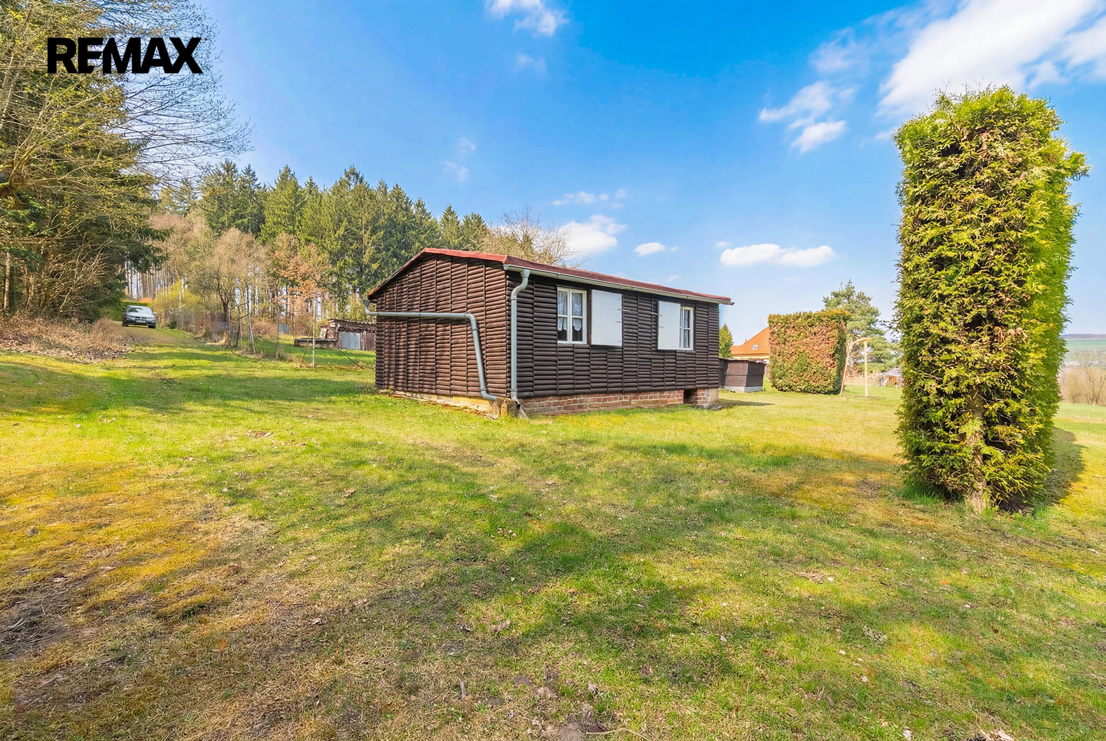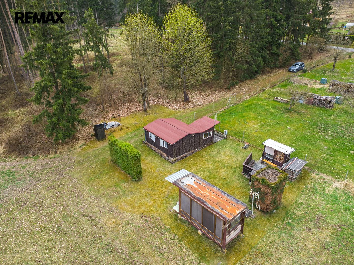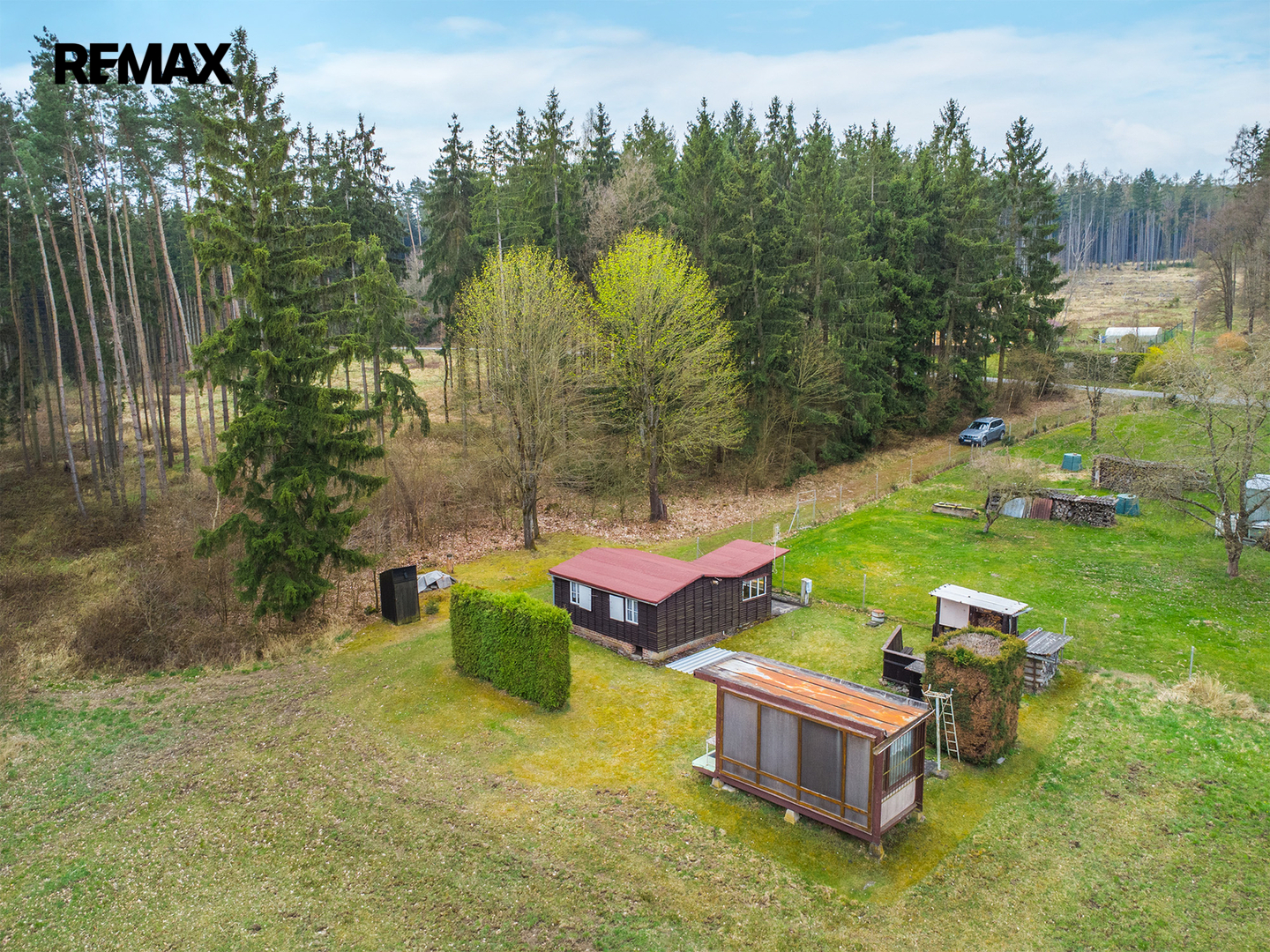 Chata stojí na vlastním pozemku o výměře 236 m², který je dle územního plánu veden jako Plochy smíšené obytné venkovské, což přináší i zajímavý potenciál do budoucna. Přístup k pozemku je zajištěn po lesní cestě vedoucí přes pozemek Lesů ČR.