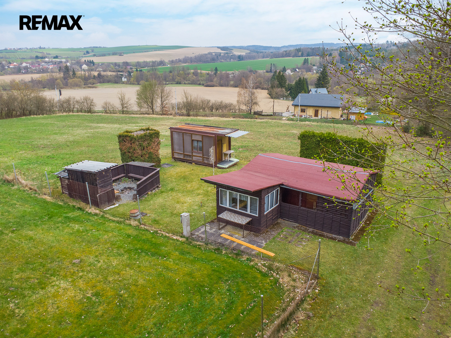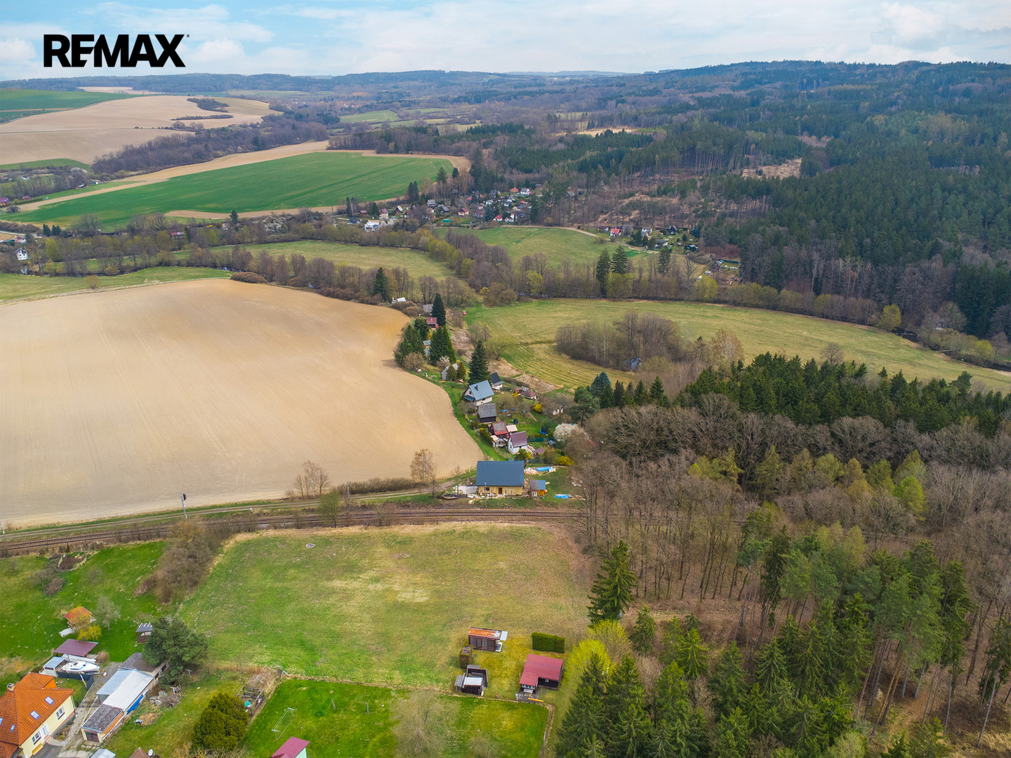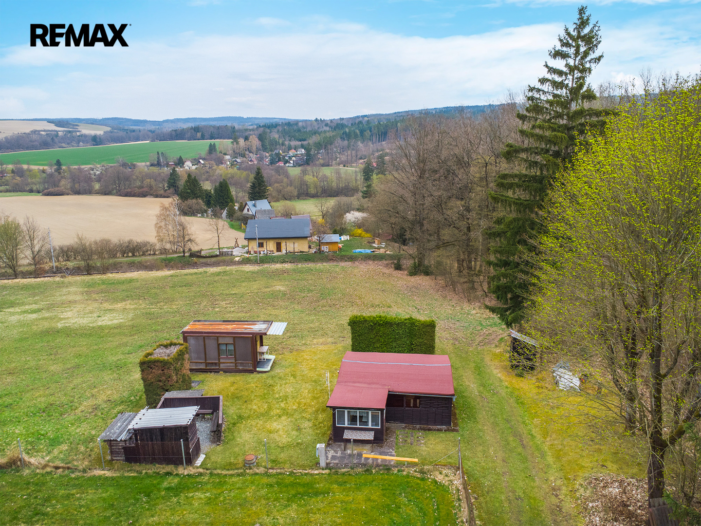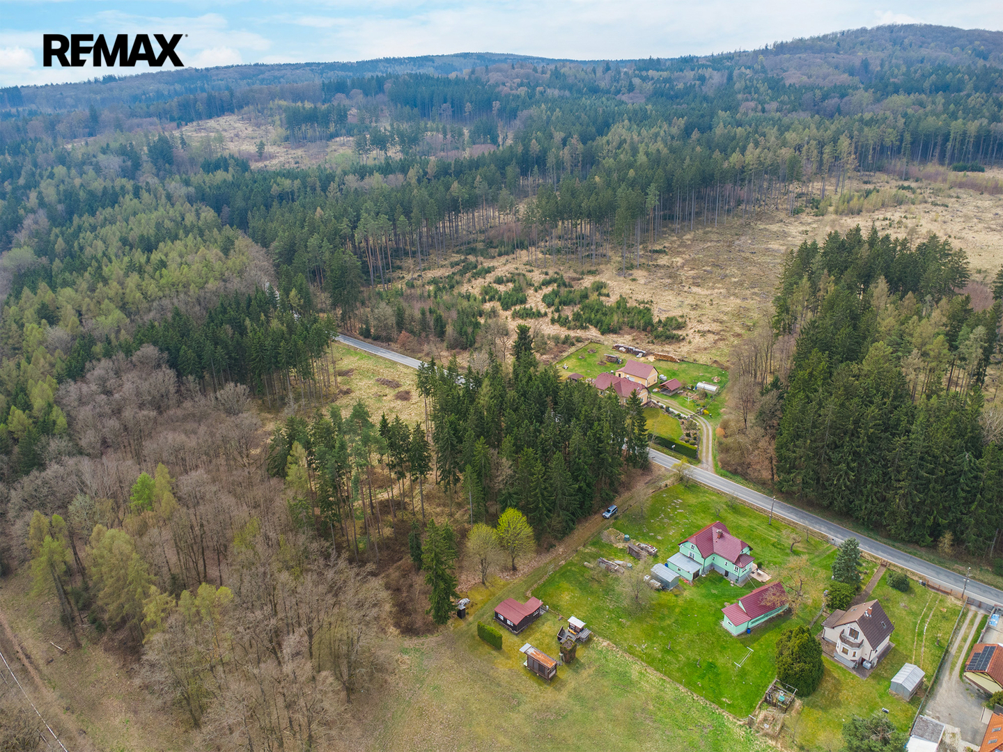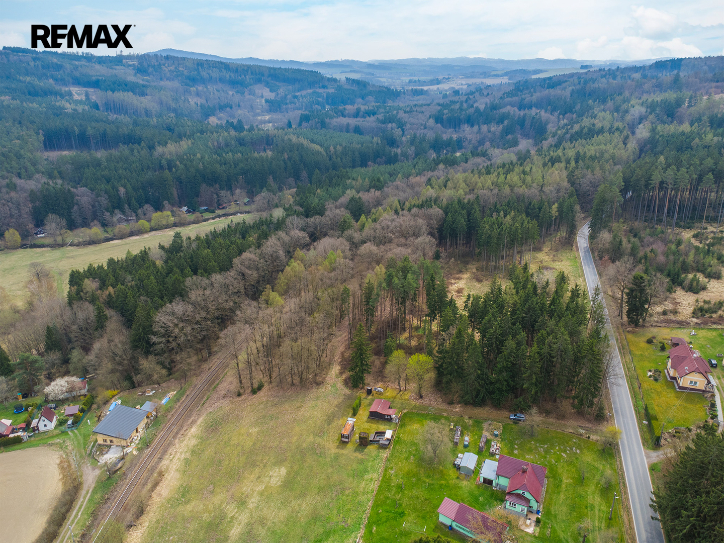 Chata stojí na vlastním pozemku o výměře 236 m², který je dle územního plánu veden jako Plochy smíšené obytné venkovské, což přináší i zajímavý potenciál do budoucna. Přístup k pozemku je zajištěn po lesní cestě vedoucí přes pozemek Lesů ČR.