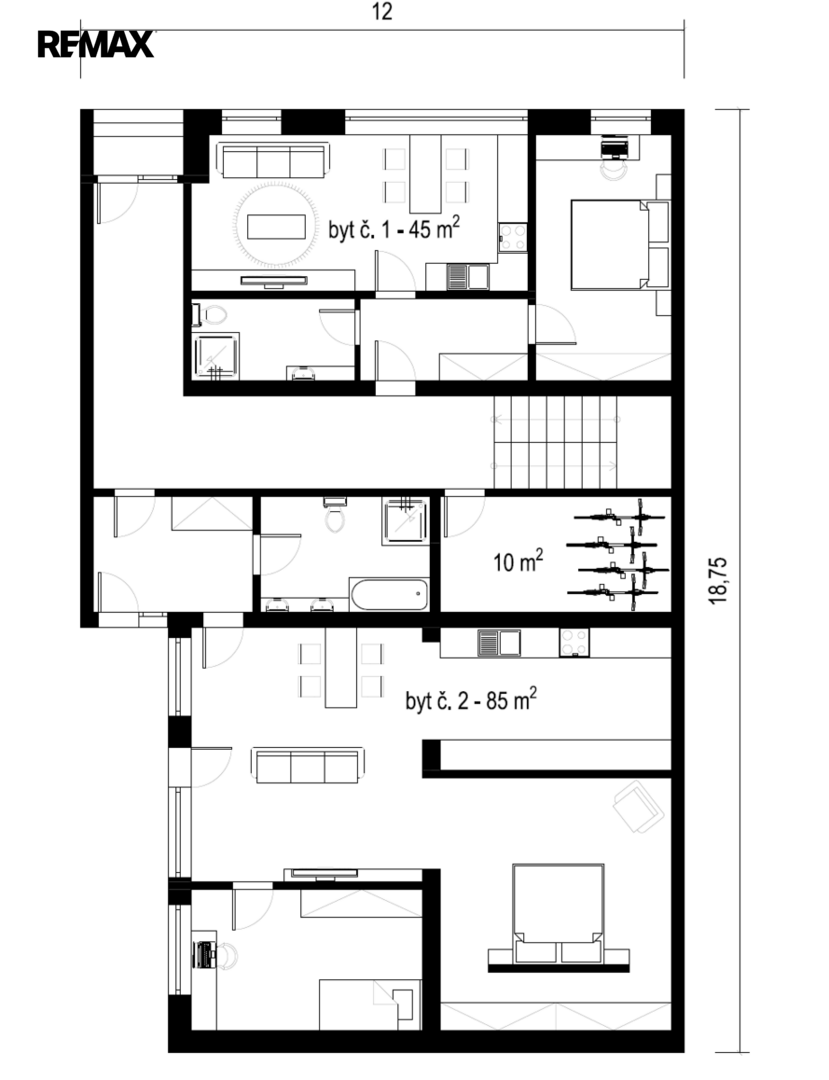 - 1. NP: byt 2+kk (45 m²)