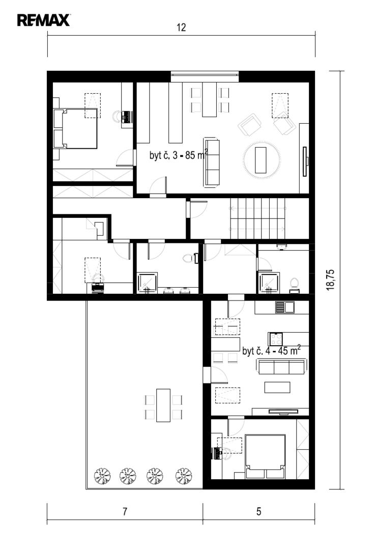 - 1. NP: byt 3+kk (85 m²) s terasou