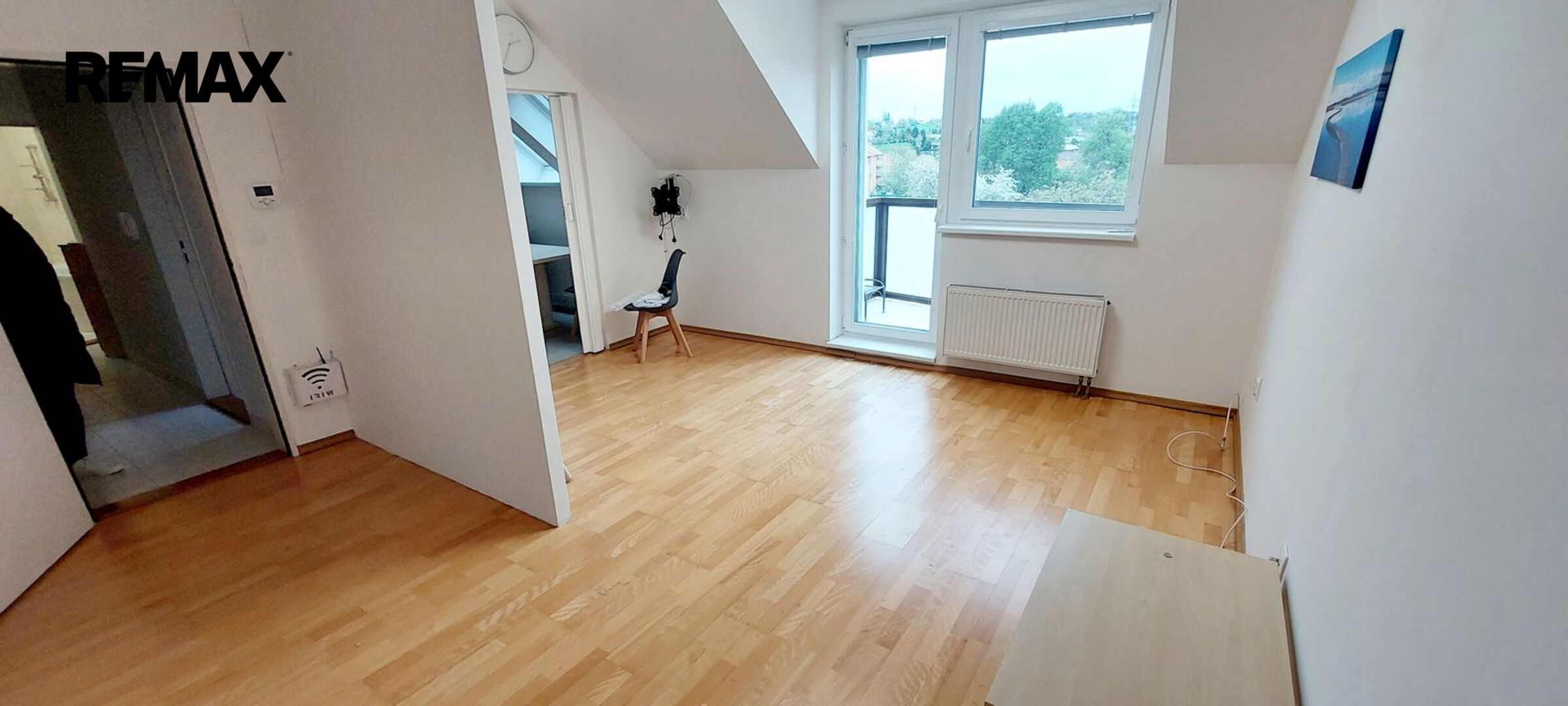 Prostorný obývací pokoj s balkonem i ložnice mají výhled do klidného dvora.