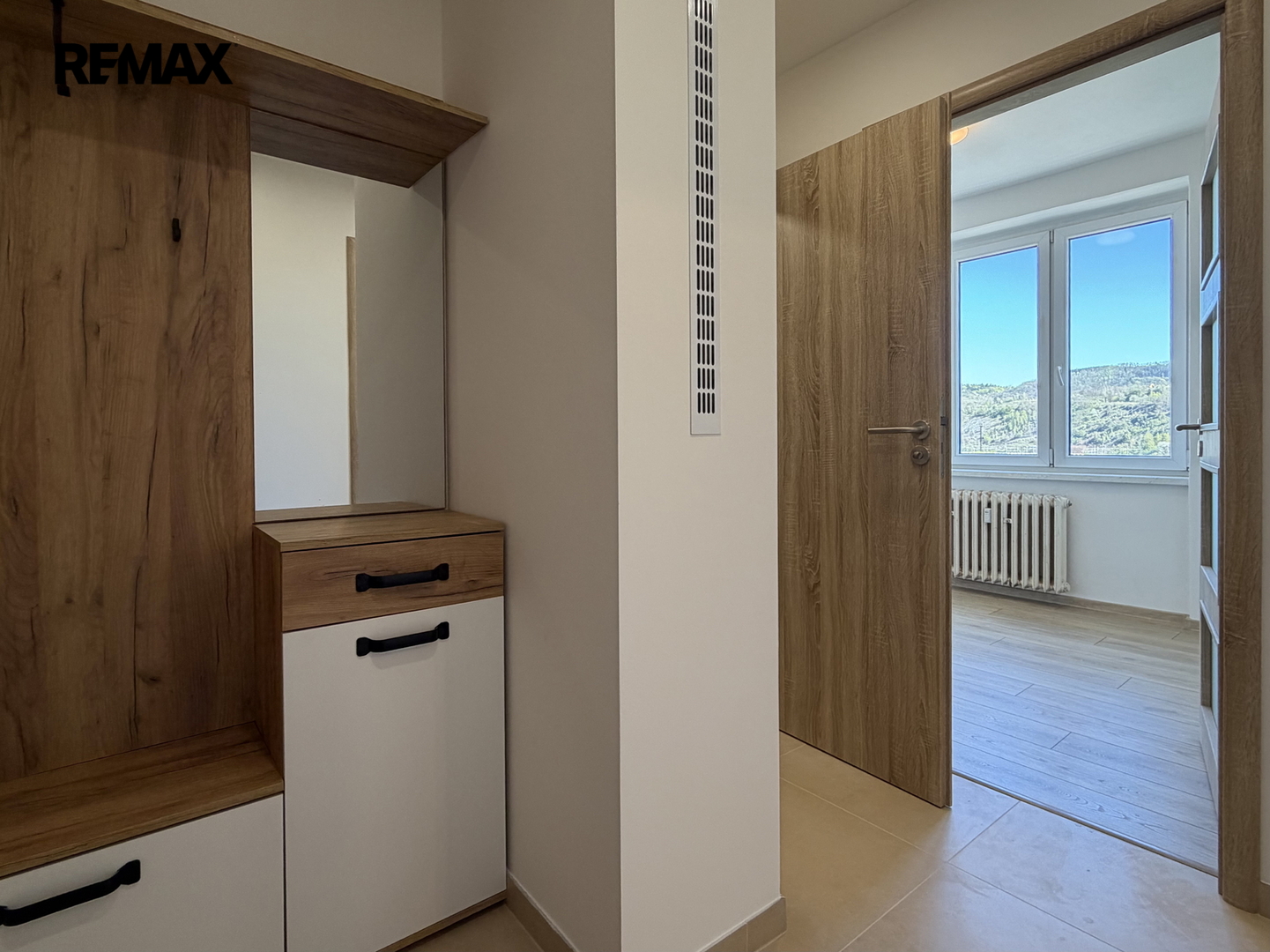 Exkluzivně nabízím k pronájmu nově zrekonstruovaný byt 2+kk o velikosti 36 m² se sklepem 2 m², situovaný v 5. posledním patře panelového domu s výtahem v ulici Josefa Hory, Beroun.