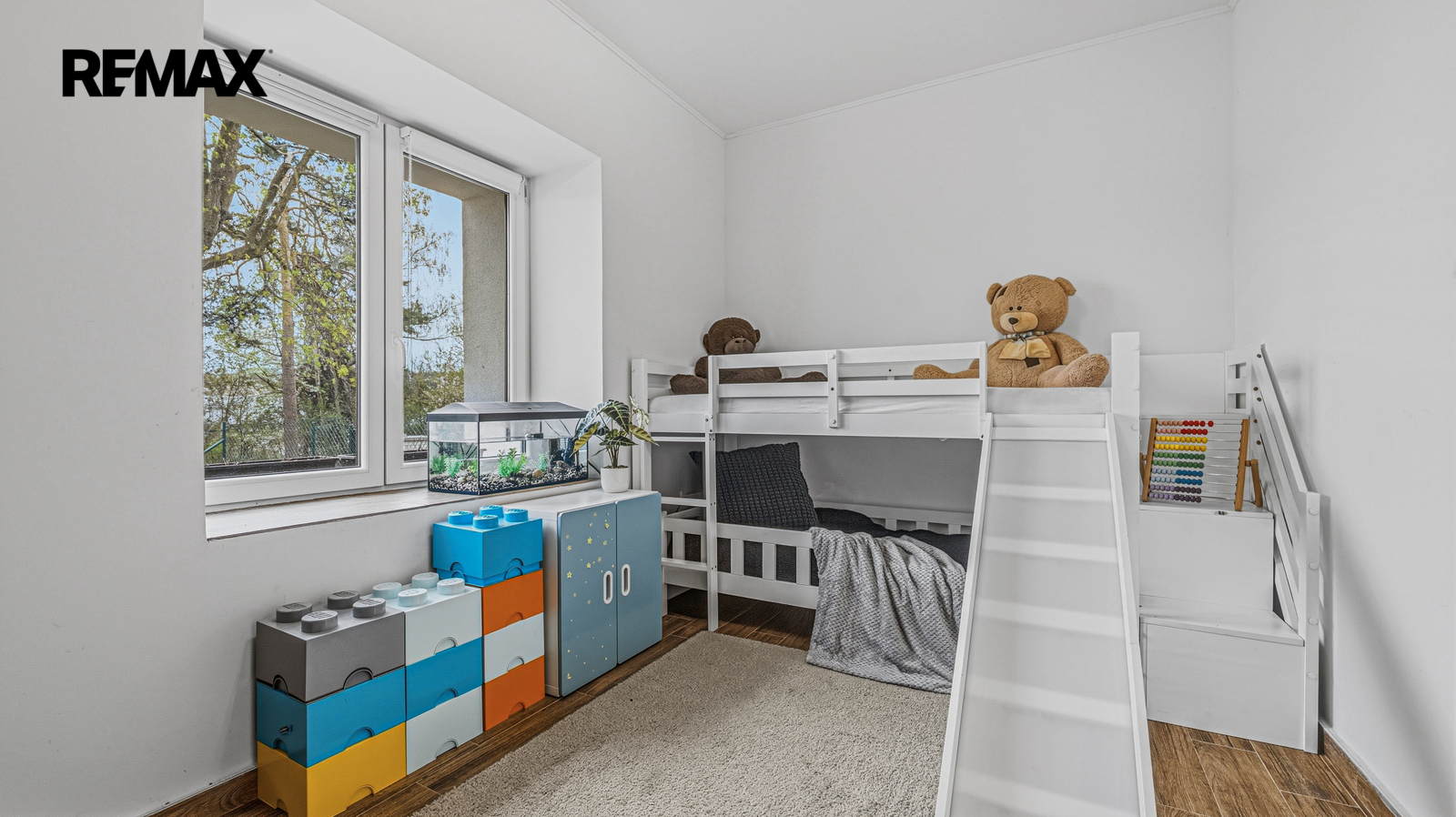 Interiér působí svěže, moderně a díky orientaci je krásně prosvětlený. Výhled do zeleně a přímý vstup na vlastní zahradu vytváří ideální kombinaci bytu a rodinného domu. Zahrada nabízí prostor pro relaxaci, grilování i bezpečné místo pro děti.