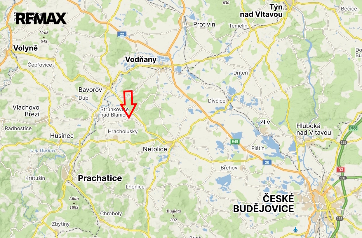 Velký Bor je klidná místní část Strunkovic nad Blanicí, zhruba 4 km od jejich centra a jeho poloha zajišťuje dobrou dopravní návaznost na širší region (zastávka bus 50 m od pozemku). Strunkovice nad Blanicí leží přibližně 9 km severovýchodně od Prachatic a 6 km západně od Netolic. Prachatice nabízejí širokou občanskou vybavenost včetně úřadů, pošty, škol, obchodů, restaurací, nemocnice, lékáren, zdravotnických zařízení a dalších služeb. Netolice jsou menší historické město v šumavském podhůří mezi Českými Budějovicemi a Prachaticemi, které poskytuje také komplexní občanskou vybavenost.