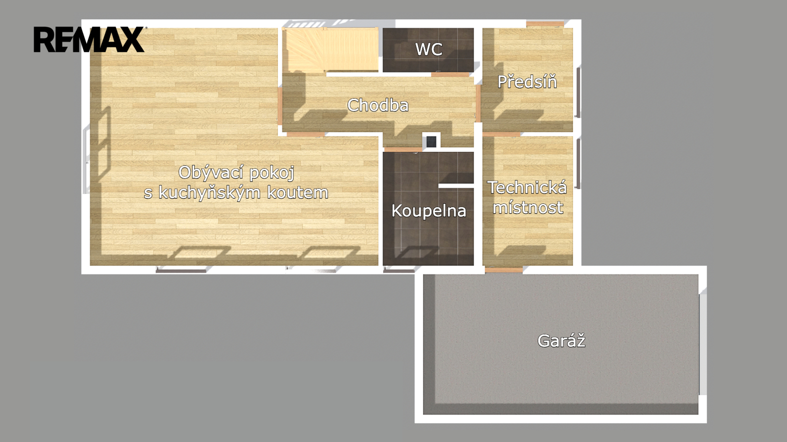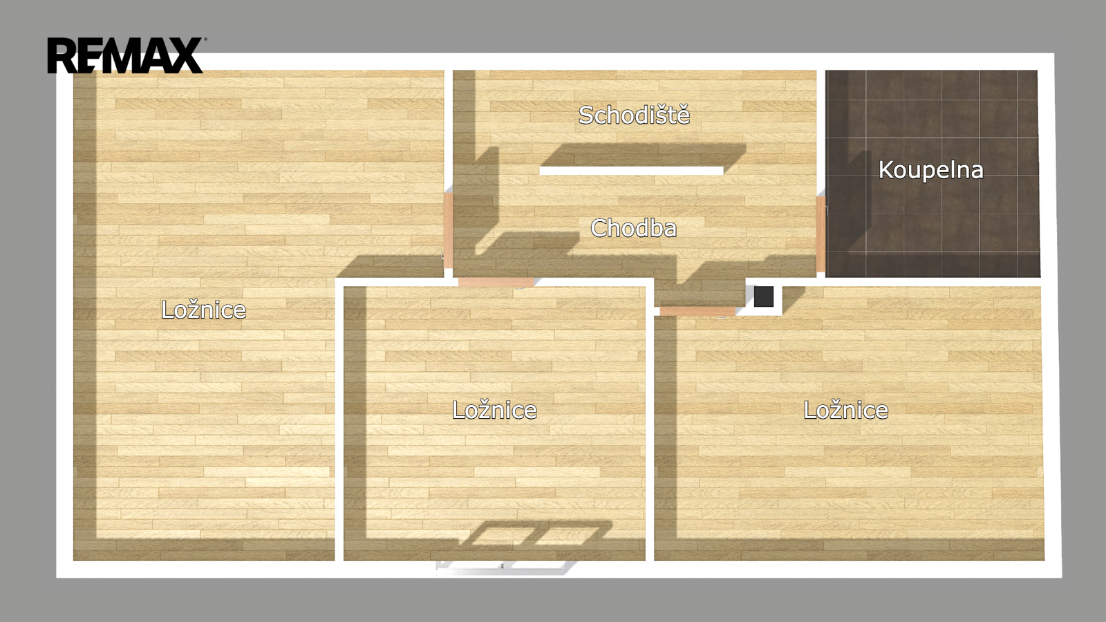Patro: Horní podlaží je rozděleno na tři samostatné neprůchozí pokoje – ideální jako ložnice a dva dětské pokoje. Pohodlí zvyšuje druhá koupelna s WC.