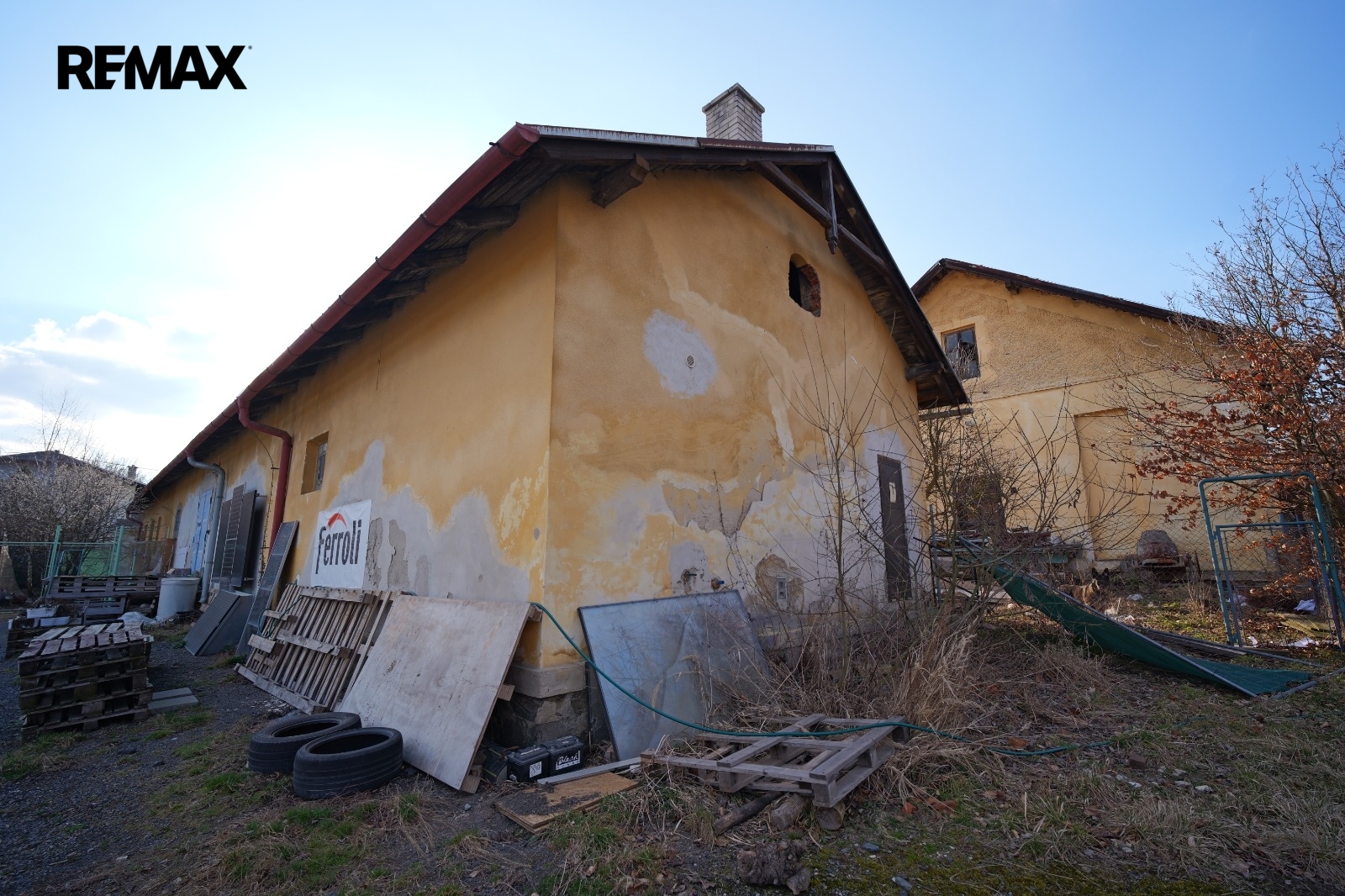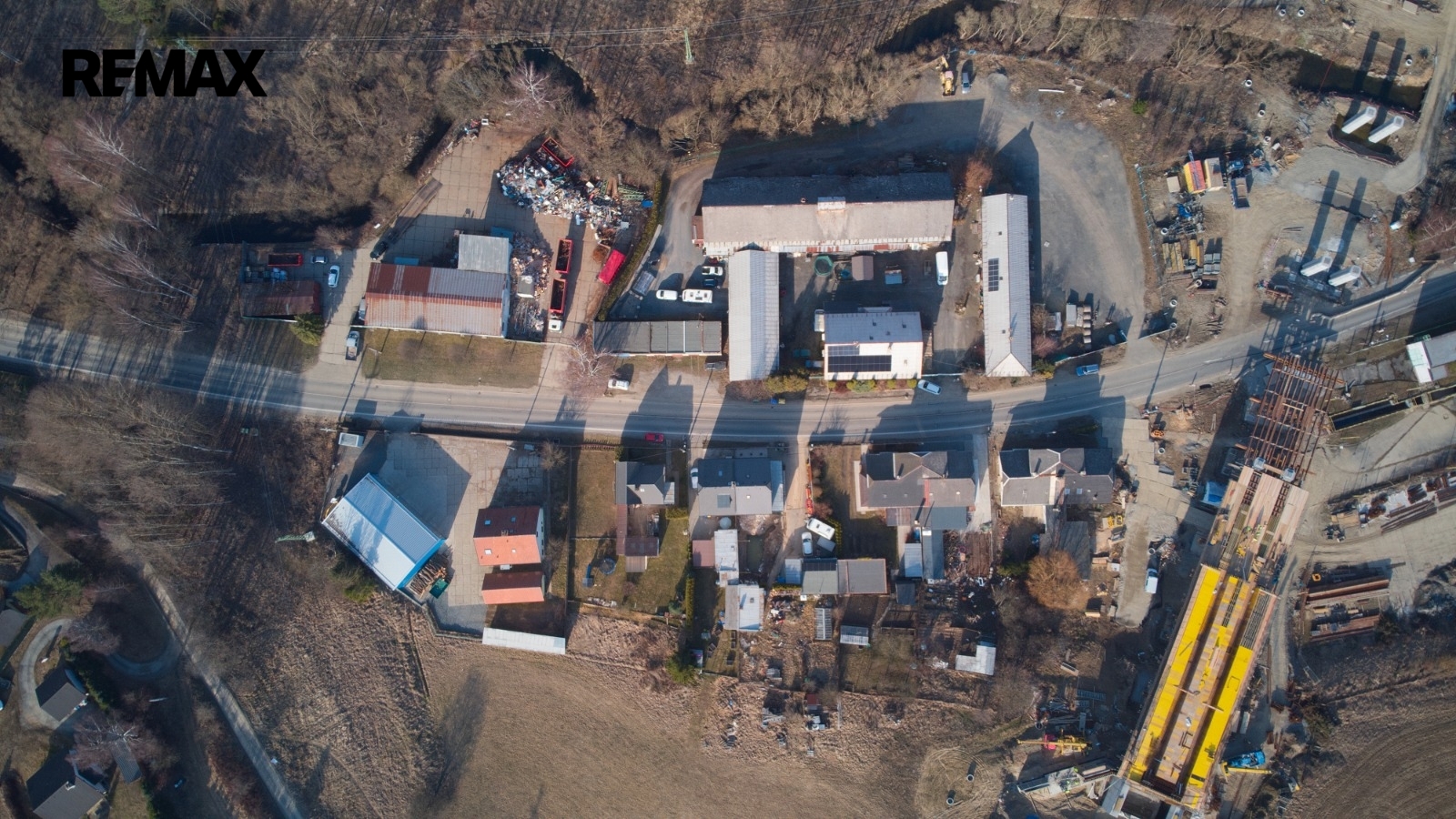Areál o rozloze 5500m2 má dvě skladové haly (600+180) m2 , dále 4 garáže (4 x 50)m2 a administrativní kancelář s bytovou jednotkou 3+1 a 2+1 a podkrovní místnosti.
