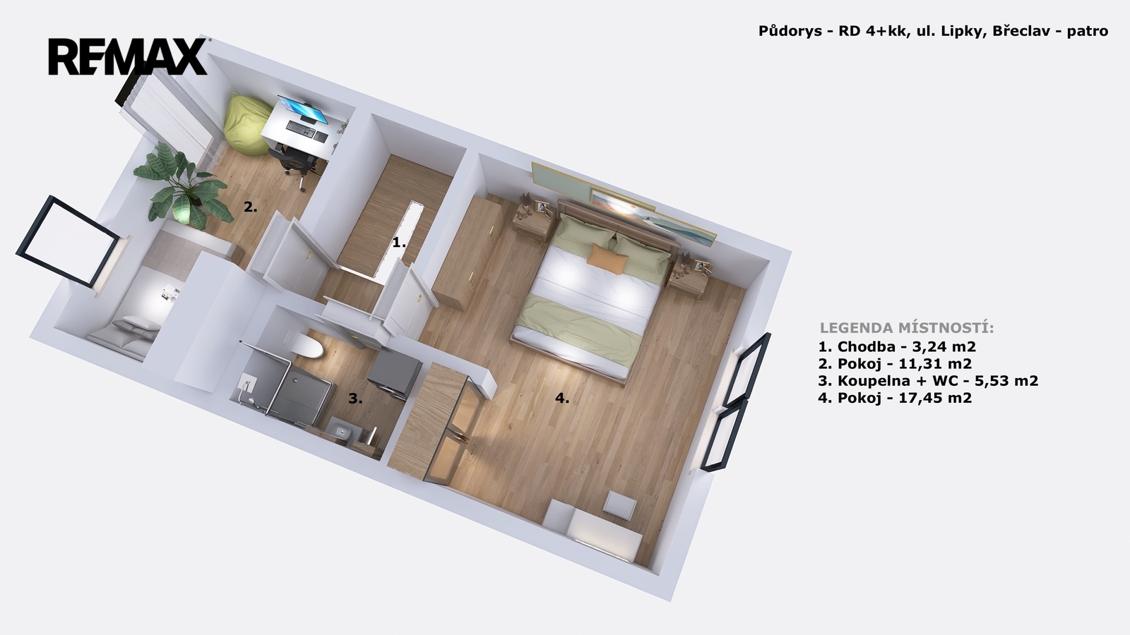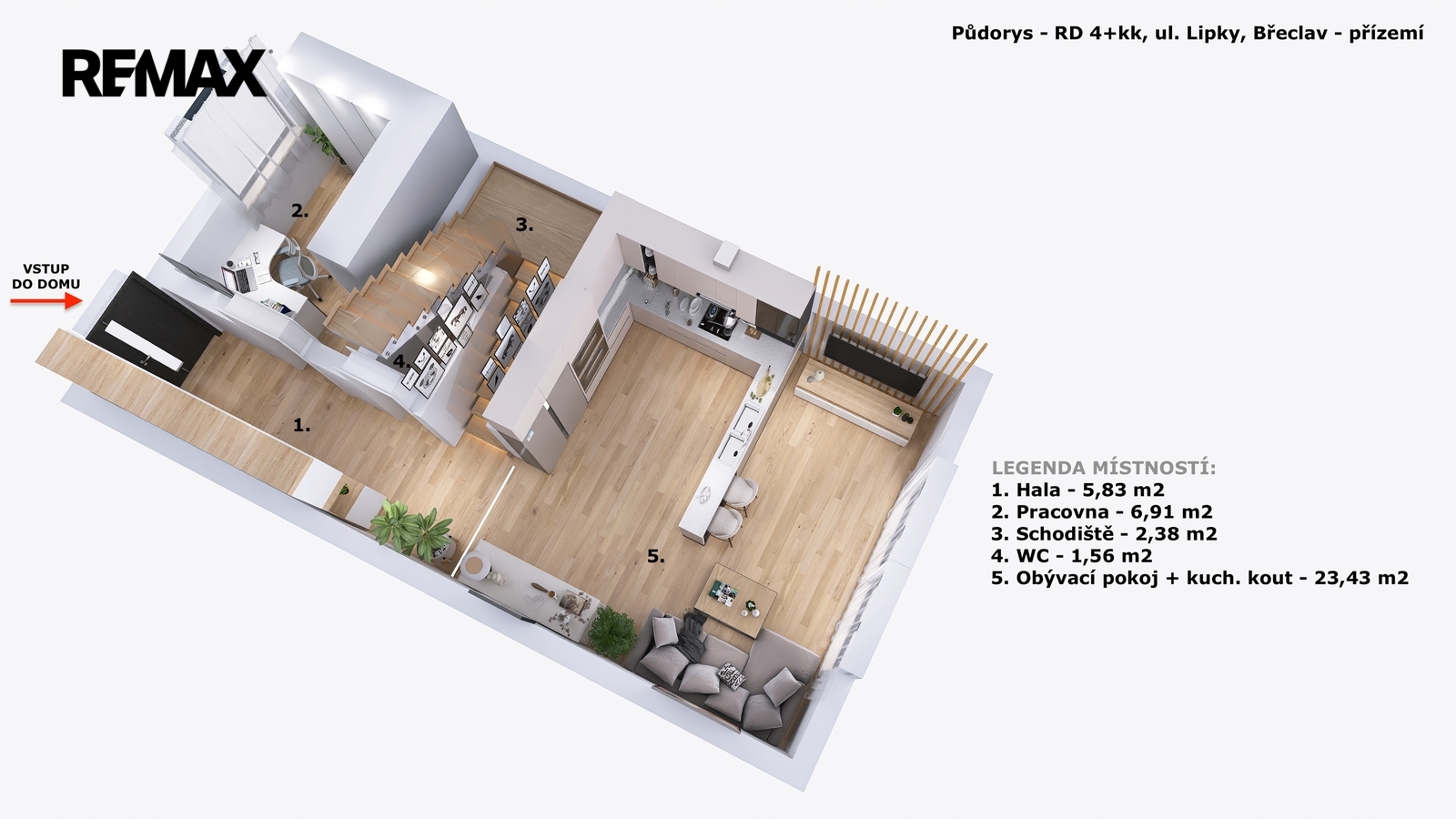 Jedná se o zděný řadový rodinný dům 3+kk s pracovnou o výměře 80 m2 a s pozemkem 168 m2, Dům byl navržen s důrazem na maximální využití prostoru a každodenní komfort, a i přes kompaktní rozměry nabízí plnohodnotné bydlení s dostatkem funkčních prvků a prakticky řešeného zázemí pro domácnost. Samozřejmostí jsou promyšlené detaily instalací a moderní technologie, které zvyšují komfort užívání, včetně příprav pro venkovní využití nebo technické řešení jednotlivých prvků domácnosti. Nemovitost bude dodána ve stavu na klíč dle standardu vybavení, které Vám předložíme, nebo naleznete na stránkách nemovitosti. V tento okamžik je ještě možnost měnit některé standardy. Na fotografiích jsou zobrazeny VIZUALIZACE, jak může Váš nový domov vypadat. Kuchyně a nábytek není součástí dodávky nemovitosti k prodeji.