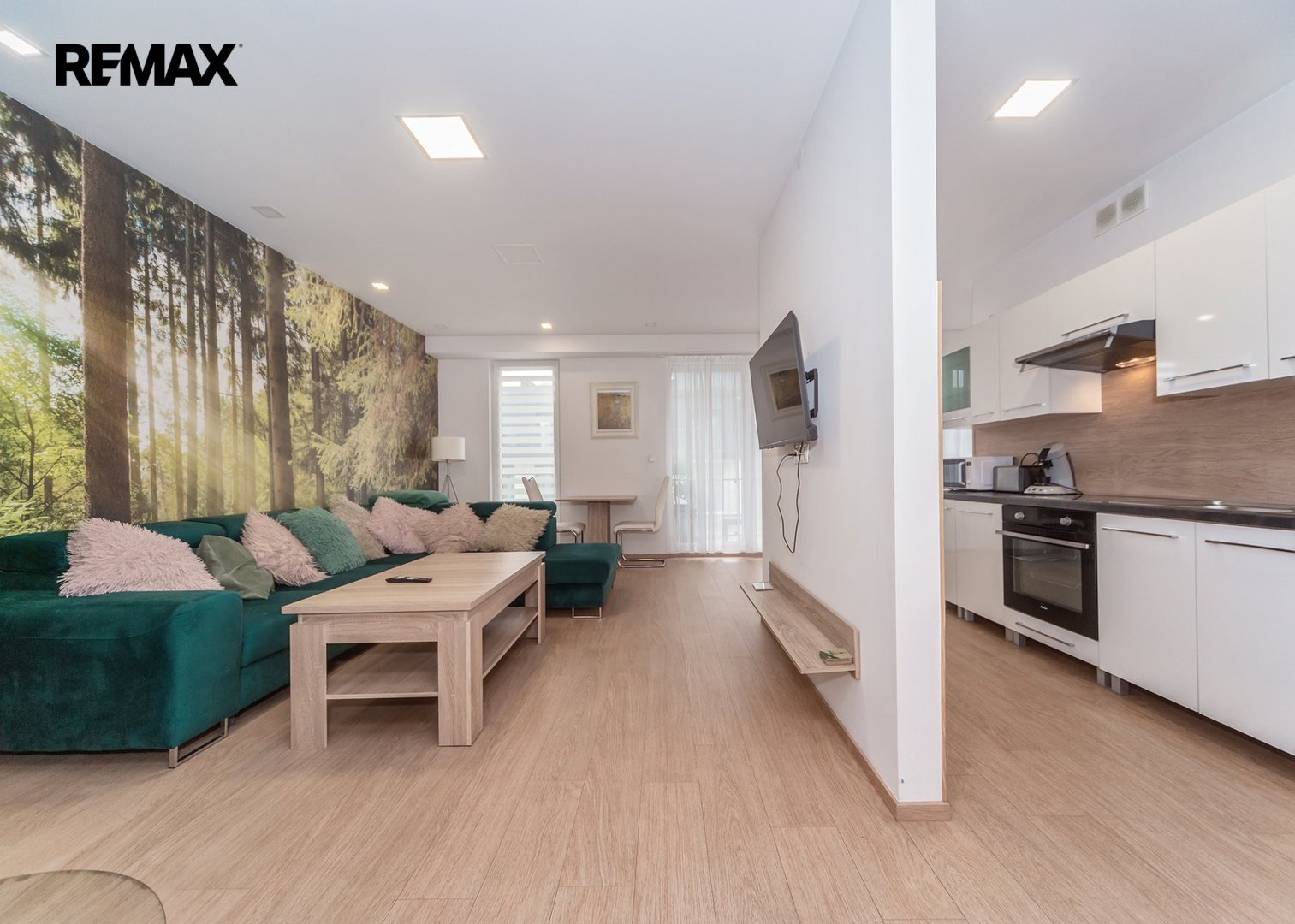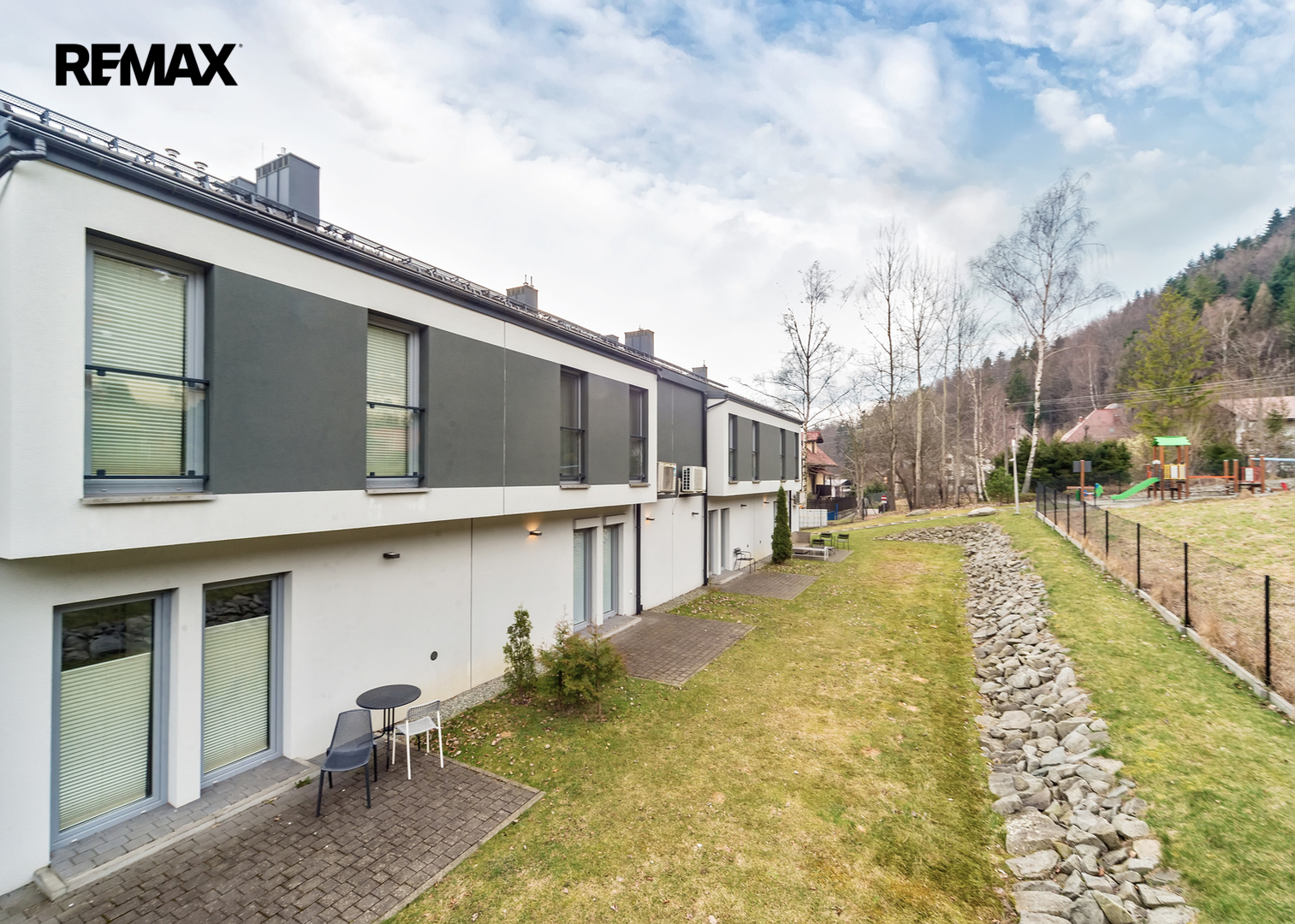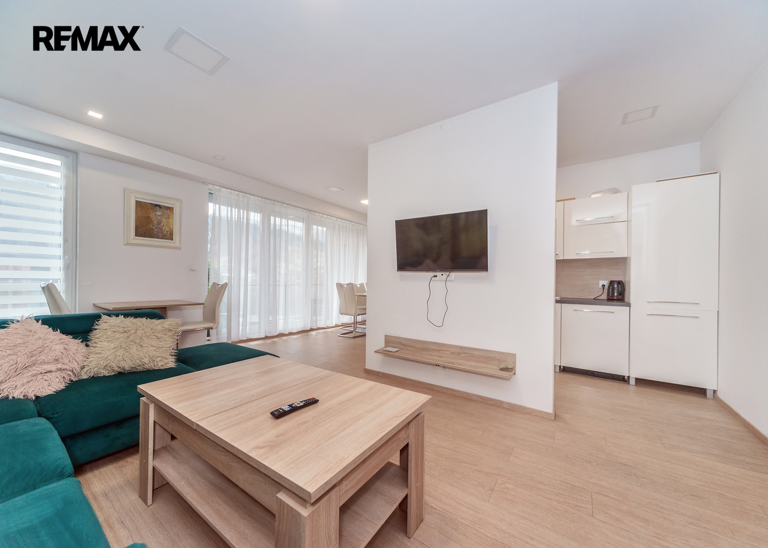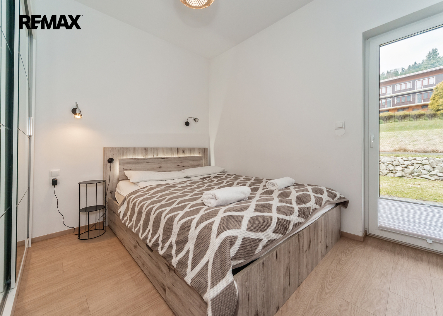 Velkým benefitem jsou také venkovní prostory – balkon, terasa a zahrádka o cca 34 m², ideální pro relaxaci s výhledem na okolní přírodu. Apartmán se nachází v klidném, monitorovaném areálu na vyvýšeném místě s krásnými výhledy.
