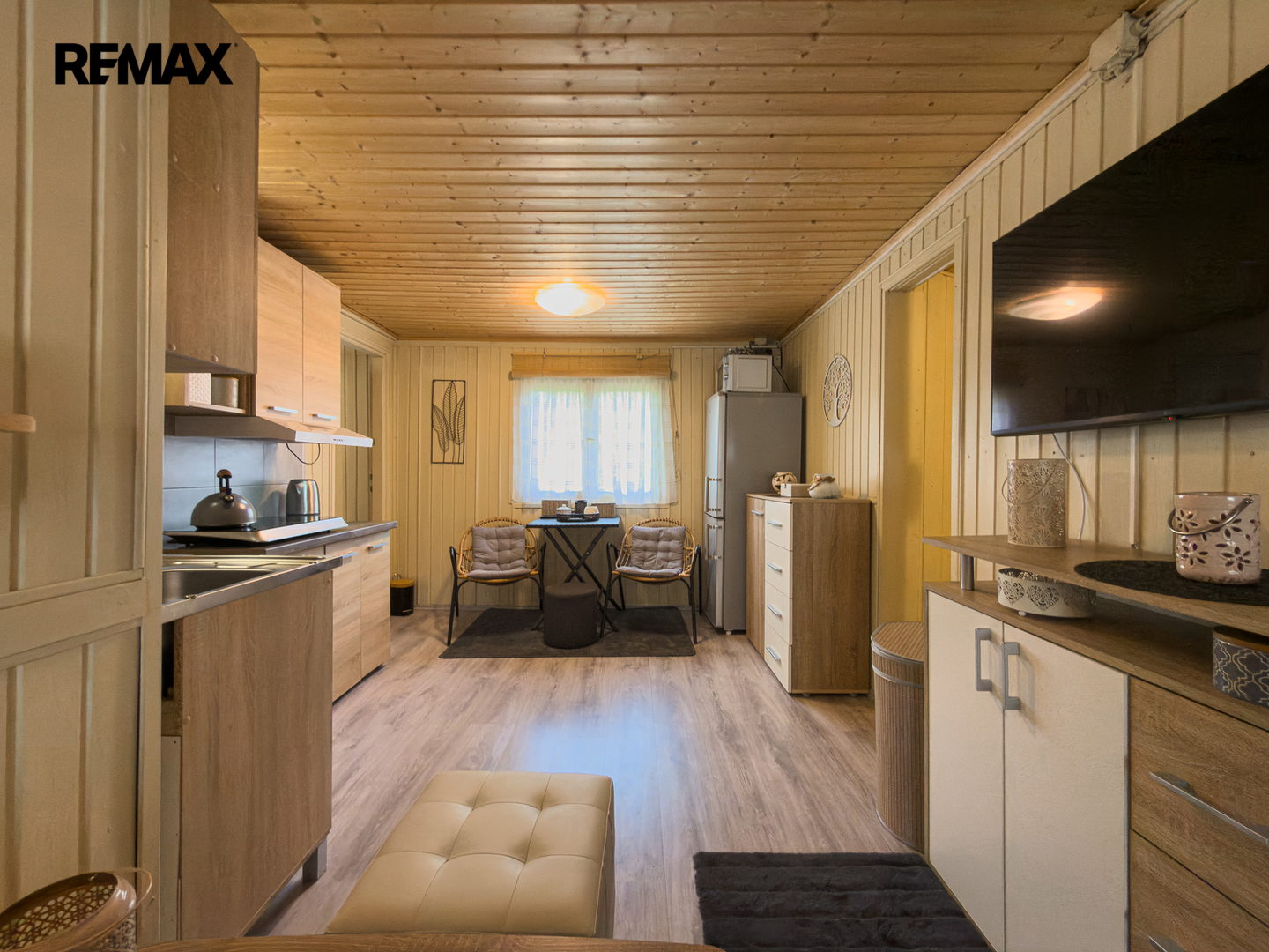 Vzhledem k umístění na pronajatém pozemku nelze koupi financovat klasickou hypotékou. Prodej je možný pouze z vlastních zdrojů (v hotovosti), případně prostřednictvím nezajištěného úvěru. Nemovitost je vkusně vybavená a připravená k okamžitému předání – stačí se jen nastěhovat a začít relaxovat bez jakýchkoliv dalších starostí.