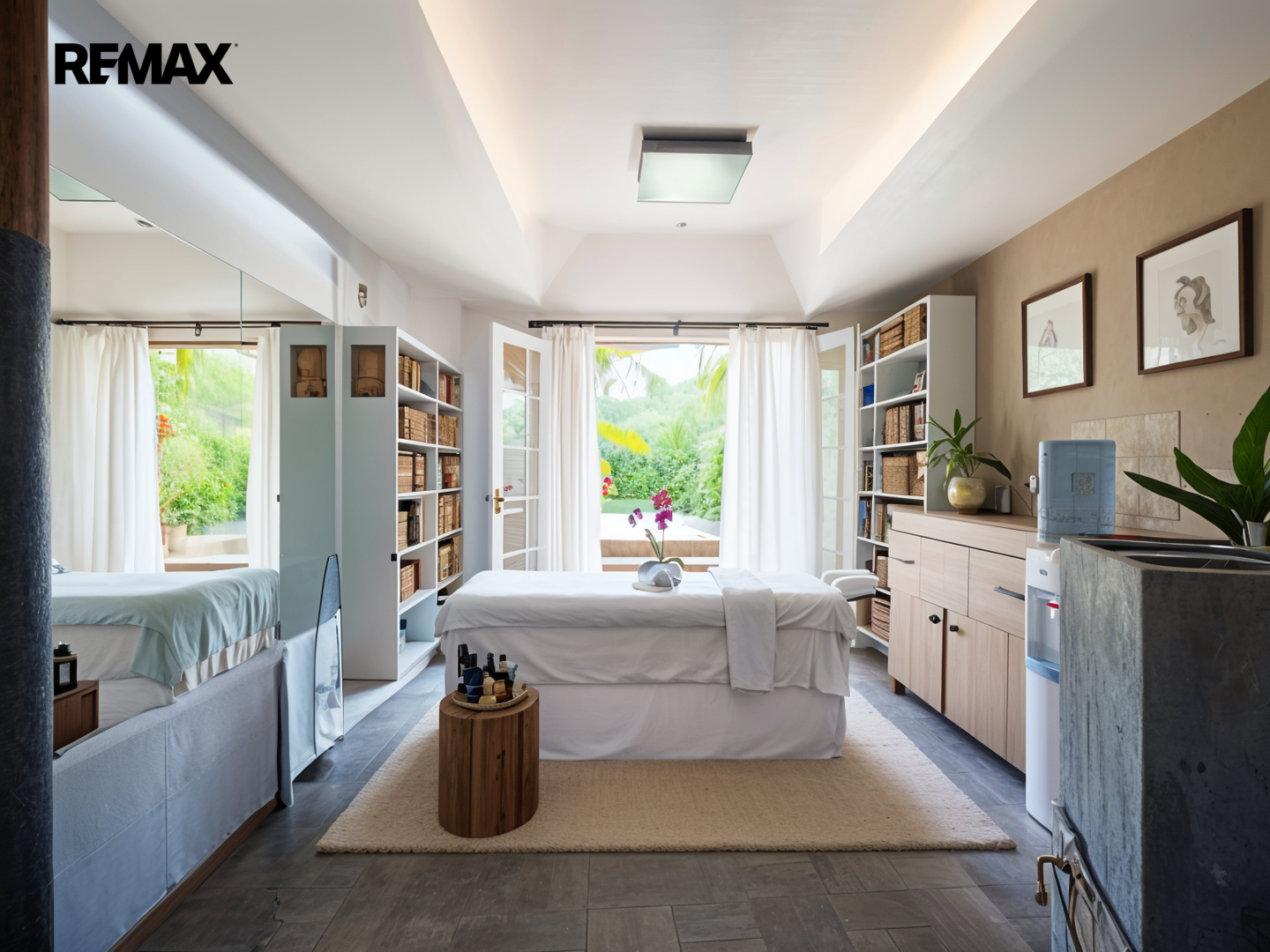 Patro: prostorný pokoj se vstupem na terasu, pracovna a šatna.