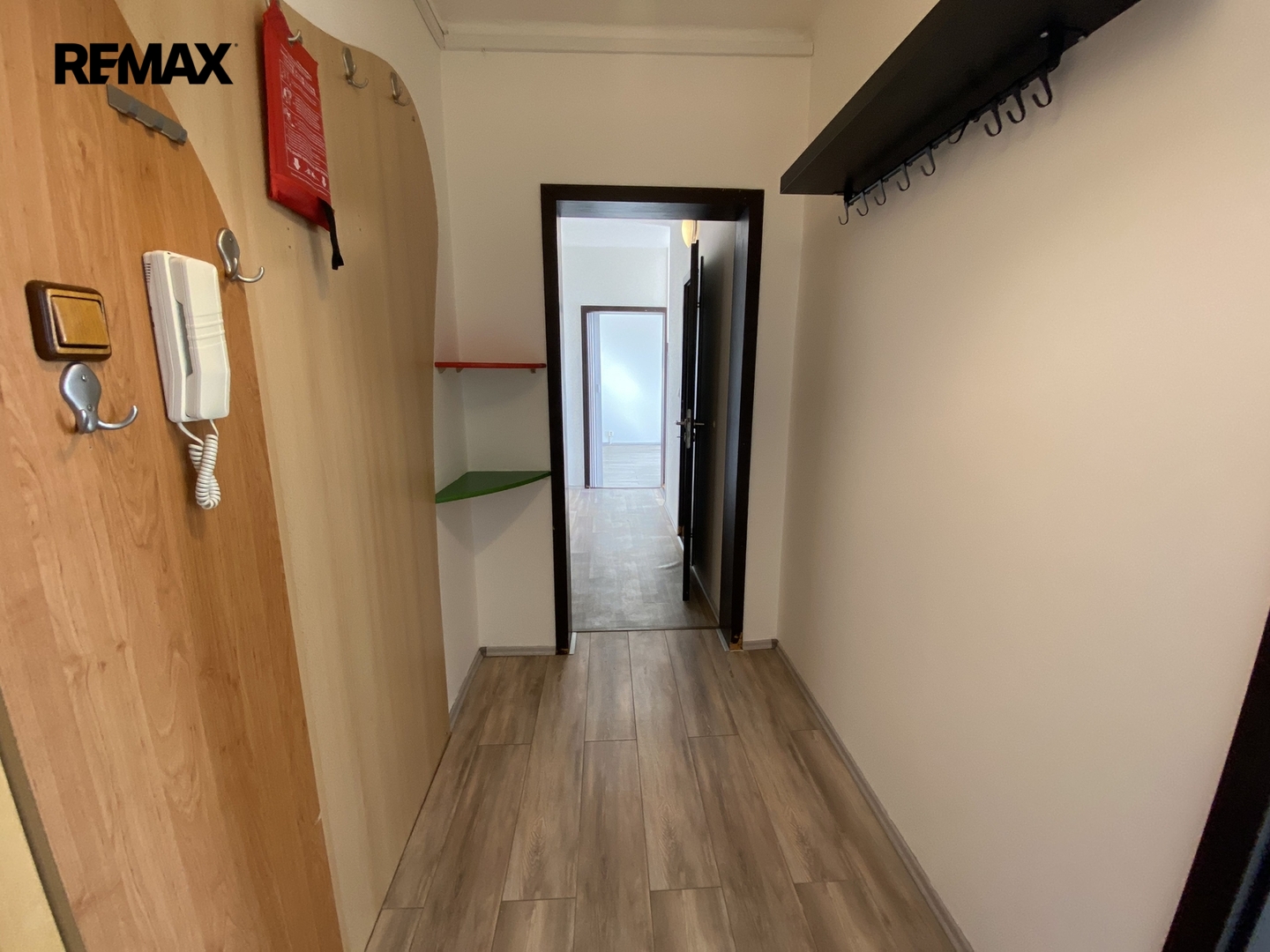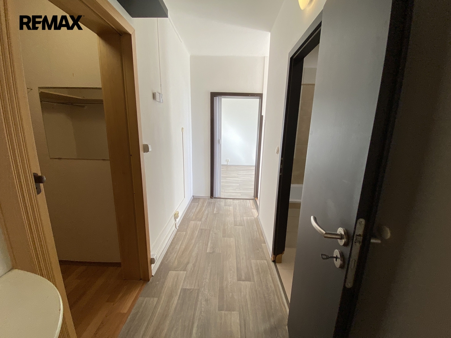 V bytě je dostatek prostoru pro umístění pračky i sušičky. Kromě dvou prostorných, samostatných pokojů je k dispozici také menší šatna, která poskytuje další úložný prostor.