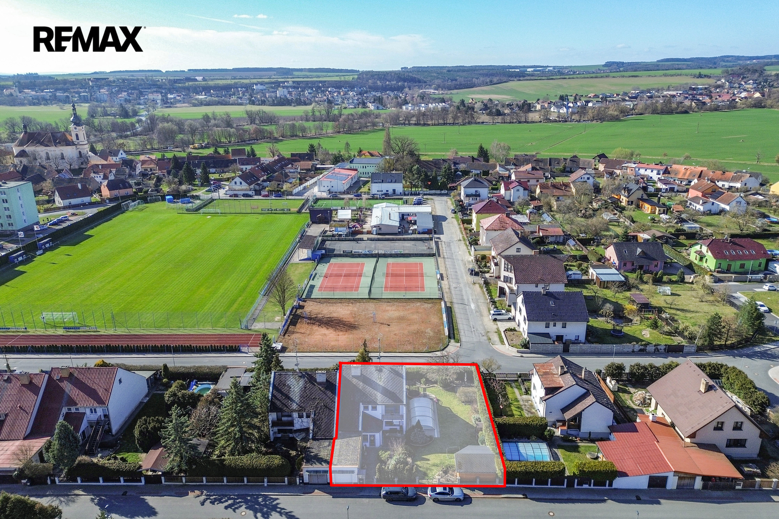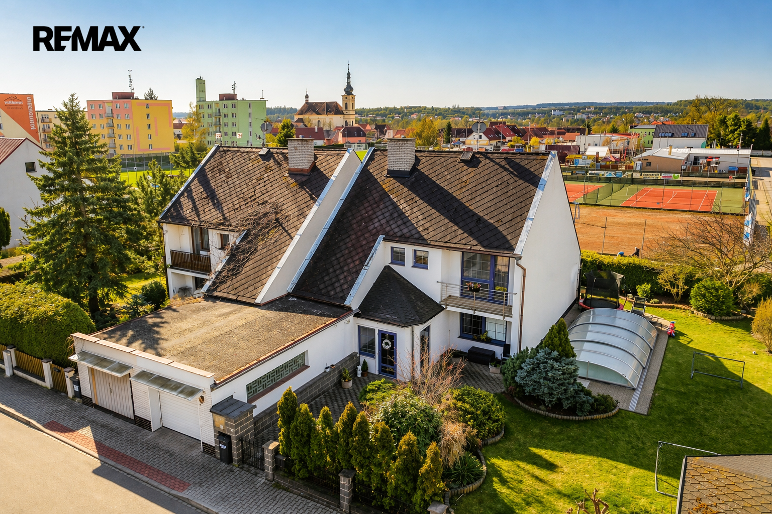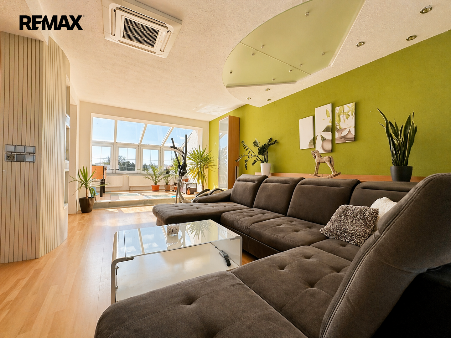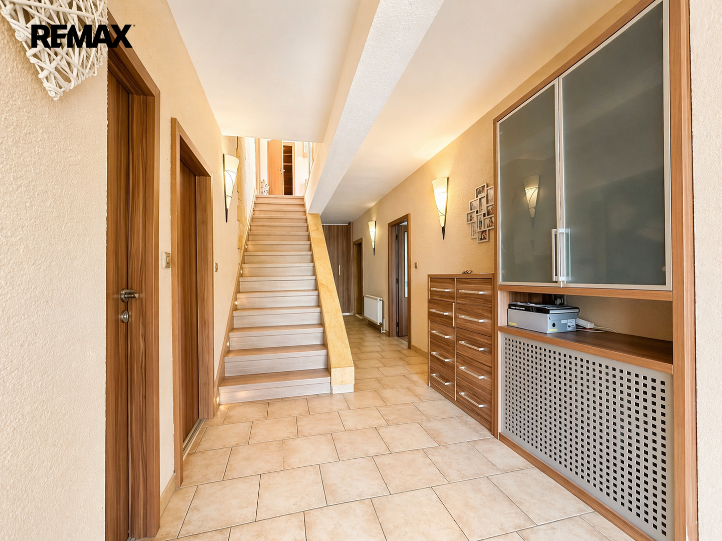 Dům nabízí užitnou plochu přibližně 240 m² rozloženou do tří nadzemních podlaží, dále sklep o velikosti cca 40 m² a garáž s dílnou o ploše cca 30 m². Součástí je zimní zahrada, klimatizované místnosti a celkově velmi udržovaný stav bez nutnosti zásadních investic. Vytápění je řešeno ústředním topením, ohřev vody zajišťuje elektrický bojler, na pozemku se nachází také vlastní studna.