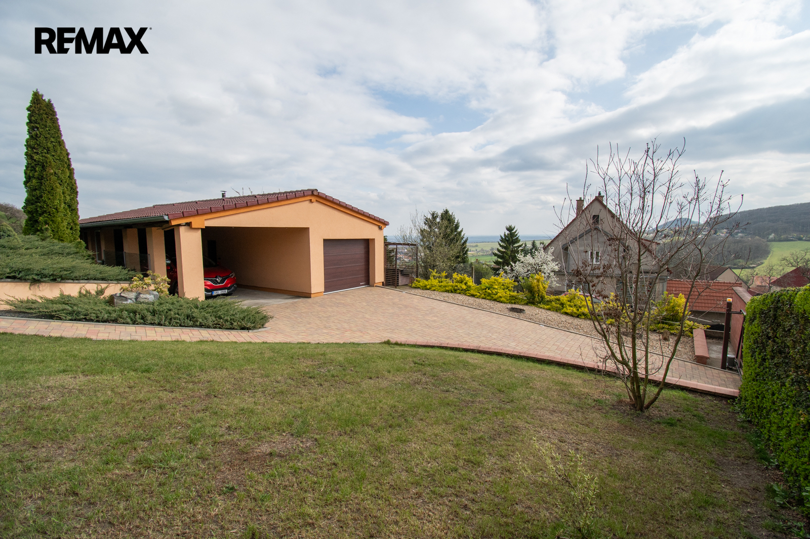 Dům byl kolaudován v roce 2017 a lze ho tedy zařadit k prodeji do kategorie novostaveb. Umístěn je na mírně svažitém pozemku o výměře 1501 m2 s otevřeným výhledem na Litoměřice a porta bohemiku. Zahrada domu nabízí značnou míru soukromí a terasa bude vaším odpočinkovým místem s výhledem. Vstup či vjezd je zajištěn hlavní branou s nájezdem ke garáži. Možný je vjezd a vstup z horní části domu kde je umístěn vjezd do garáže, která je součástí domu a plní funkci skladovacích prostor.