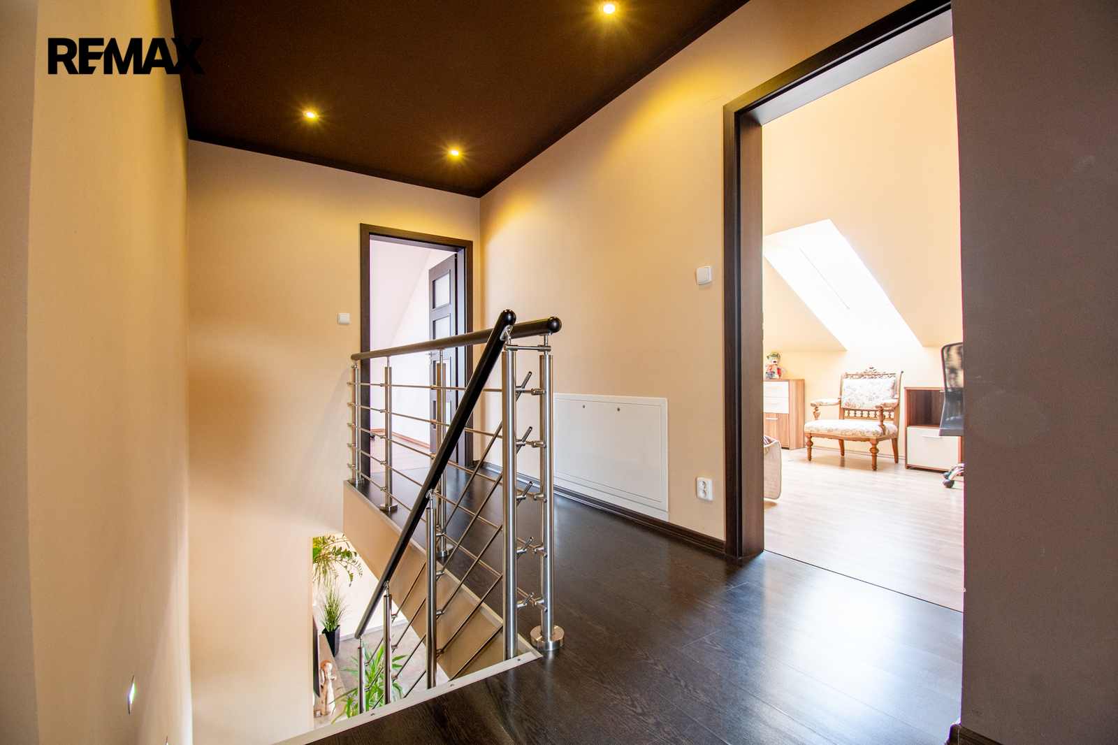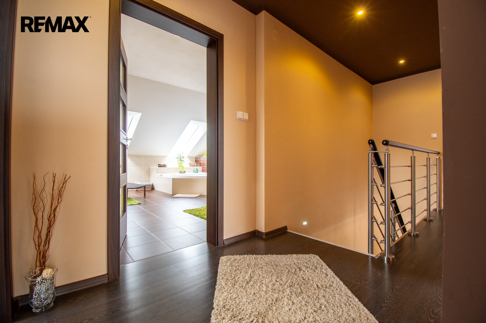 Prostor a dispozice. Dům nabízí celkem 237 m2 užitné plochy v dispozici 5+1 se vstupní chodbou, technickou místností a garáží. Umístit do ní můžete menší fitness, ateliér nebo kancelář.