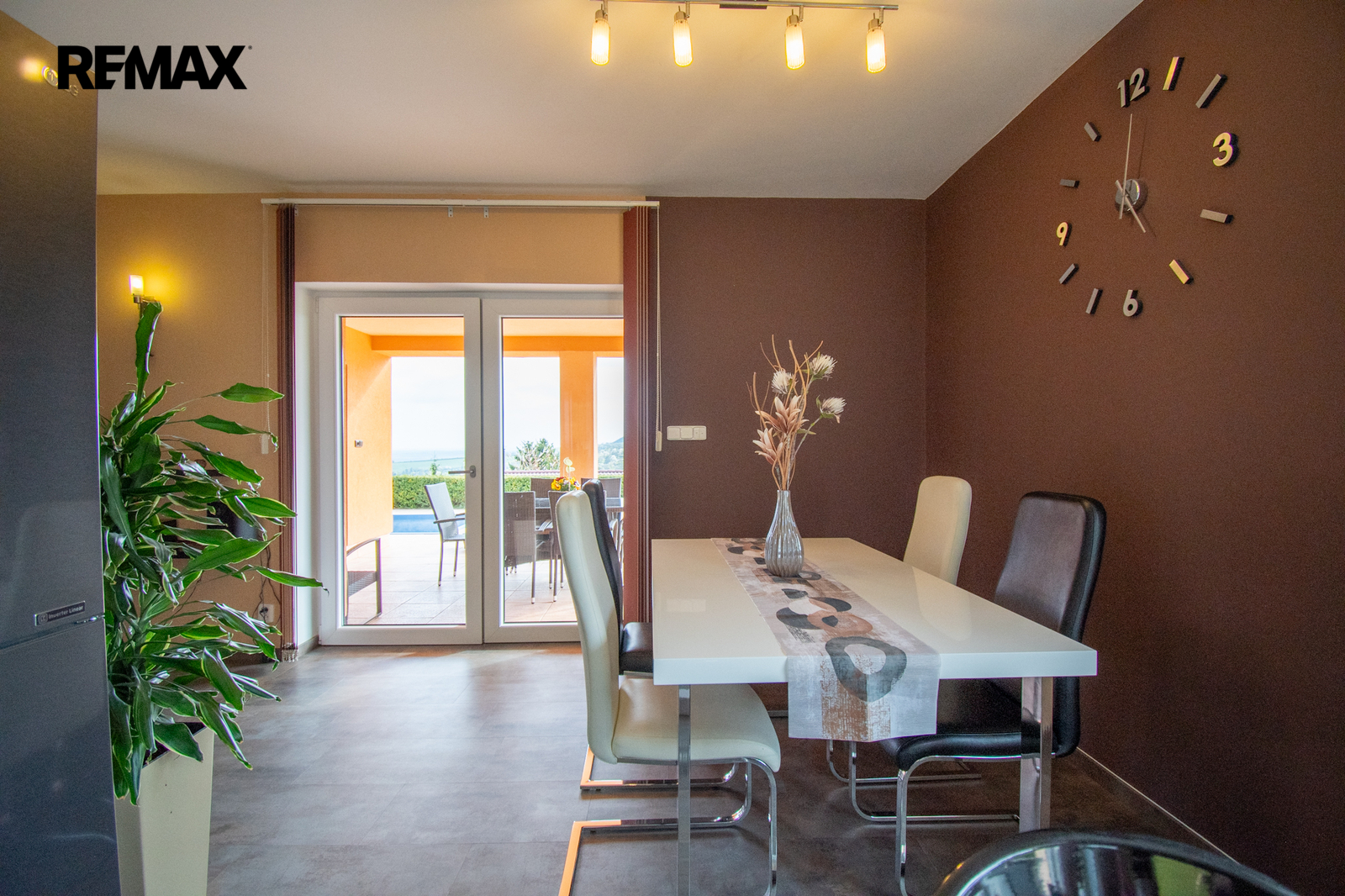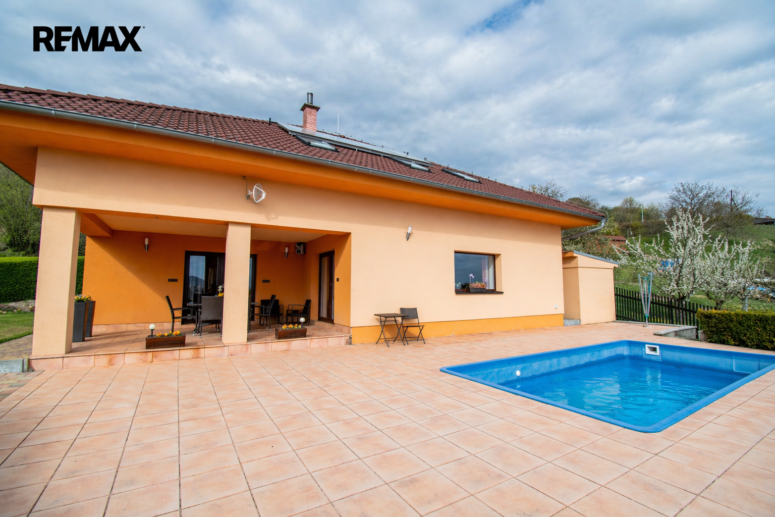 Vybavení domu. Podlahové vytápění které je doplněno krbem opatřený výměníkem a k dispozici jsou čtyři solární panely pro předehřev teplé vody. Hlavním zdrojem vytápění je plynový kondenzační kotel, příprava pro tepelné čerpadlo. Předností nabídky je energetická třída B která se dá ještě vylepšit díky jižní orientaci a možné umístění fotovoltaické elektrárny. Nemovitost disponuje i přípravou na stínění / žaluzie.