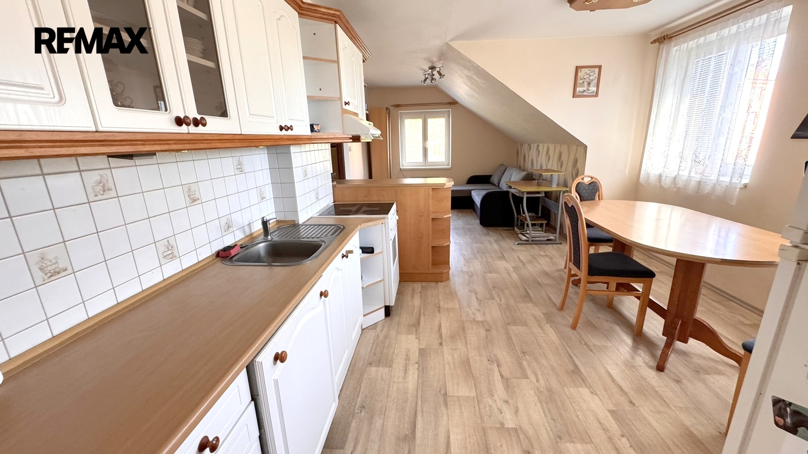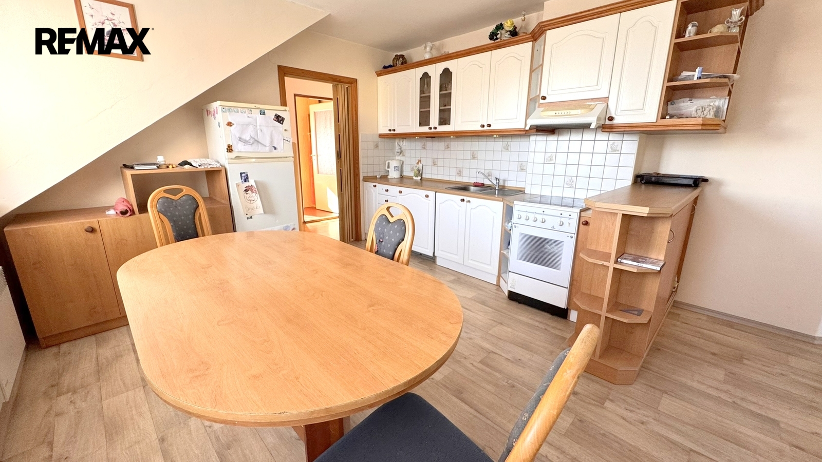 • Druhá bytová jednotka s dispozicí obývacího pokoje s kuchyňským koutem, ložnice, dalšího pokoje, koupelny a haly o celkové ploše 76 m².