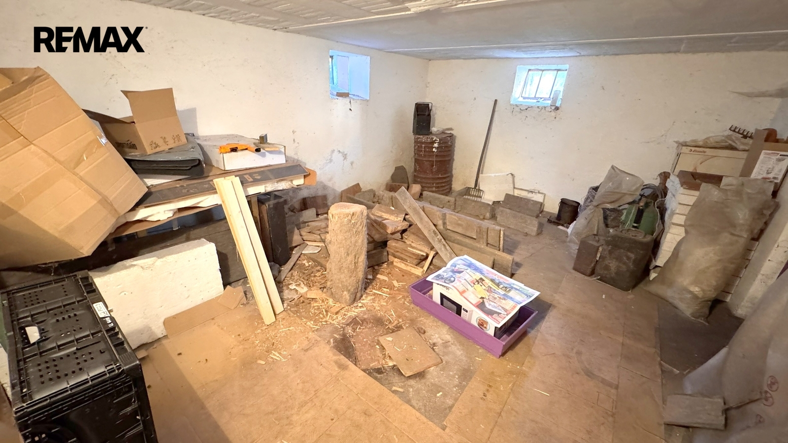 • Celopodsklepení: Suterén slouží jako úložný prostor, dílna a technické zázemí. Je zde možnost zřízení centrálního vytápění (např. instalace kotle na pelety).