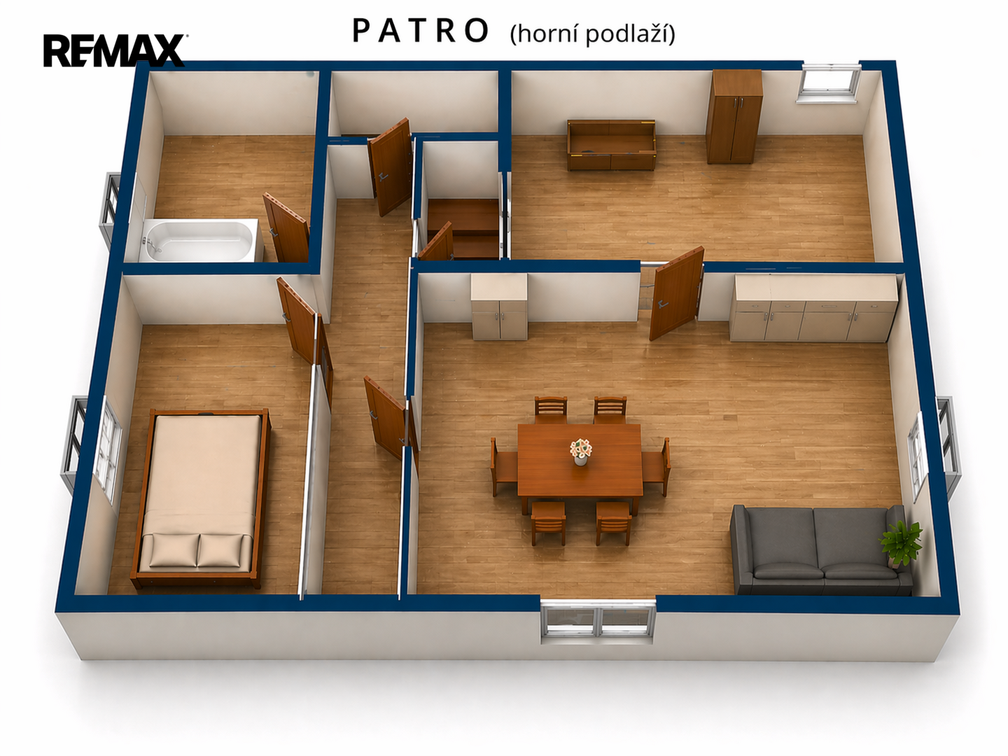 V horním patře proběhla rekonstrukce včetně el. rozvodů v mědi.