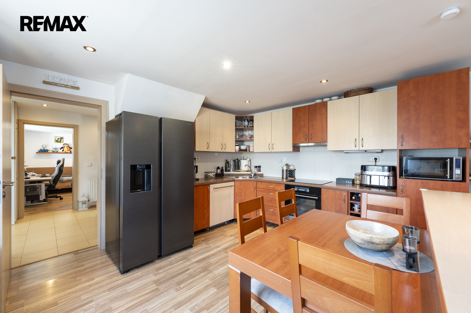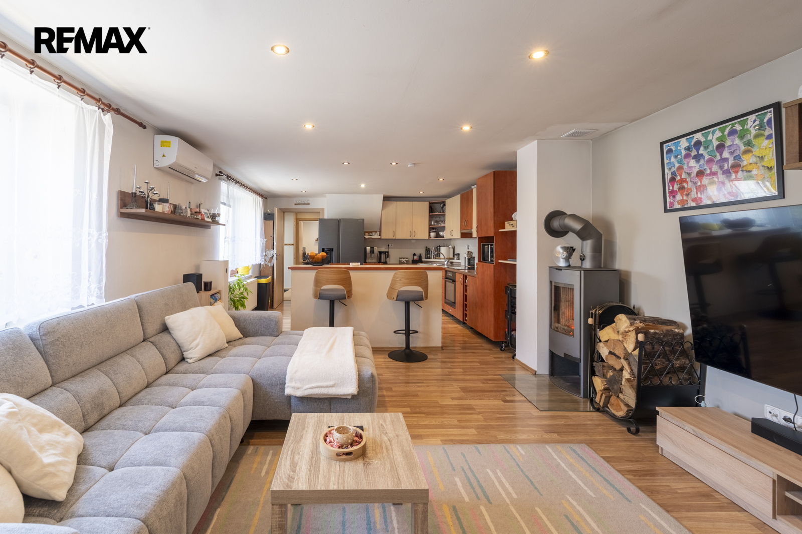 obývací pokoj propojený s kuchyní (plně vybavená spotřebiči)