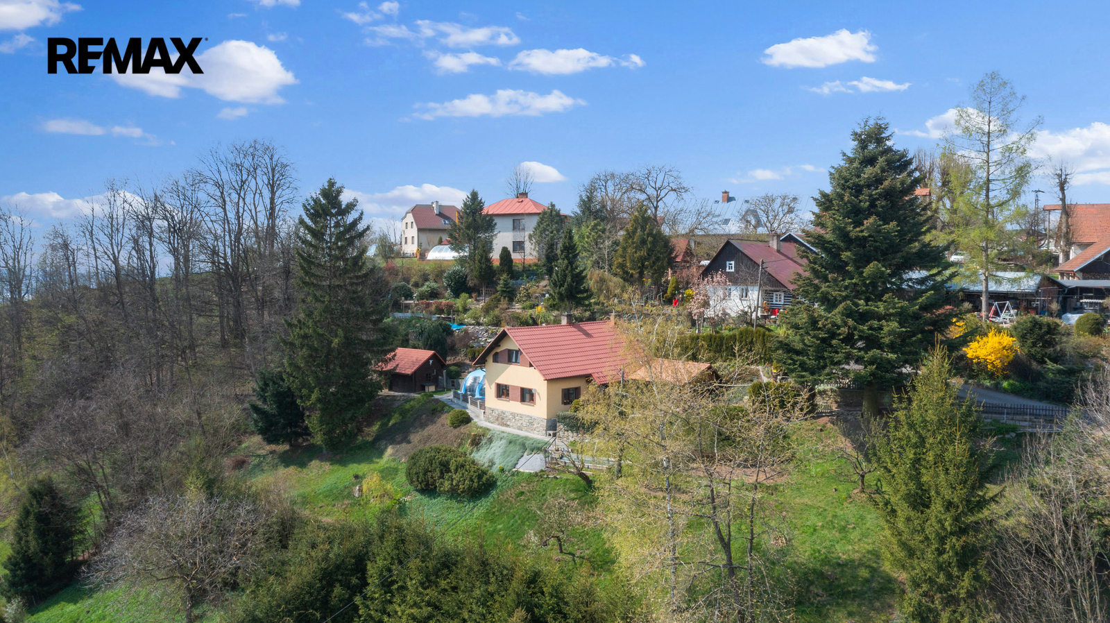 Chalupa se nachází v rámci obce na ideálním místě a je perfektně orientována na světové strany. Částečná terénní členitost pozemku poskytuje majiteli nejen naprosté soukromí, ale i výjimečný výhled do údolí obce v každém ročním období (foto v inzerci jsou autentická přímo od chalupy). Při prohlídce oceníte i citlivé zahradní úpravy pozemku u chalupy.