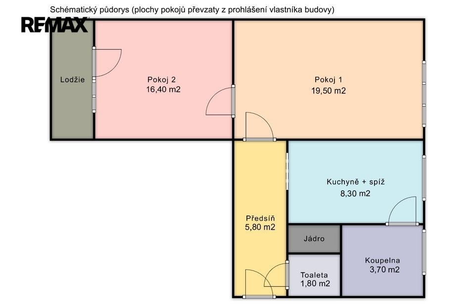 Byt se skládá z dvou průchozích pokojů (19,5 m² a 16,4 m²), kuchyně se spíží (8,3 m²), předsíně, koupelny s vanou, samostatného WC a lodžie (cca. 1,5m2). Součástí pronájmu je prostorný sklep 10 m², který ocení každý, kdo potřebuje místo pro kola, lyže nebo sezónní věci.