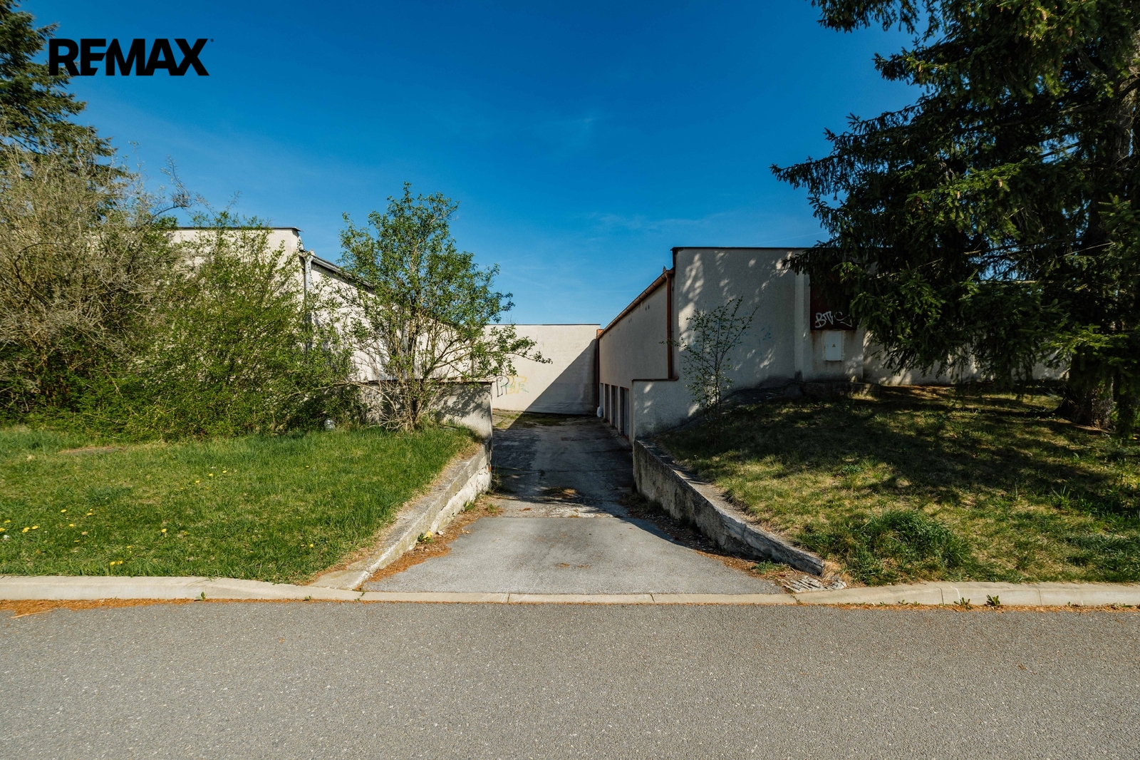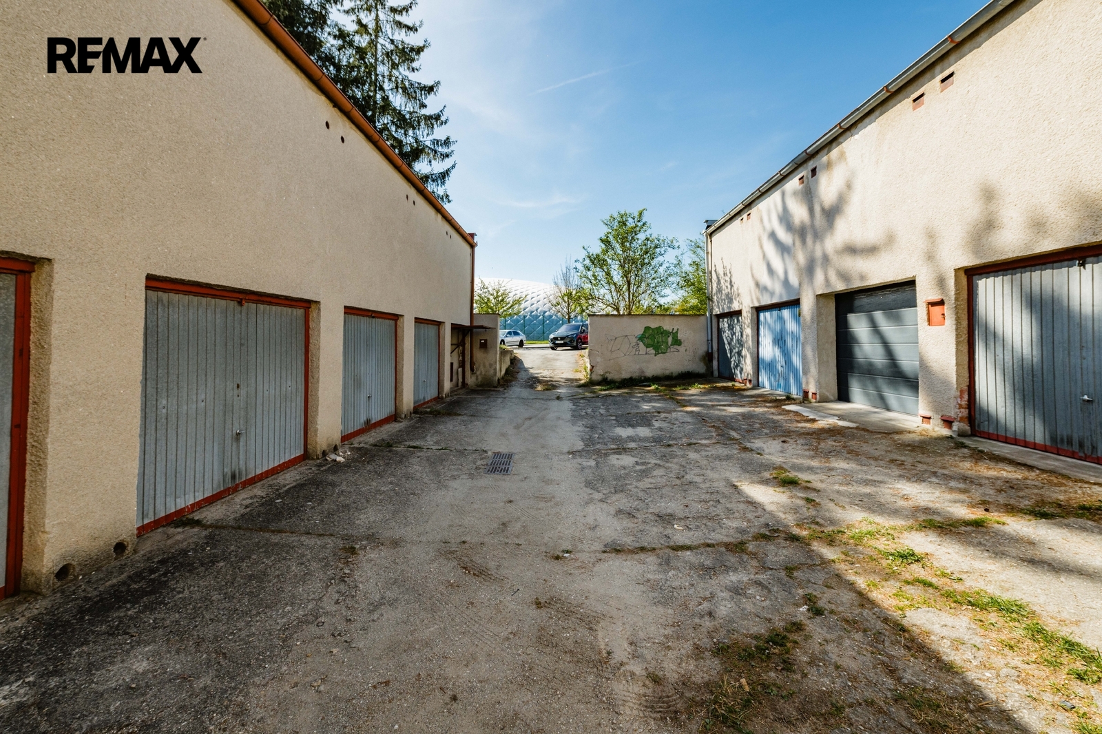 Vjezd je zajištěn výklopnými plechovými vraty. Šířka vjezdu je 2,33 m, výška vjezdu 1,80 m.