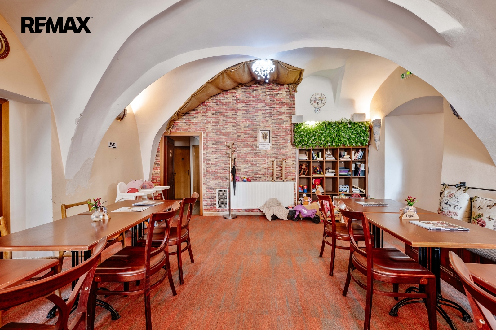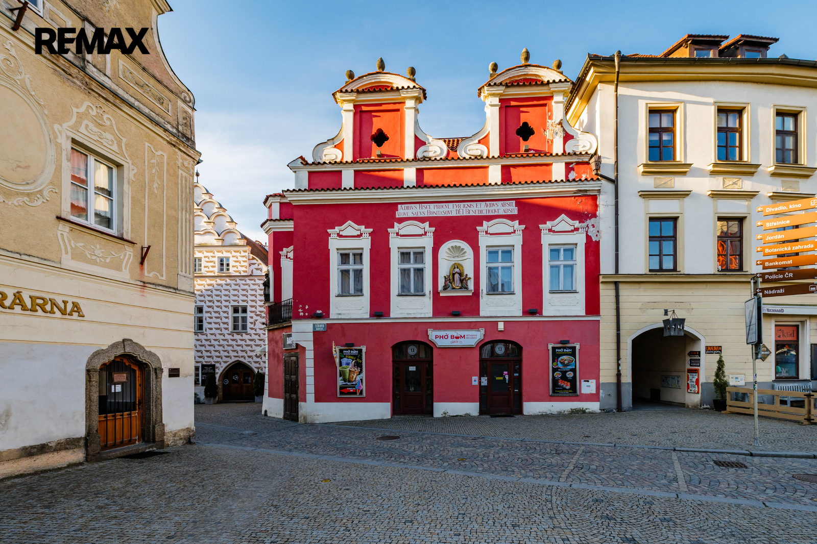 Zavedené komerční prostory – restaurace a prodejna zmrzliny s přímým vstupem z náměstí a vysokou frekvencí pohybu osob.