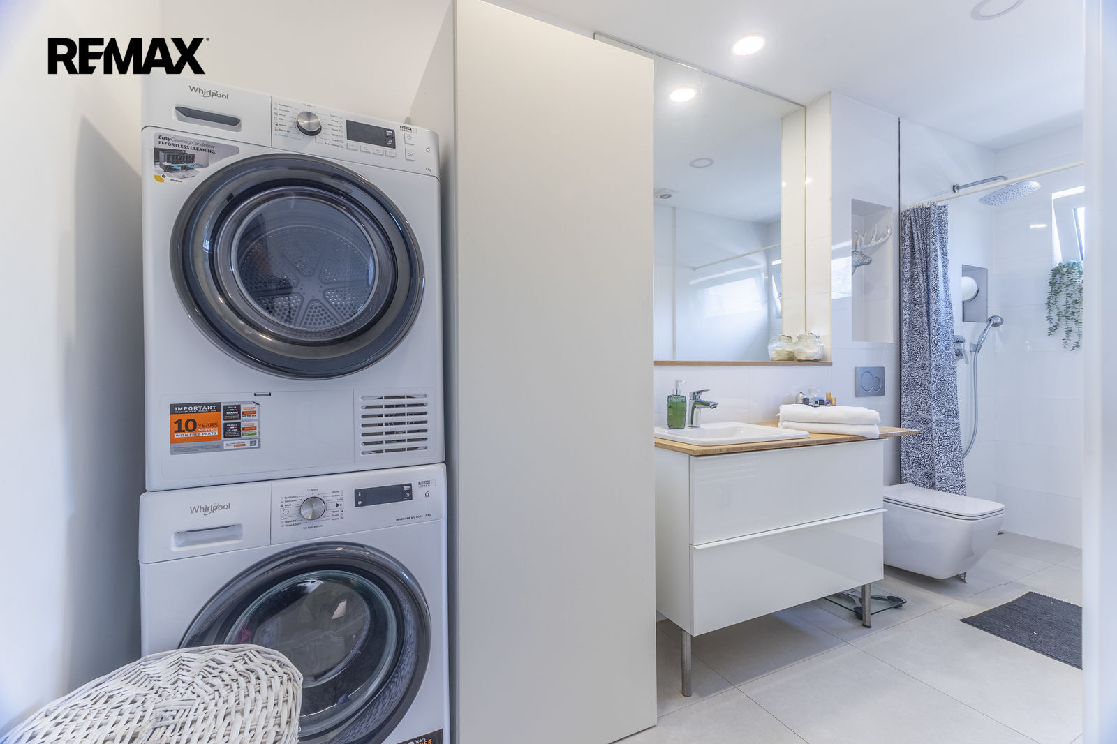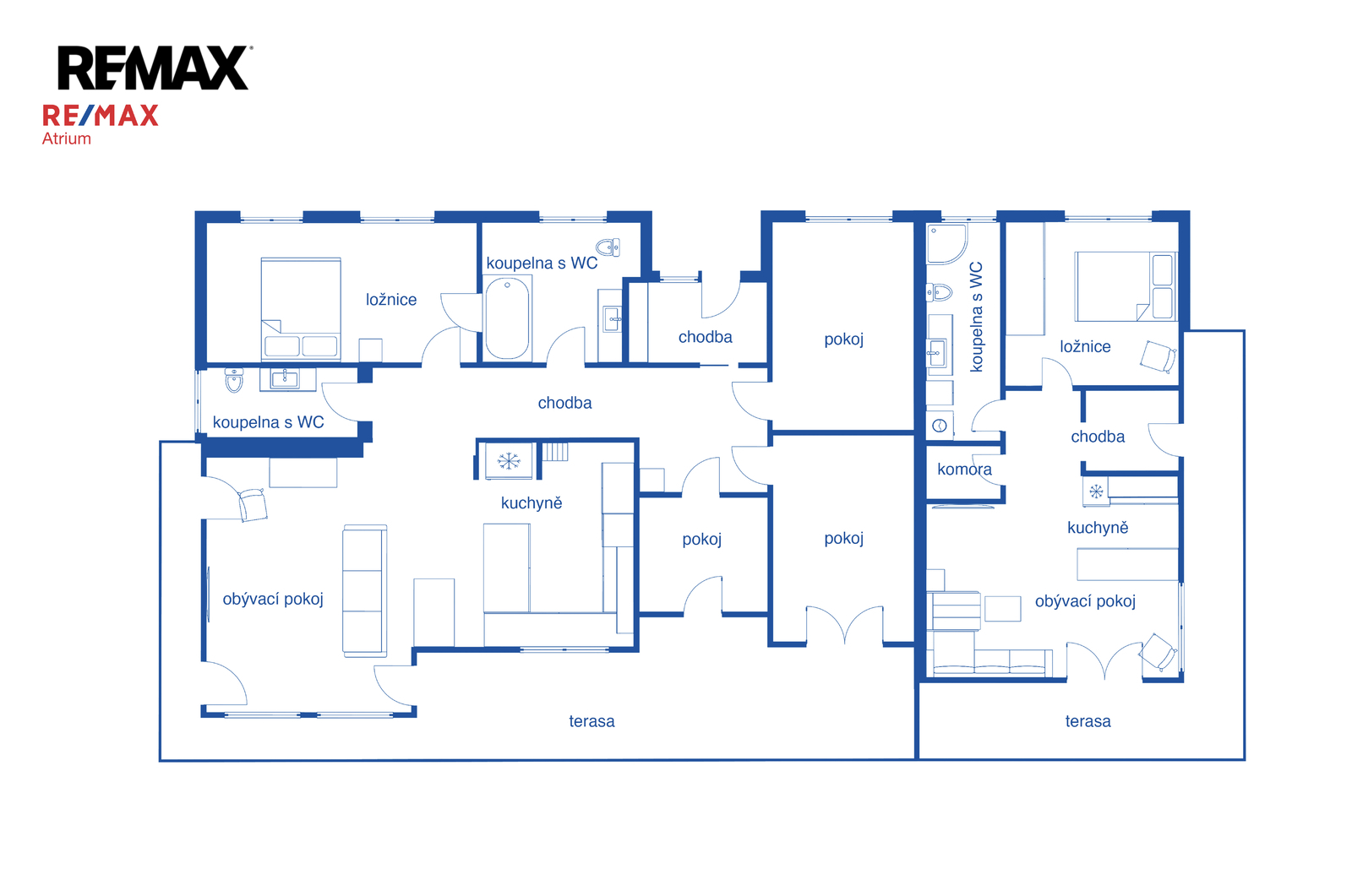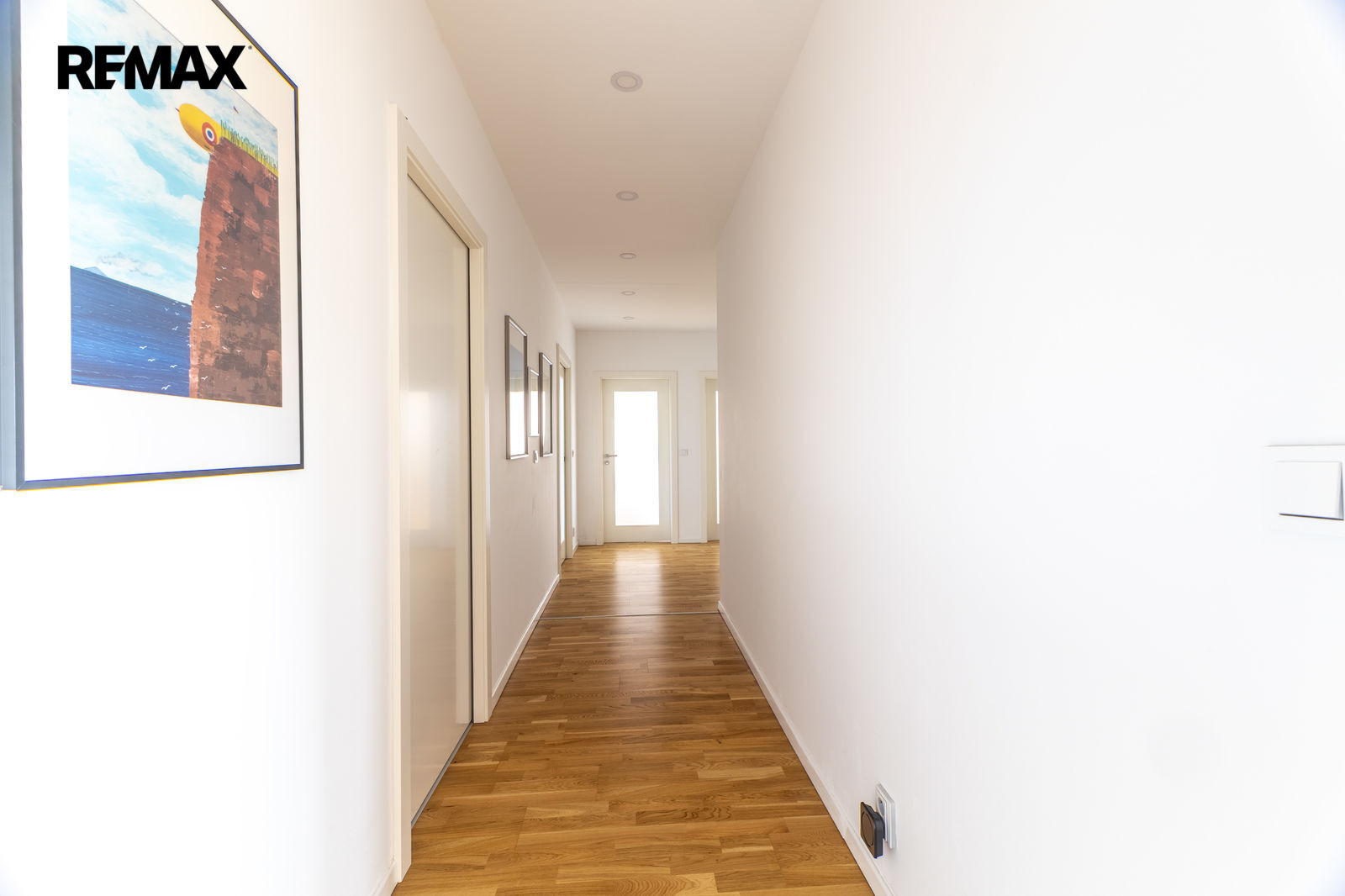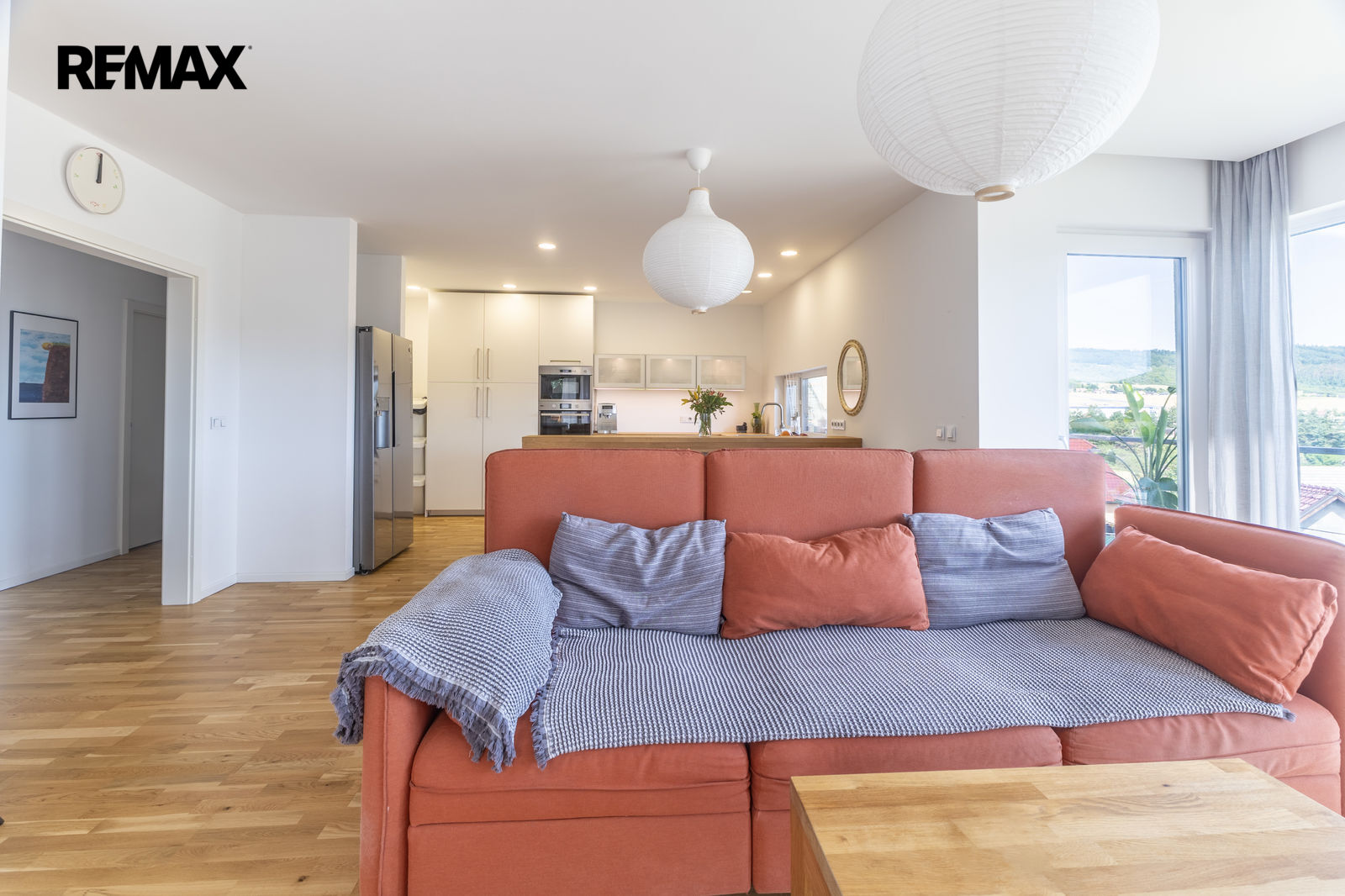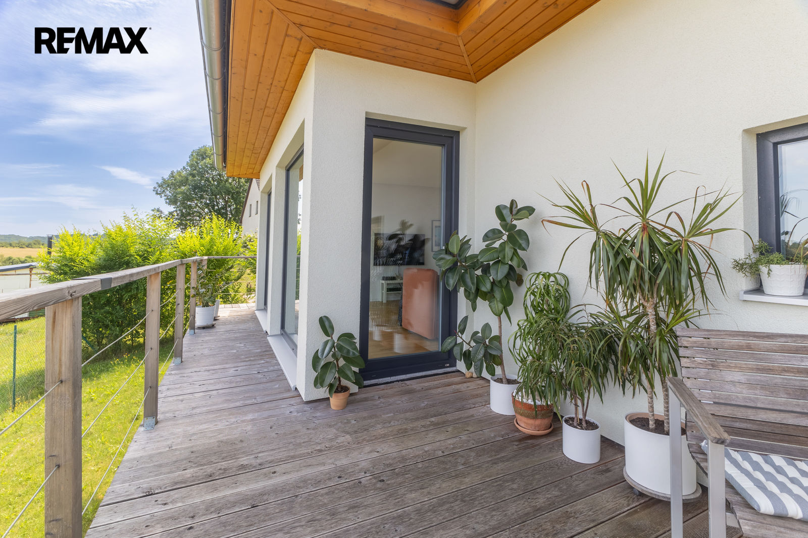 Tato kvalitní novostavba dřevěné konstrukce je rozložena do dvou bytových jednotek. První jednotka, v níž bydlí majitelé, má dispoziční uspořádání 4+kk se dvěma koupelnami, předsíní a technickou místností. Druhý byt s dispozicí 2+kk s jednou koupelnou a komorou majitelé pronajímají a činí tak celkový provoz domu profitabilním. Kolem celého domu je terasa (80 m²) z modřínového dřeva s výhledem do krajiny. Praktický sklep pod terasou nabízí mnoho úložného prostoru.