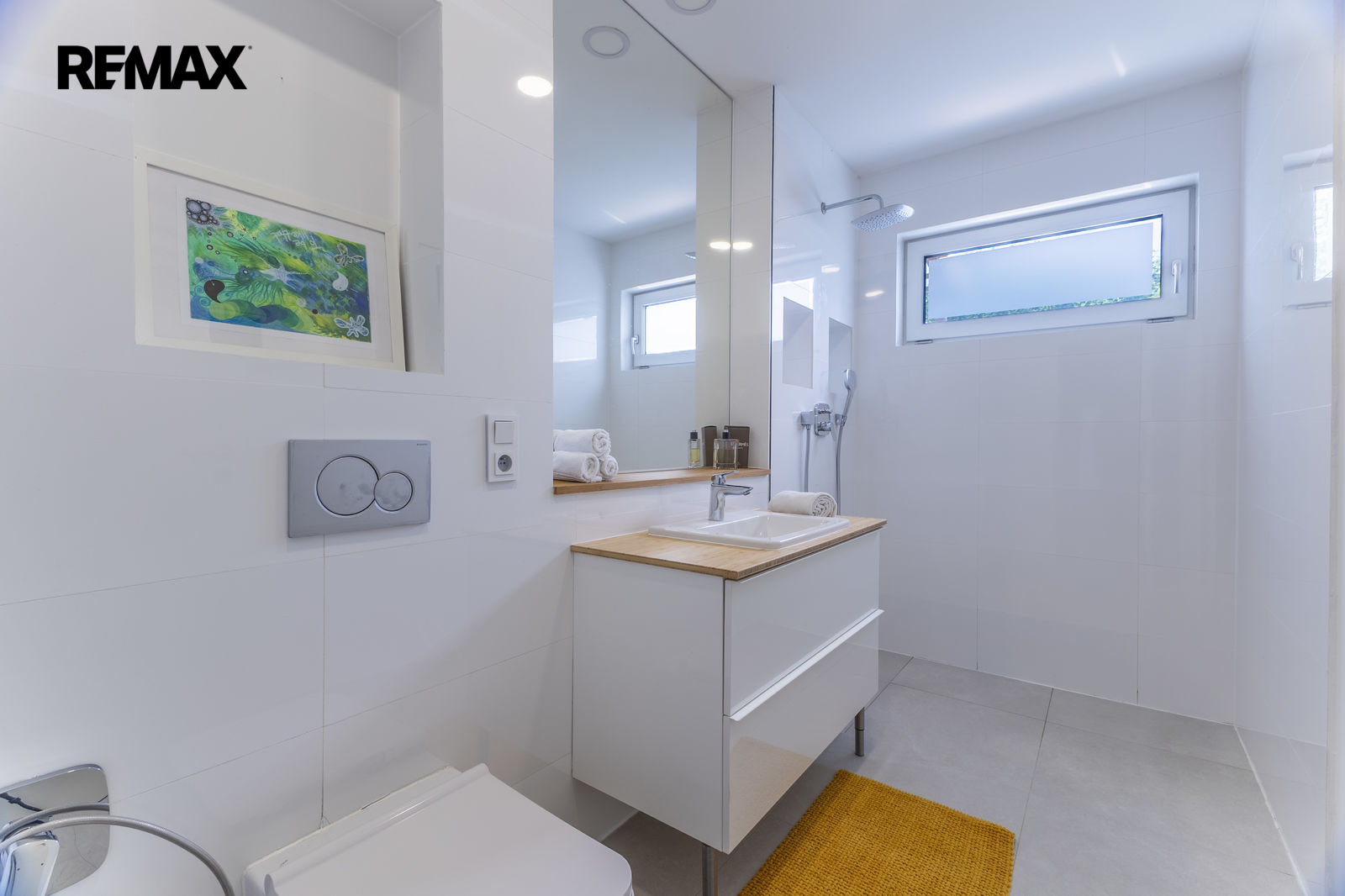 Představte si, jak se ráno probudíte do příjemného tepla sálajícího z dřevěné podlahy s vytápěním, které je poháněno ekologickým a tichým tepelným čerpadlem. Vaše nová dřevostavba je nejen úžasně pohodlná, ale také šetrná k životnímu prostředí. Nemovitost je napojena na místní vodovod a kanalizaci. Přípojka plynu je pouze pár metrů od pozemku. V domě je možnost připojení na internet, telefon i kabelovou televizi. Na zahradě je vybudována retenční nádrž pro sběr dešťové vody o objemu 7 m³.