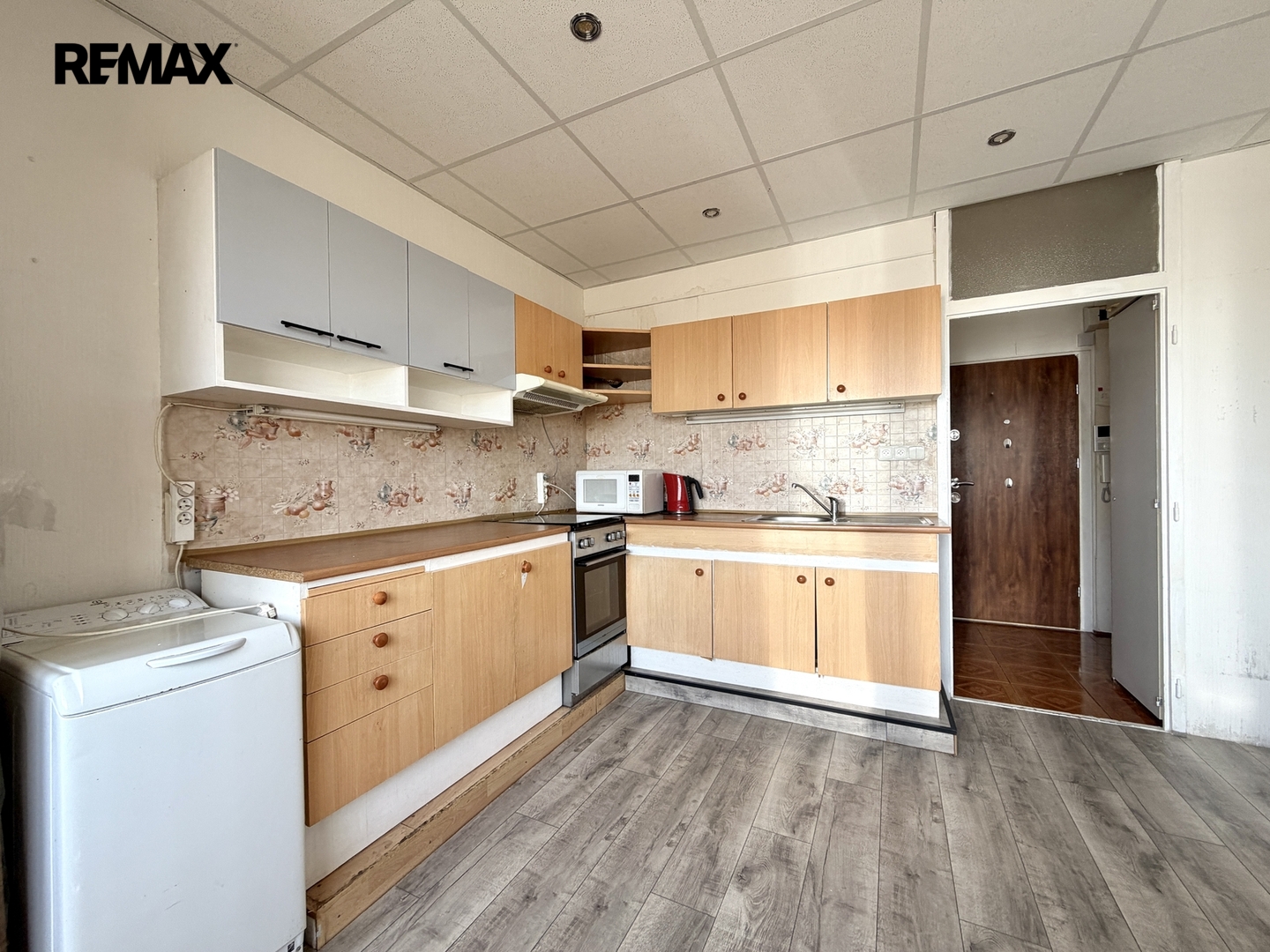 Byt je v původním, ale zachovalém stavu a nachází se v 5. patře z celkových 7 a je vhodný pouze pro pracující a pro lidi bez exekucí či insolvencí. Před podpisem podnájemní smlouvy je nutné složit 4x 8 500,- (1x nájem na 1. měsíc, 1x provize, 2x vratná kauce) celkem tedy 34 000,-.