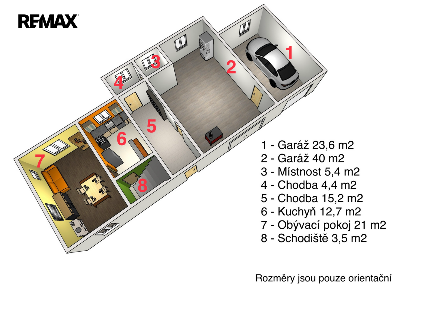 Celková zastavěná plocha činí 134 m² a užitná plocha dosahuje 200 m². K domu náleží pozemek o velikosti 722 m², na kterém kromě domu najdete i prostorné venkovní terasy, skvěle se hodící pro letní grilování a relaxaci. Dům je ve velmi dobrém stavu a nabízí příjemné a moderní vybavení. Na pozemku se také nachází samostatný objekt, který může sloužit buď jako zahradní domek, garáž či skladovací prostor, jak pro osobní, tak pro případné podnikatelské aktivity. Sklepní prostory o rozloze cca 35 m² či podkroví o rozměru cca 75 m² poskytují další úložné prostory nebo možnost přizpůsobení podle vlastních potřeb. Do objektu je zavedena voda z veřejného vodovodu a elektřina o napětí 230 a 380 V. Vytápění je zajištěno kotlem na tuhá paliva, přičemž radiátory se postarají o příjemnou teplotu v zimních měsících. Pro ohřev vody je k dispozici elektro bojler. Odpady jsou odvedeny do septiku.