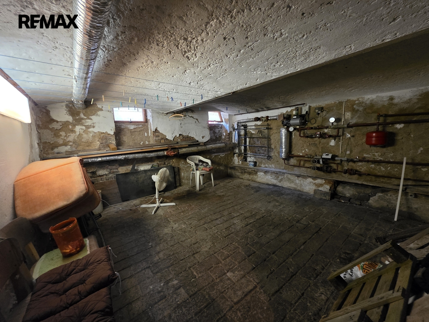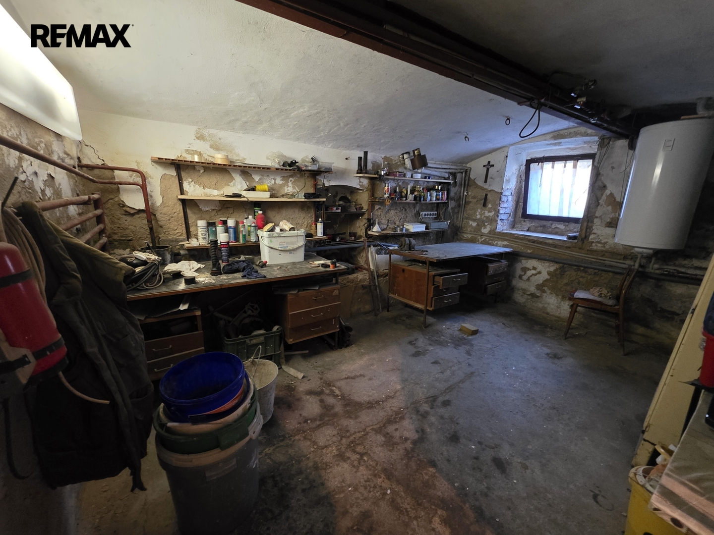 Suterén: sklep rozdělený na tři části – dílna a dva skladovací prostory