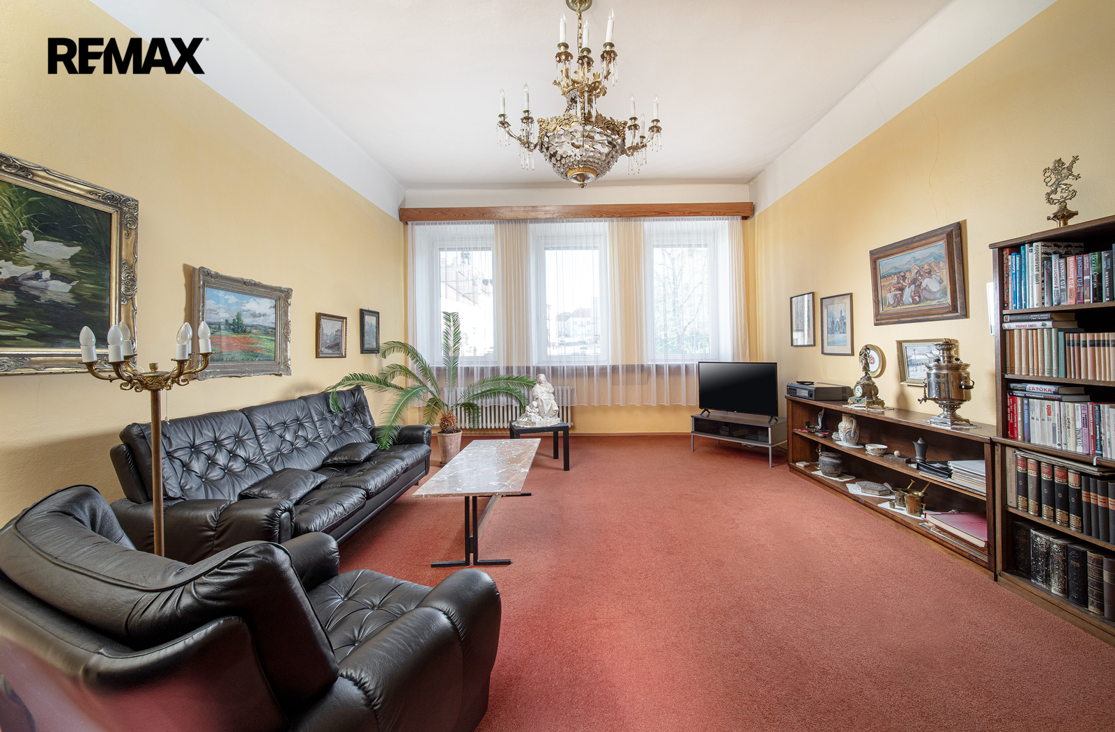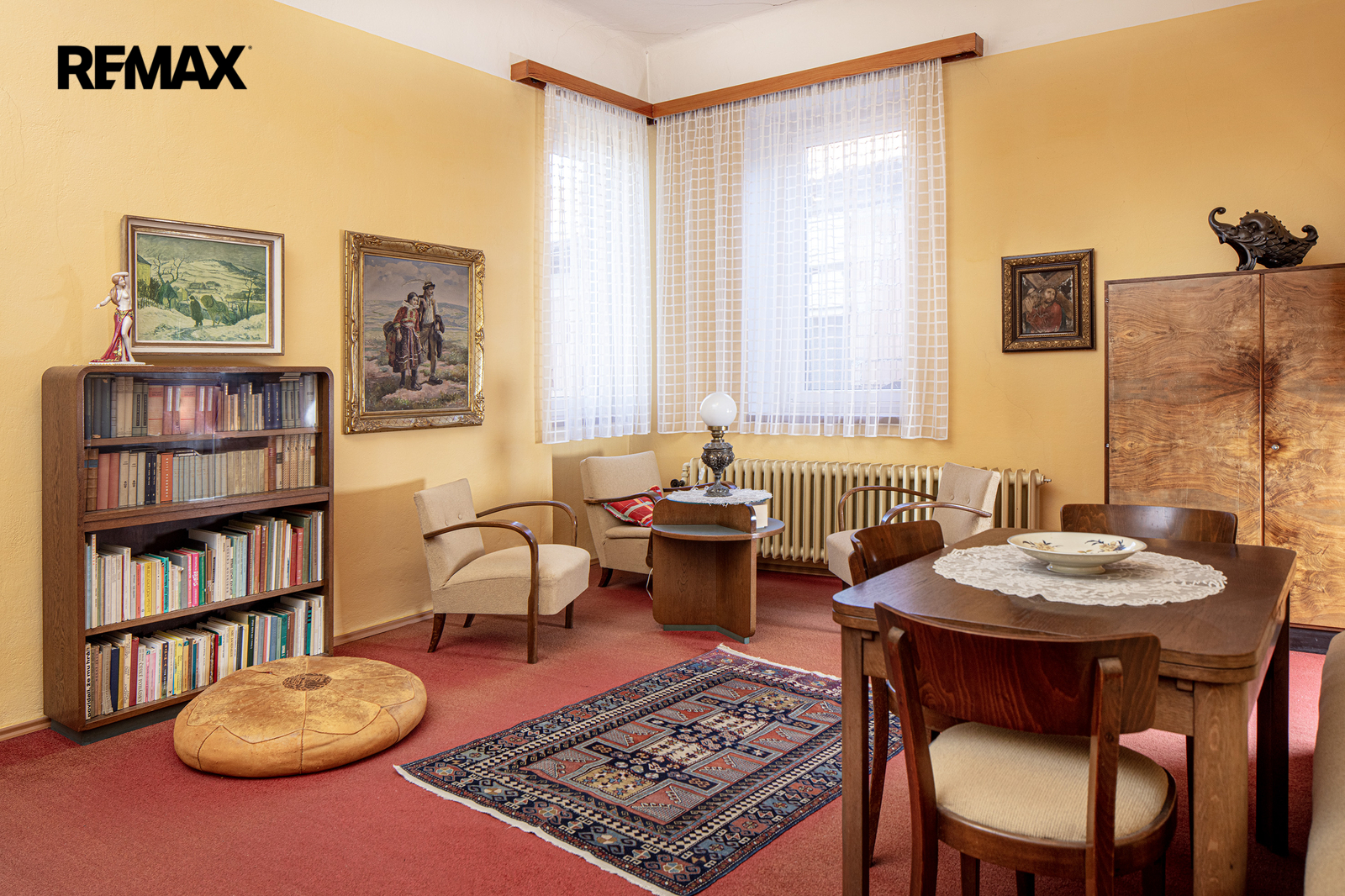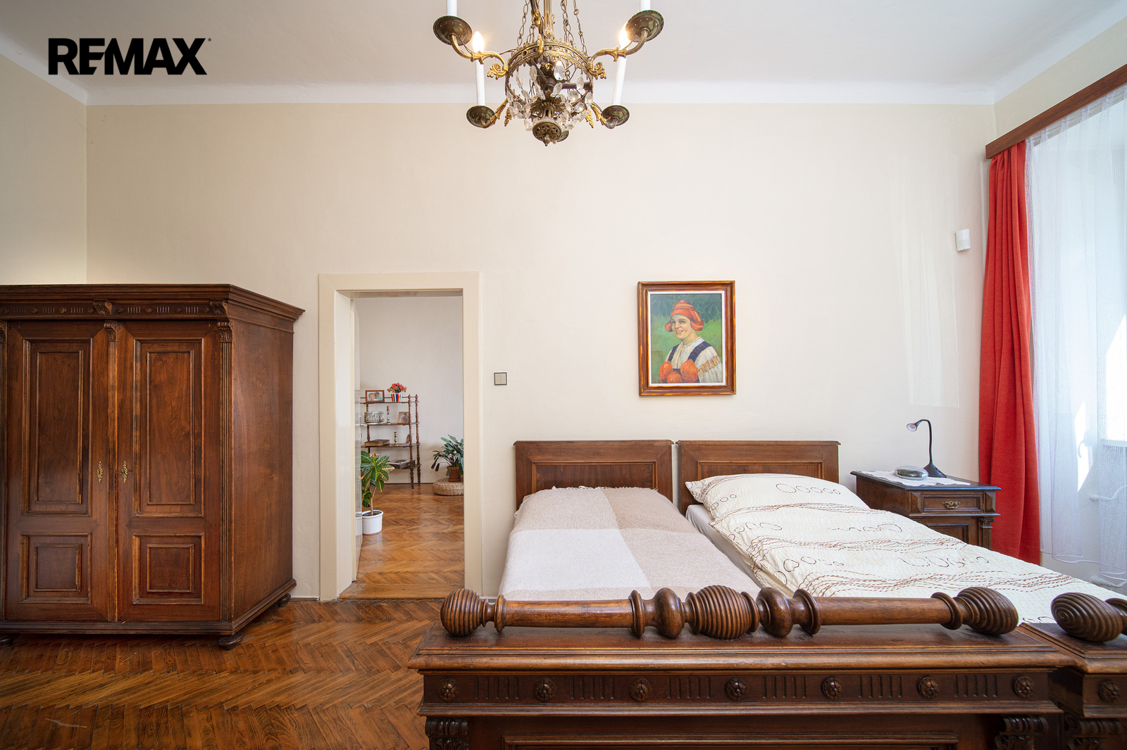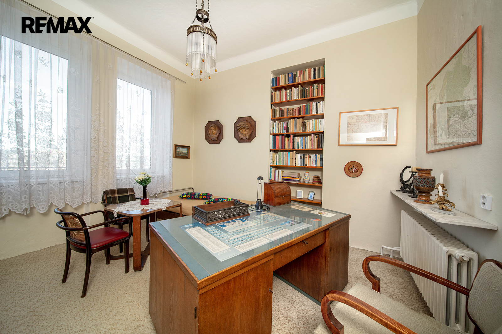 V domě je 9 obytných místností a dále kuchyň (s myčkou, sporákem i lednicí), koupelna s WC, zcela volné a prostorné podkroví (přes 100 m2), poměrně velký sklep s dílnou (40 m2) a samostatná garáž (22 m2). Obytné místnosti s okny do náměstí se rozprostírají ve dvou podlažích a jsou vnitřně propojeny pěkným dřevěným schodištěm.