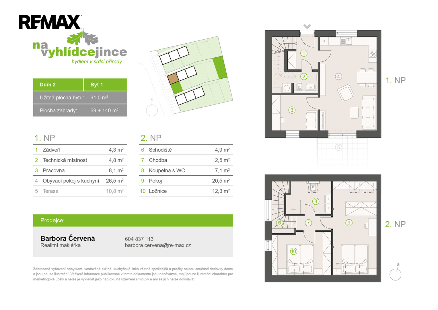 Budoucí byt označený jako B1 v novostavbě rodinného domu disponuje 2 NP a celkovou užitnou plochu 91 m2. Velkou výhodou je přímý vstup na předzahrádku o celkové ploše 69m2 s terasu (10,8 m2), která je vybavena bioklimatickou hliníkovou pergolou, k bytu bude k dispozici také příjemná zahrada o celkové výměře cca 140 m2 s nepřekonatelným výhledem na Plešivec a okolní kopce.