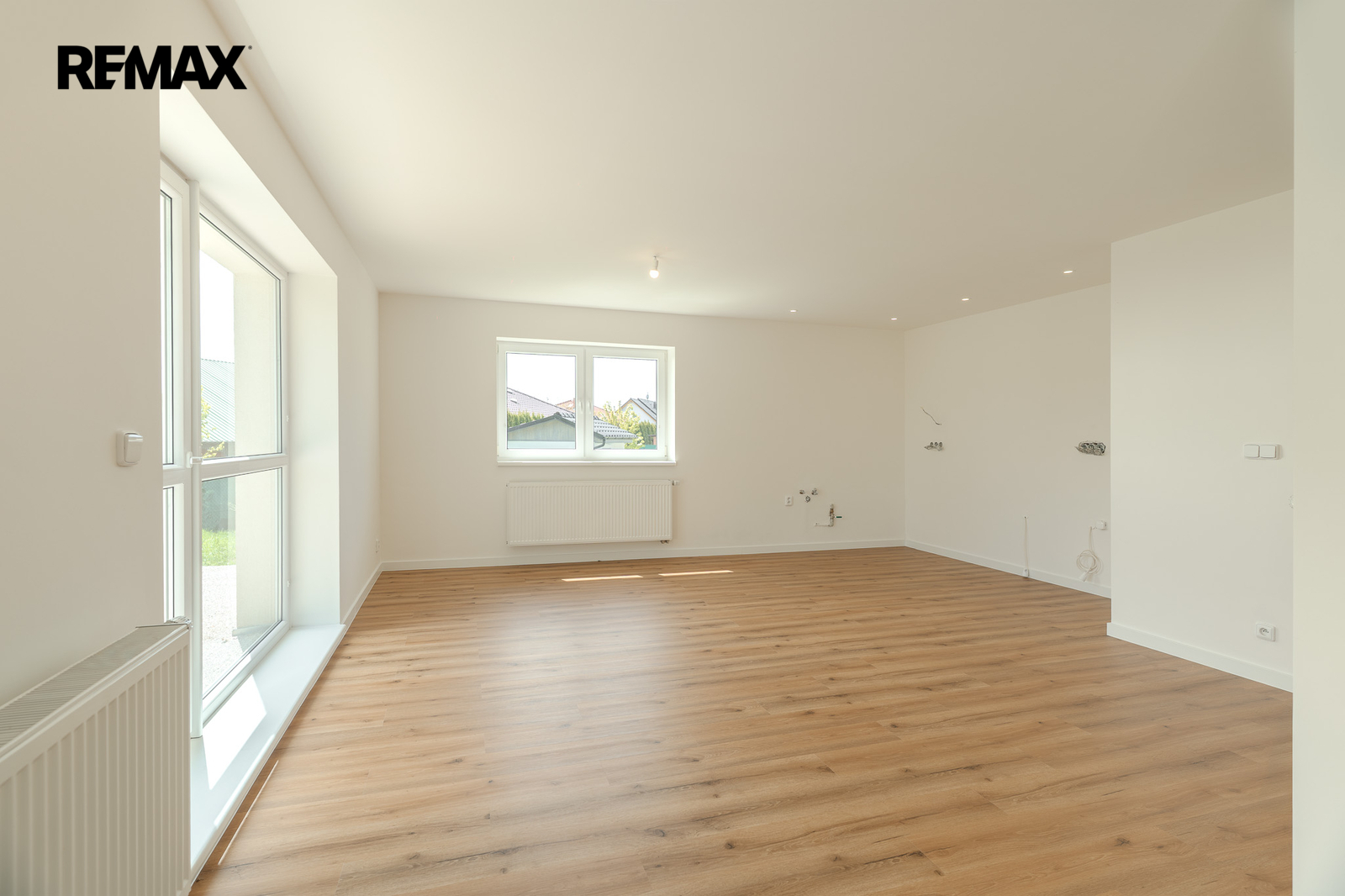 Srdcem domu je velkorysý obývací prostor s kuchyňským koutem o ploše 50 m². Je vzdušný, světlý a přirozeně propojený se zahradou. Tady se bude určitě odehrávat váš každodenní život. Od ranní kávy, přes rodinné obědy až po večery s přáteli.