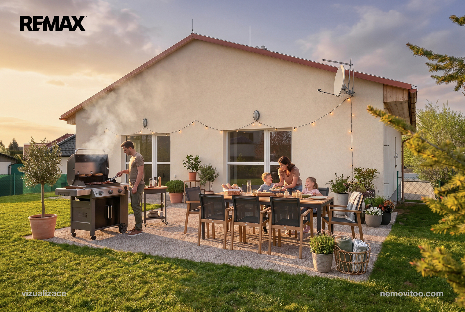 Dům stojí na pozemku o velikosti 814 m² a nabízí tím dostatek prostoru pro relaxaci i aktivní odpočinek. Praktickým bonusem je nádrž na shromažďování splaškové vody.