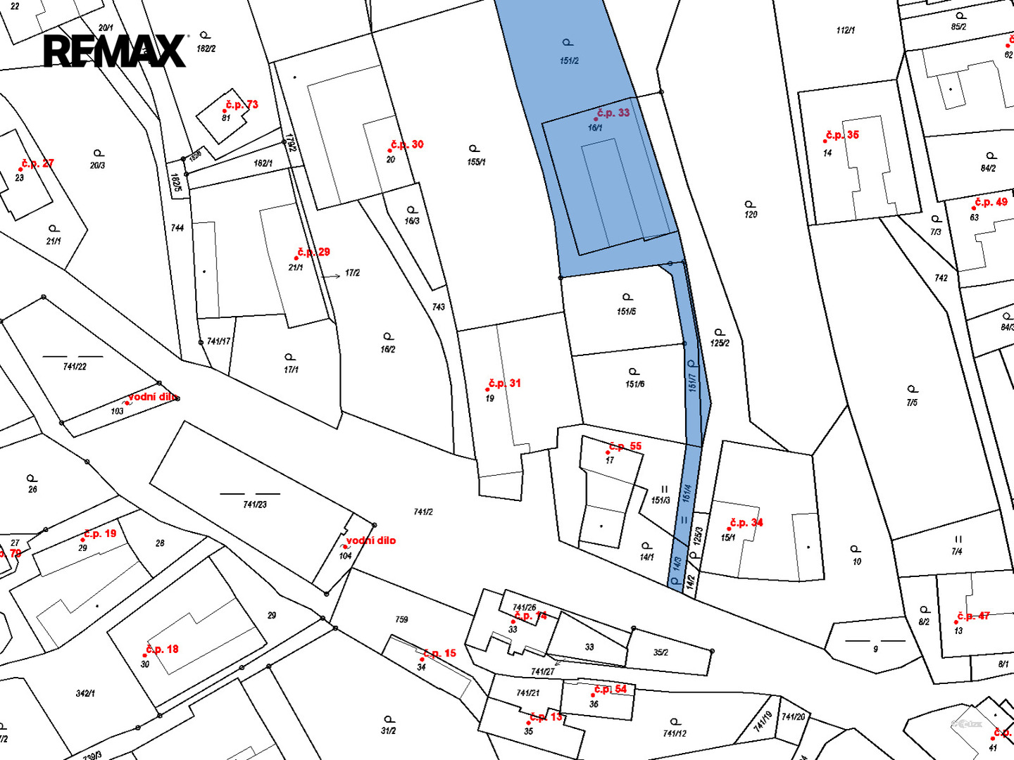 Součástí prodeje je dále ideální spoluvlastnický podíl o velikosti 1/3 na přístupové komunikaci (parcely č. 14/3, 151/4 a 151/7), která zajišťuje přístup k nemovitosti.