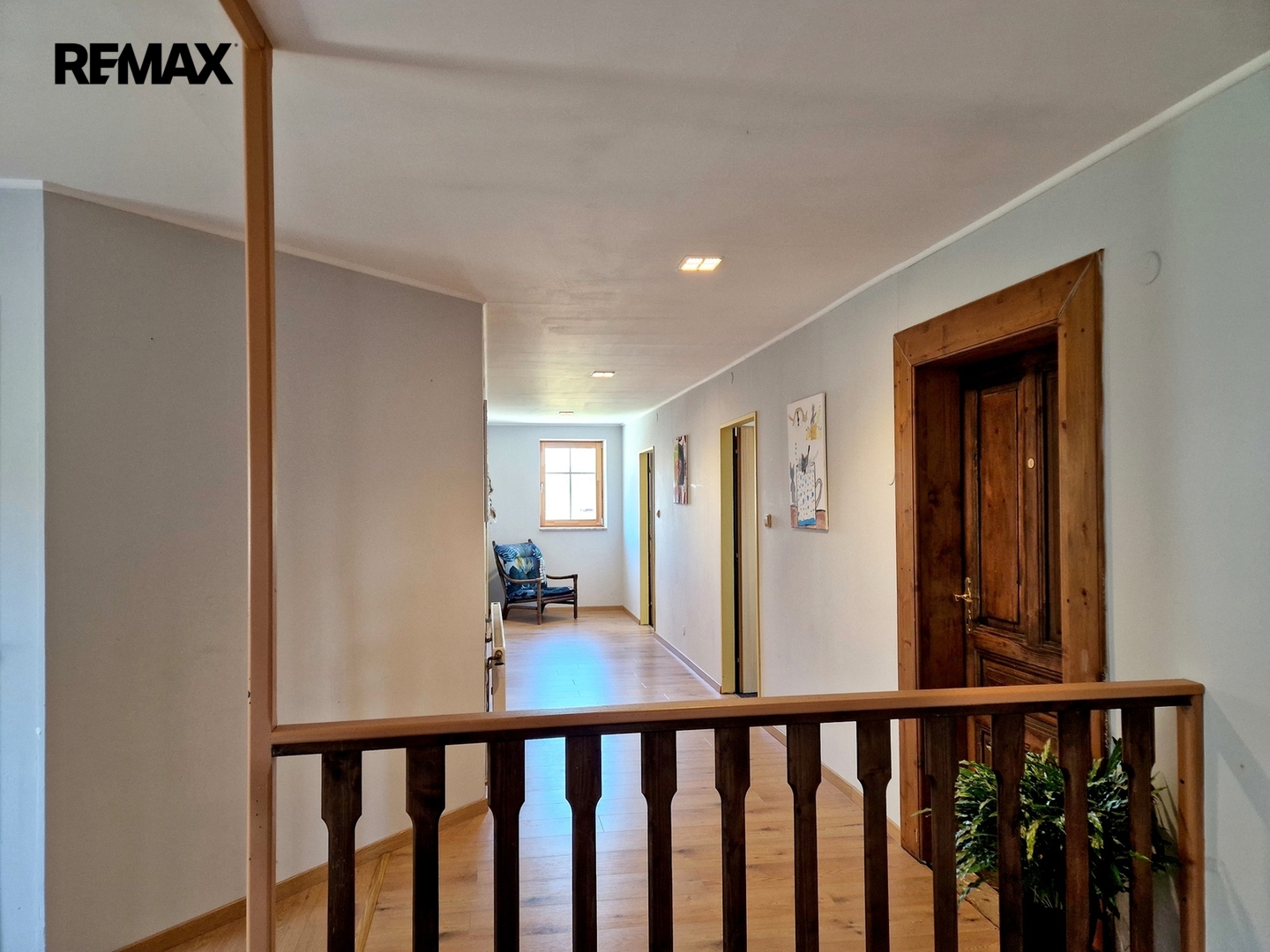 Horní patro nabízí velkorysý otevřený prostor, který v současnosti slouží jako společenská místnost, s přípravou na vybudování další kuchyně. Dále zde najdeme 6 ložnic, 2 koupelny s WC a sklad, což poskytuje dostatek kapacity pro větší rodinu nebo skupinové ubytování.