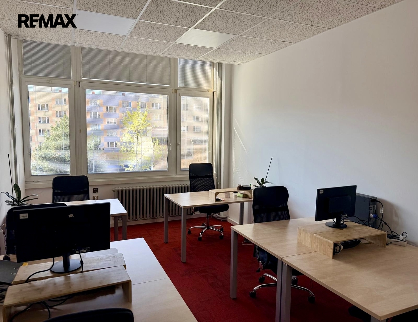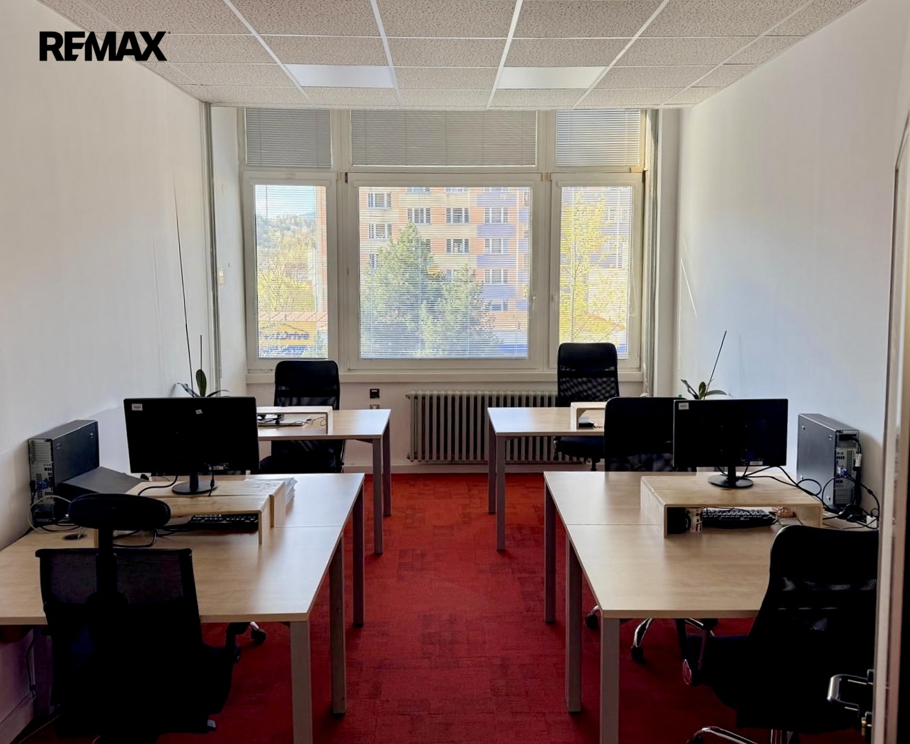 Vnitřní dispozice je velmi prakticky řešena a skládá se ze vstupní haly o výměře 9,51 m2 a čtyř samostatných neprůchozích místností. Hlavní kanceláře mají rozměry 20,97 m2 a 28,37 m2, doplňuje je menší pracovna o ploše 9,81 m2 a samostatný prostor s kuchyňskou linkou o rozloze 16,66 m2, který slouží jako ideální zázemí pro zaměstnance.