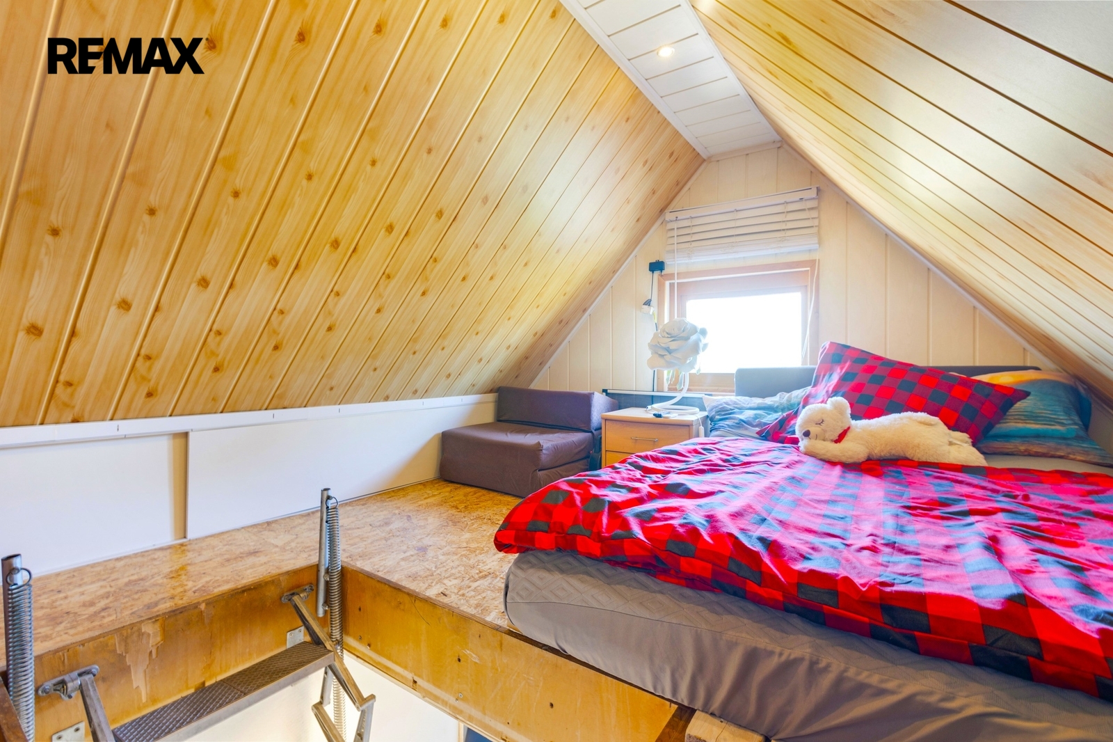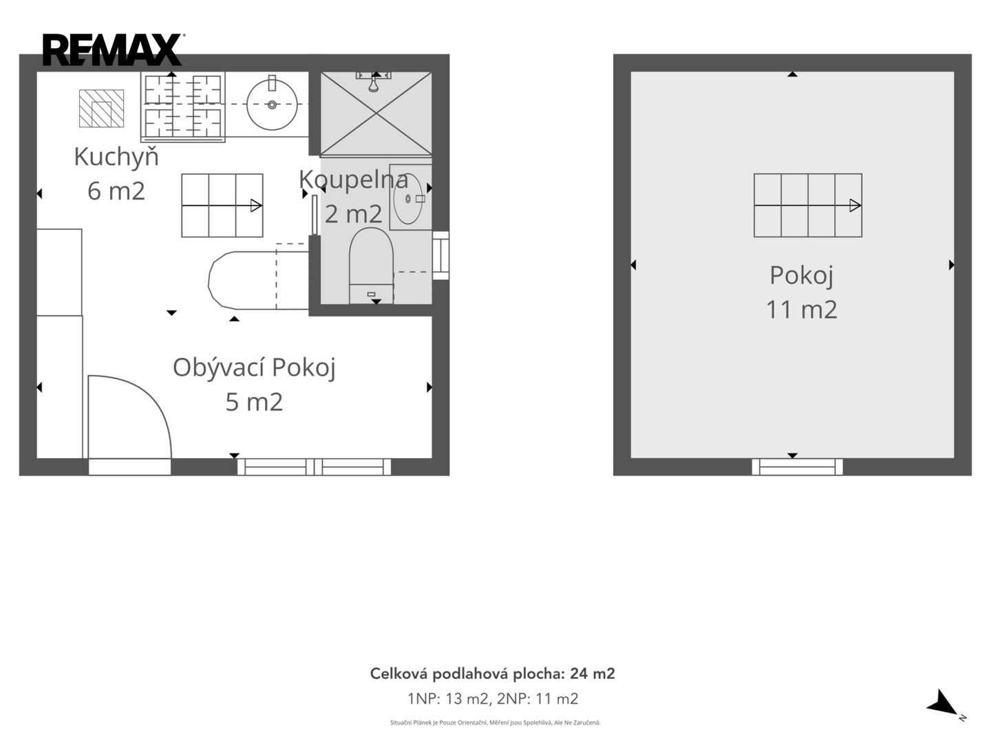 Dispozice je řešena do dvou podlaží. V přízemí najdete obývací pokoj s kuchyňským koutem a koupelnu se sprchovým koutem a WC. V obývacím pokoji jsou umístěny skládací stropní schody, které vedou do podkroví, kde se nachází ložnice.