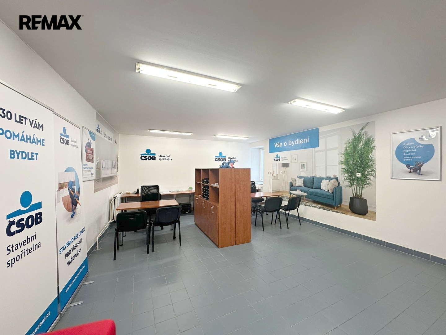 Nabízíme Vám k pronájmu kancelář / obchodní prostor velikosti 42,7 m2 s vlastním zázemím v podobě toalety a úklidové místnosti o výměře 4,2 m2.
